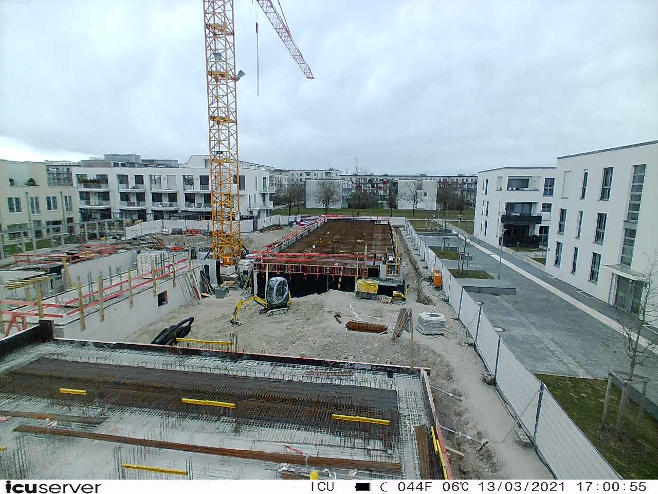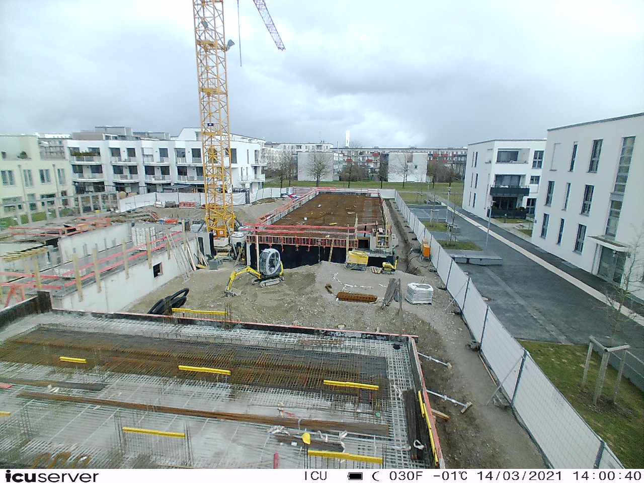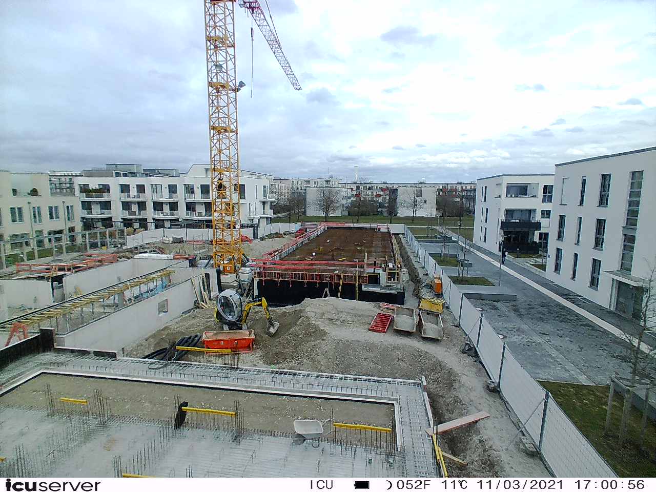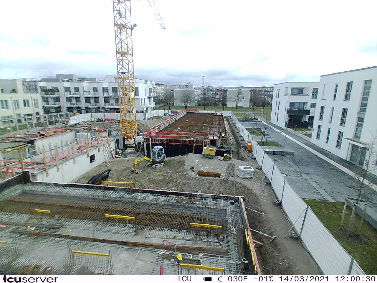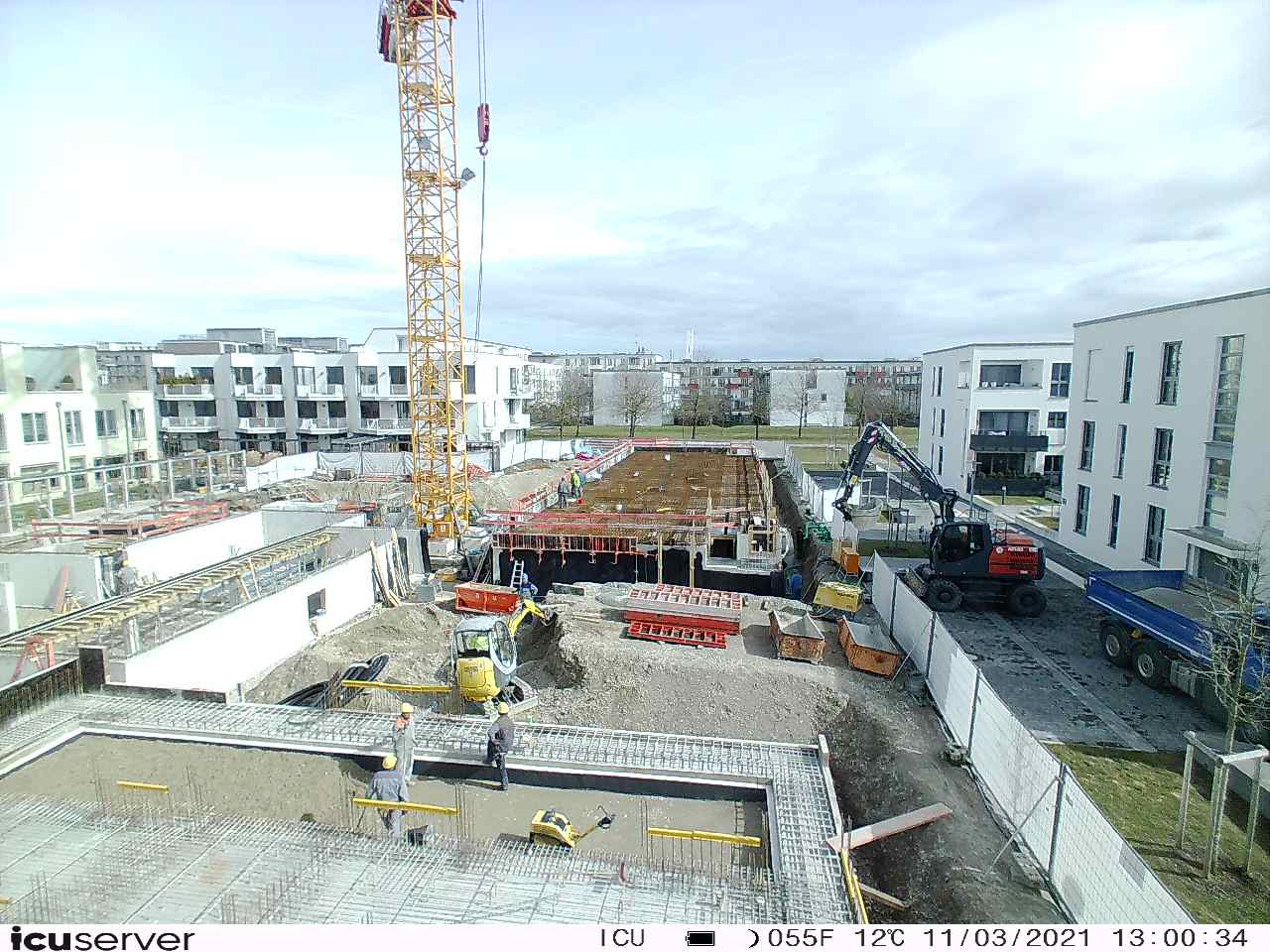 Die Kamera steht am westlichen Ende der Baustelle. Sie blickt nach Osten. Bilder: 26. Februar - 13. August 2021.