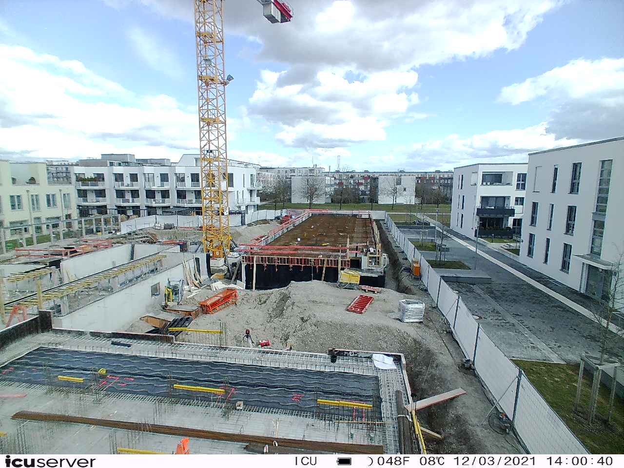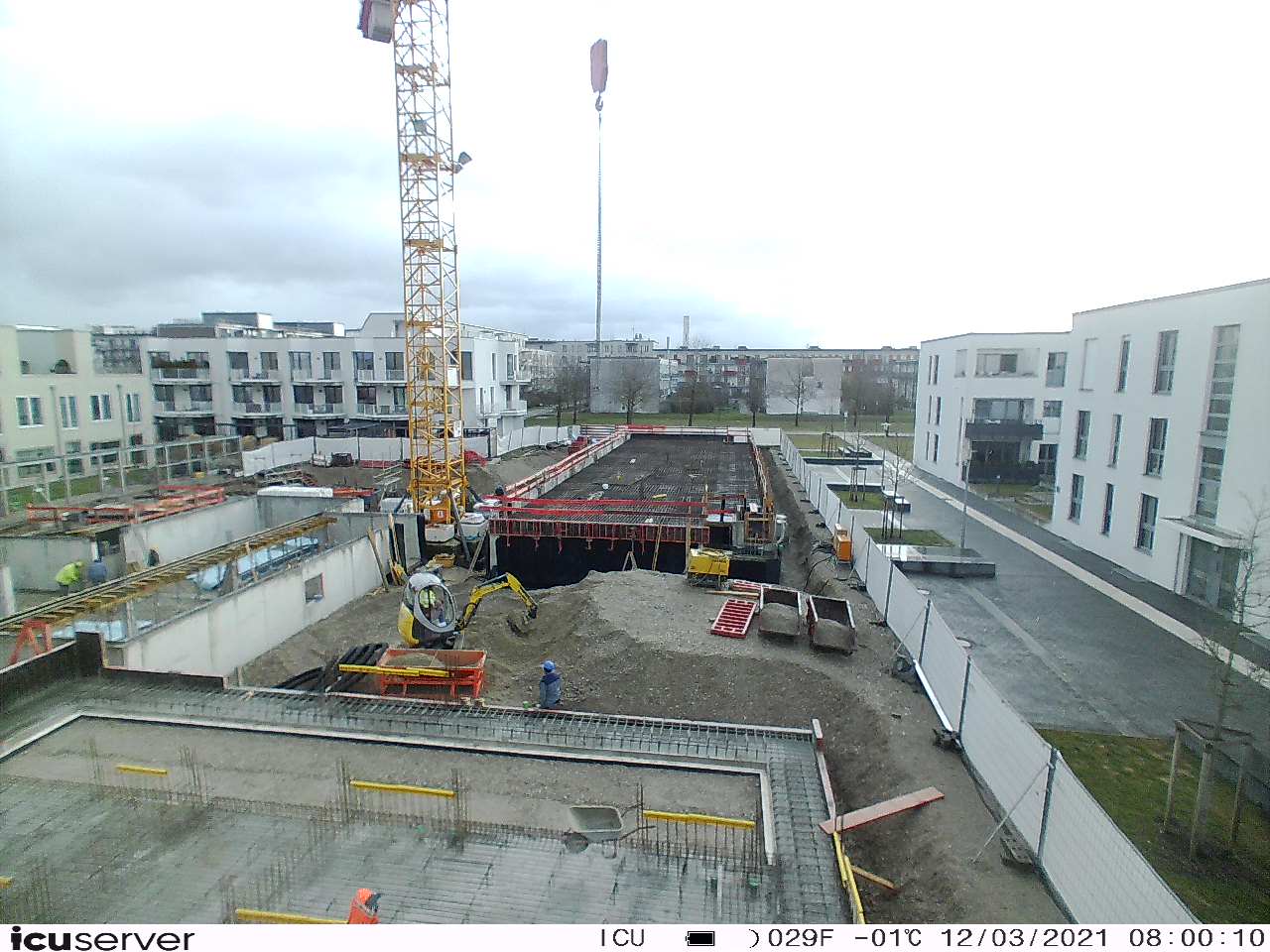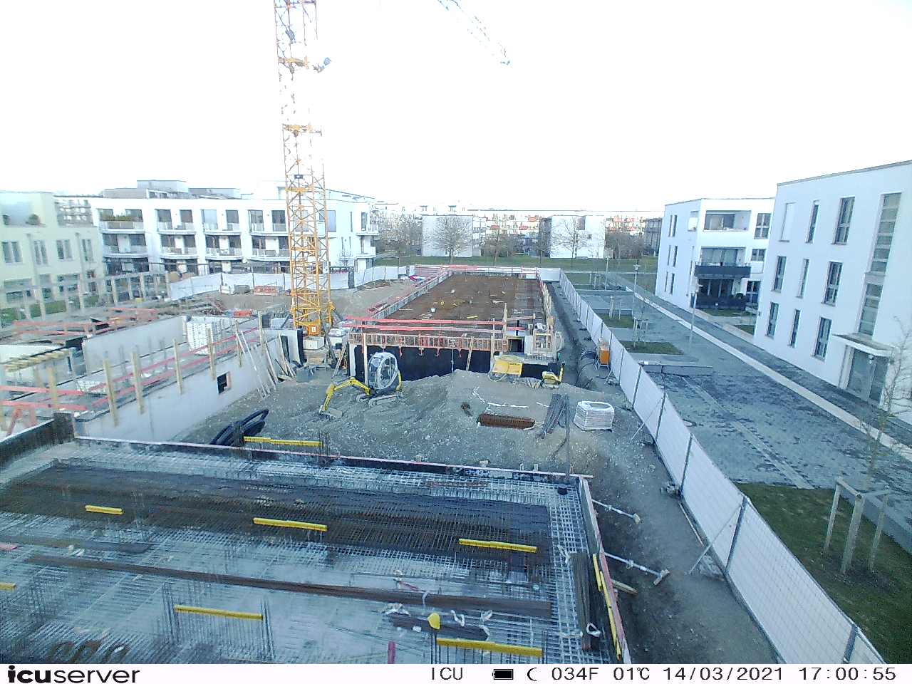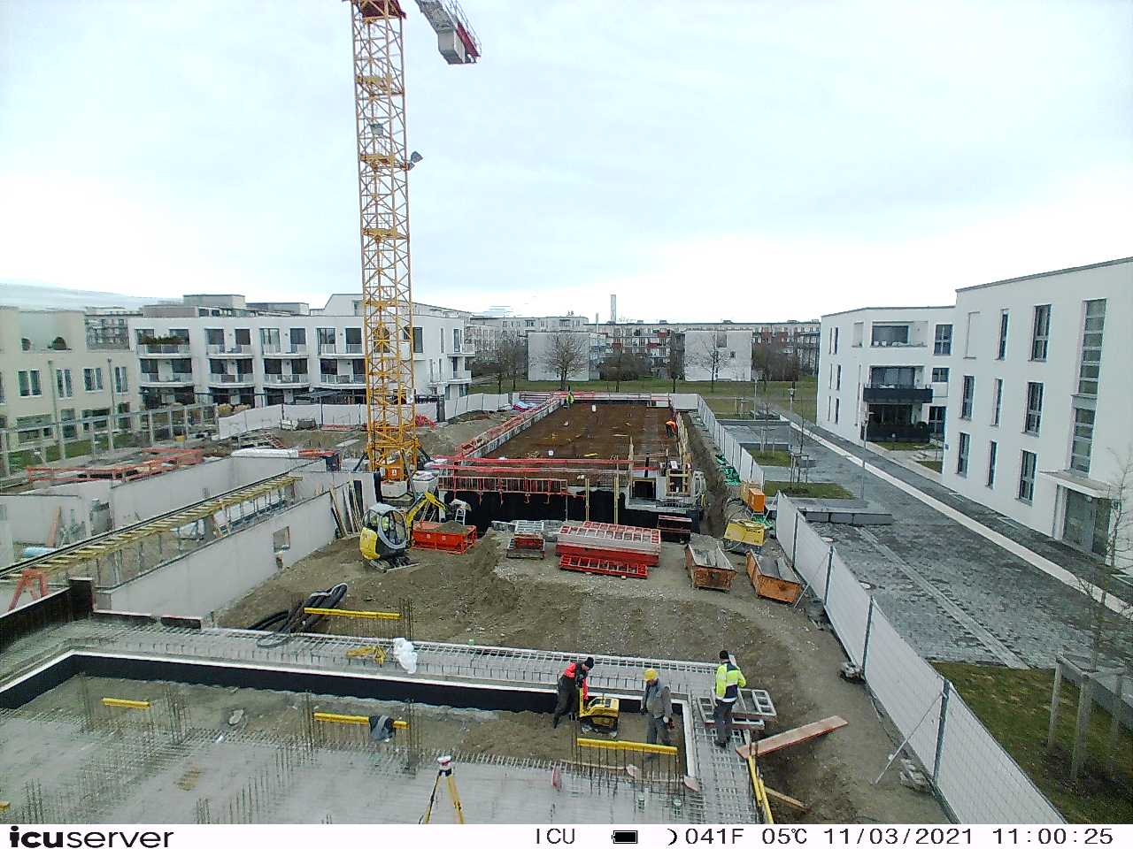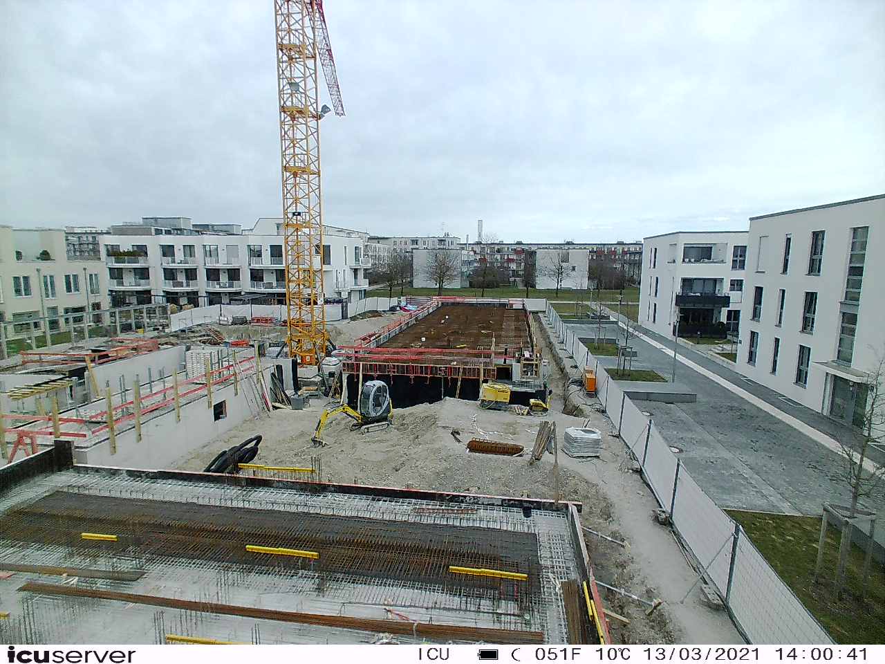 Die Kamera steht am westlichen Ende der Baustelle. Sie blickt nach Osten. Bilder: 26. Februar - 13. August 2021.