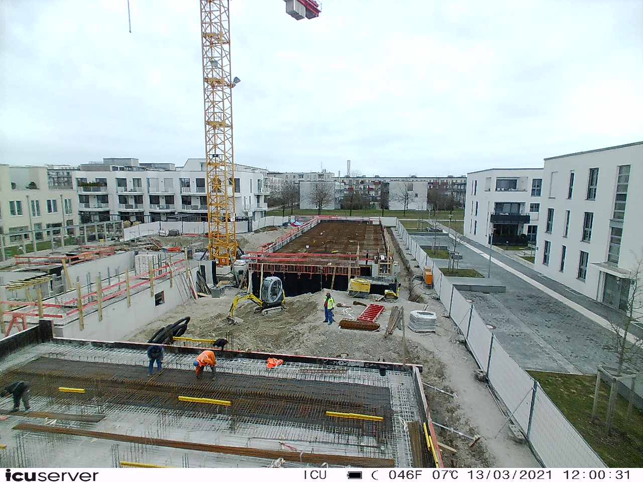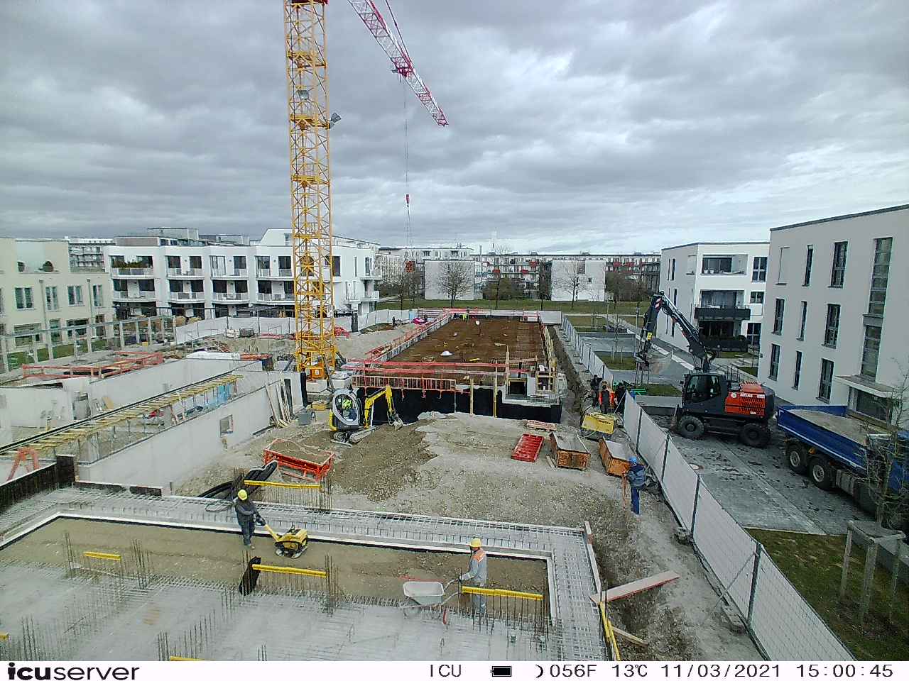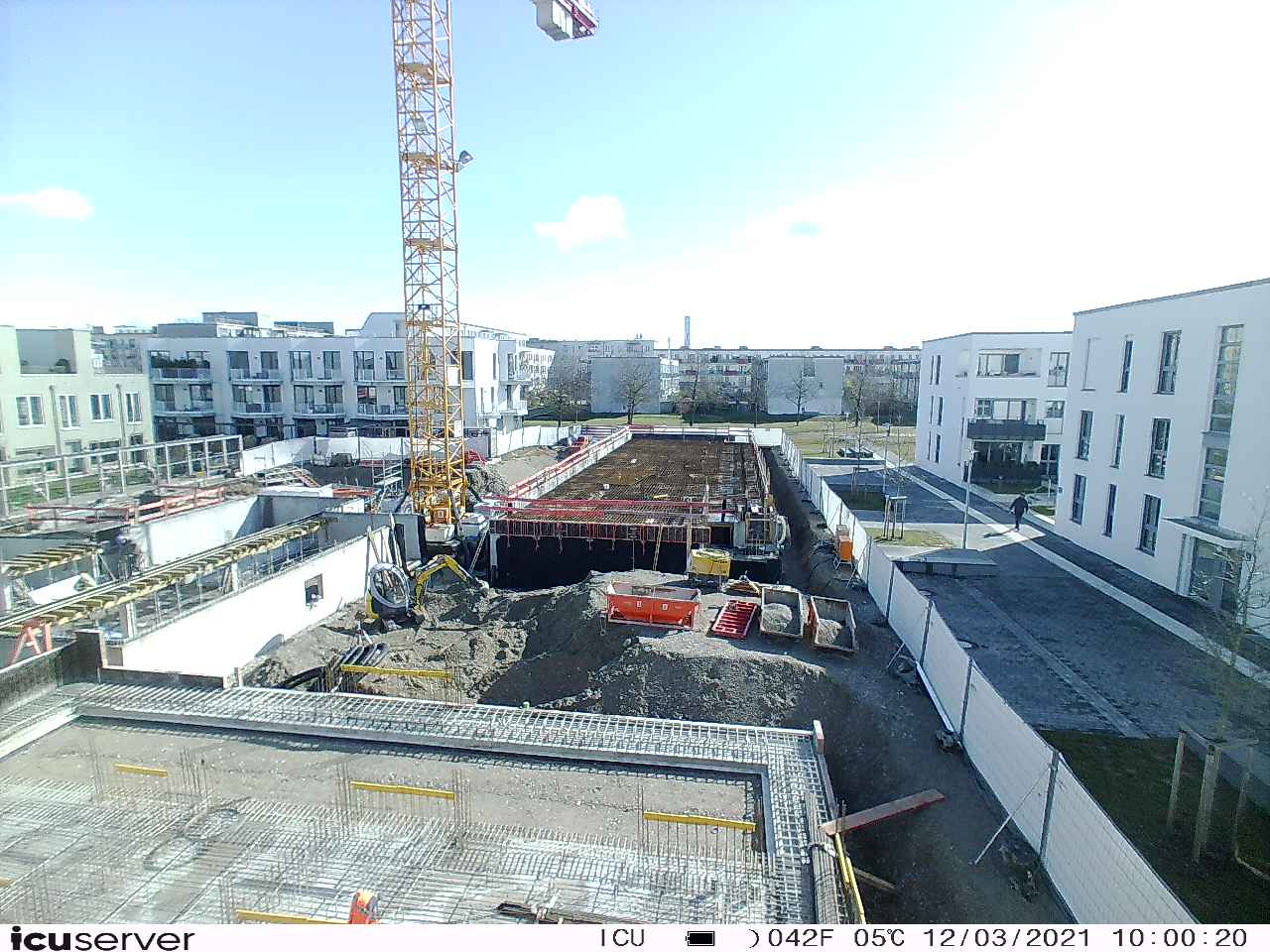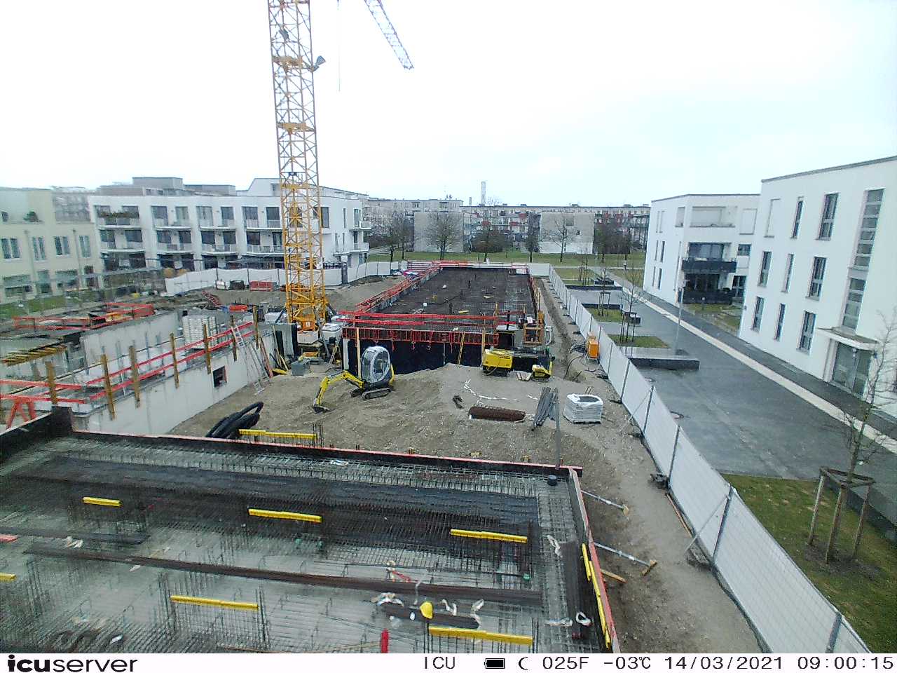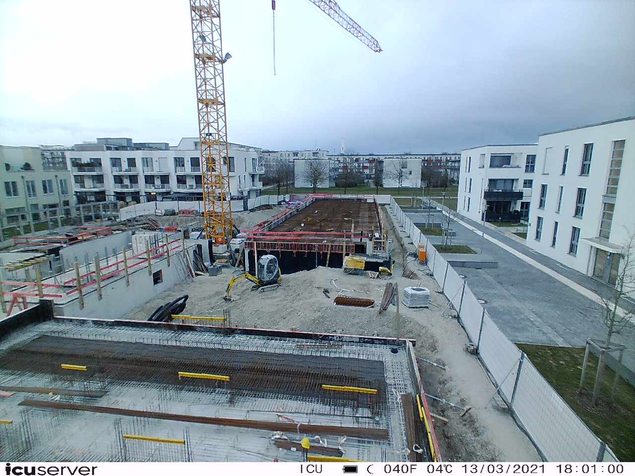 Die Kamera steht am westlichen Ende der Baustelle. Sie blickt nach Osten. Bilder: 26. Februar - 13. August 2021.