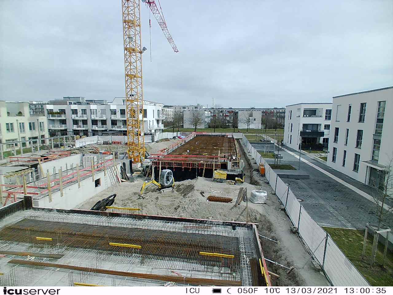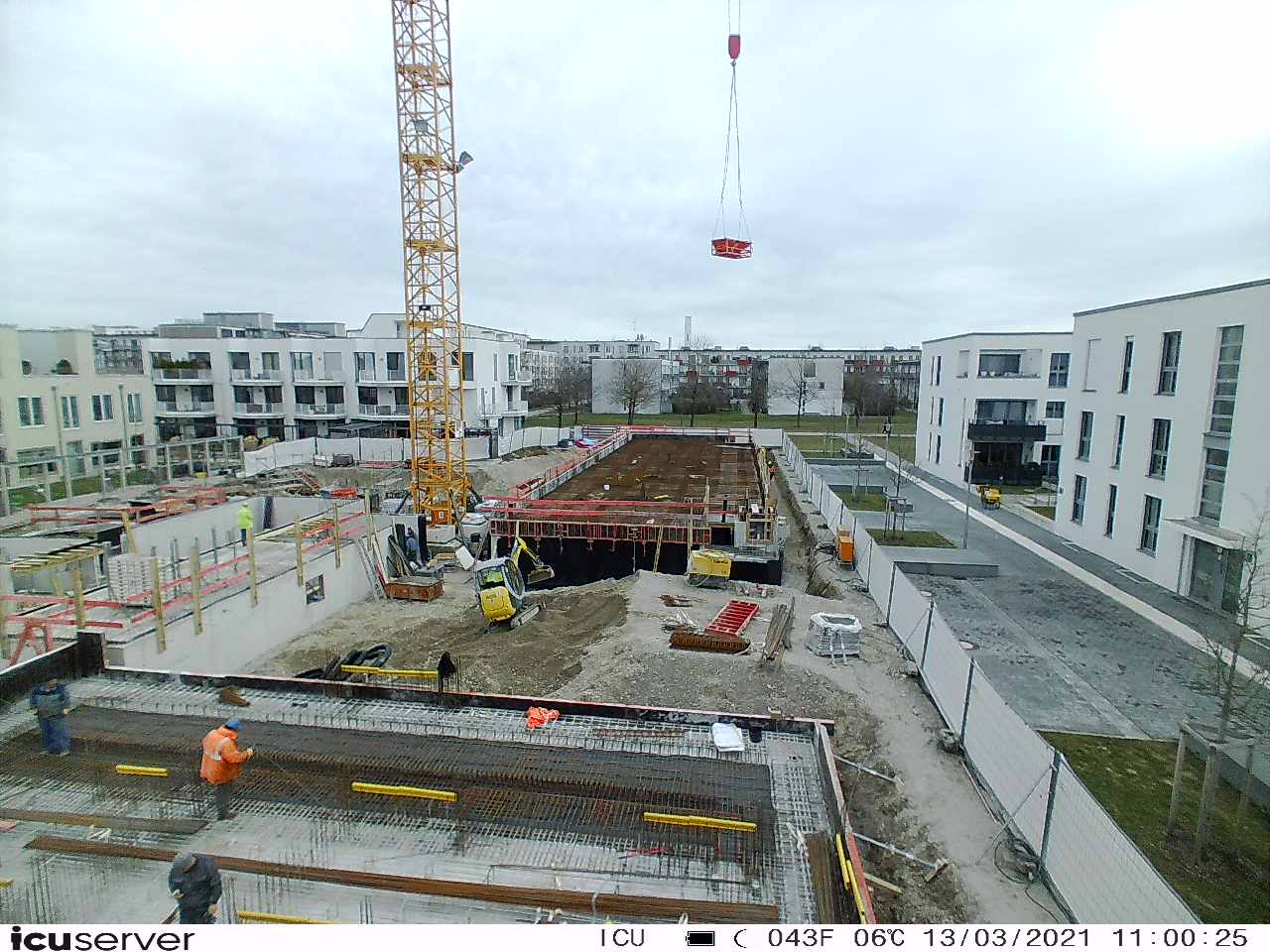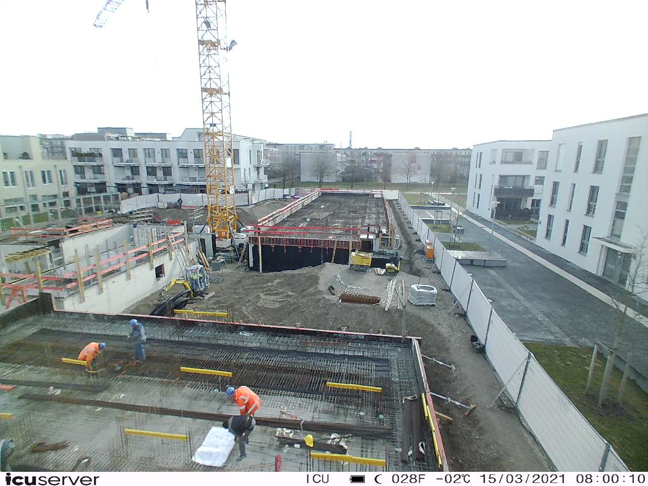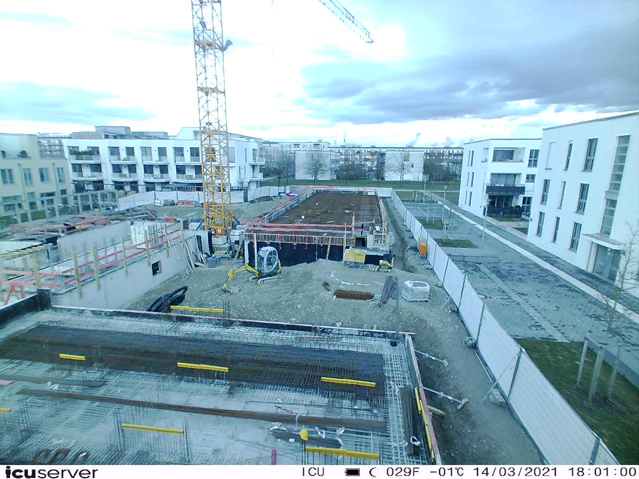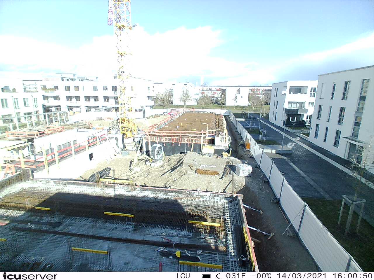 Die Kamera steht am westlichen Ende der Baustelle. Sie blickt nach Osten. Bilder: 26. Februar - 13. August 2021.