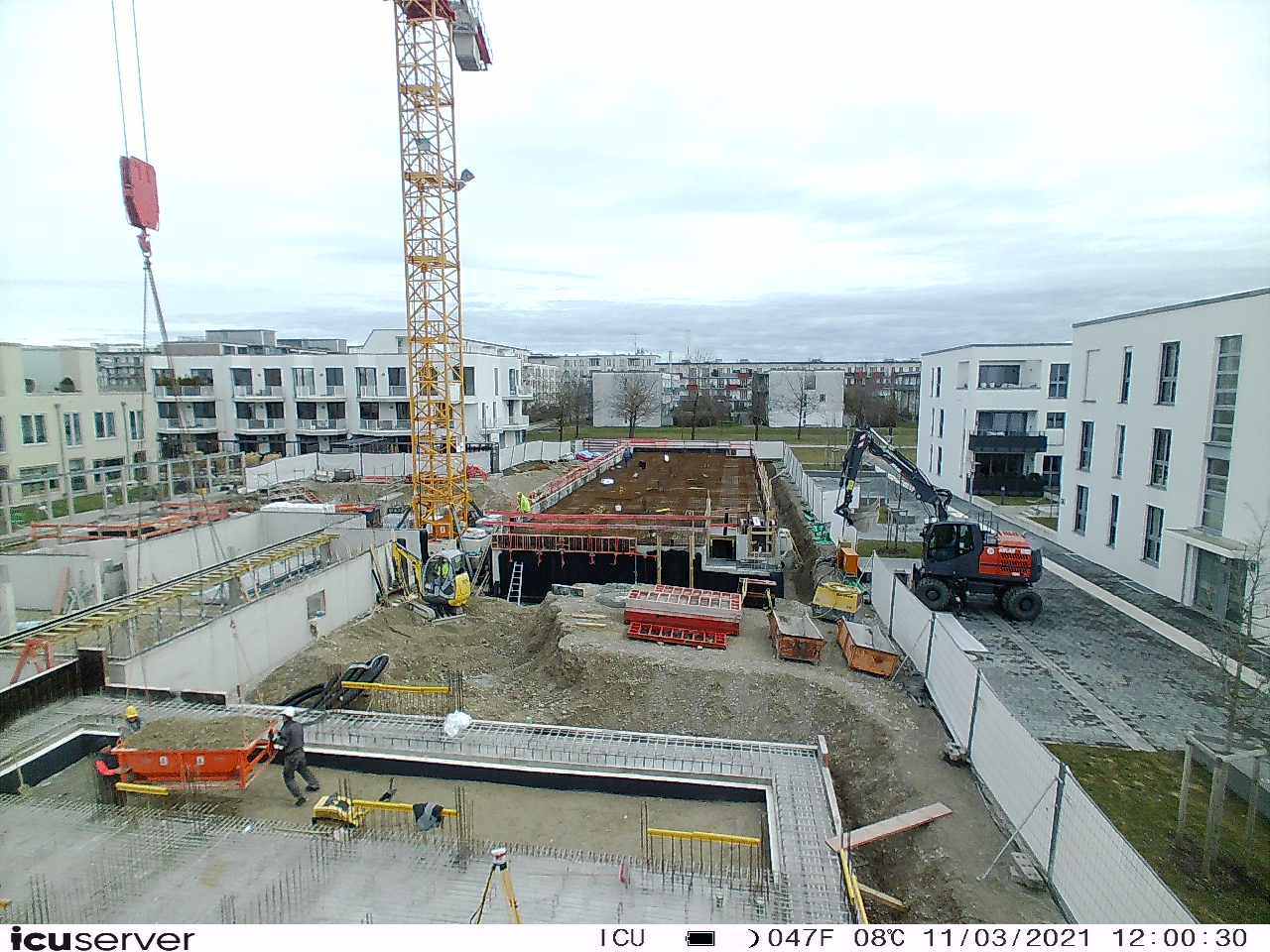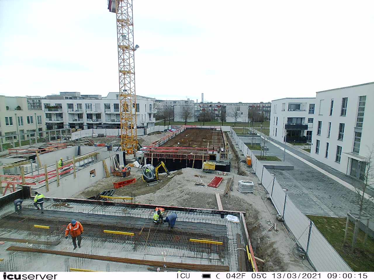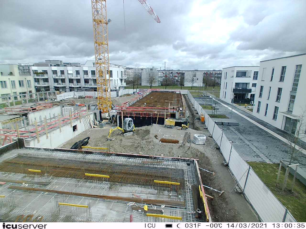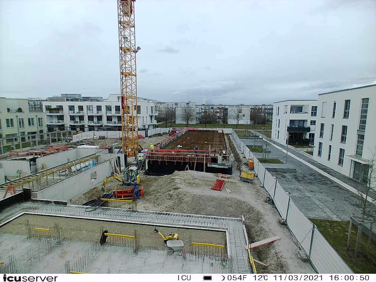 Die Kamera steht am westlichen Ende der Baustelle. Sie blickt nach Osten. Bilder: 26. Februar - 13. August 2021.