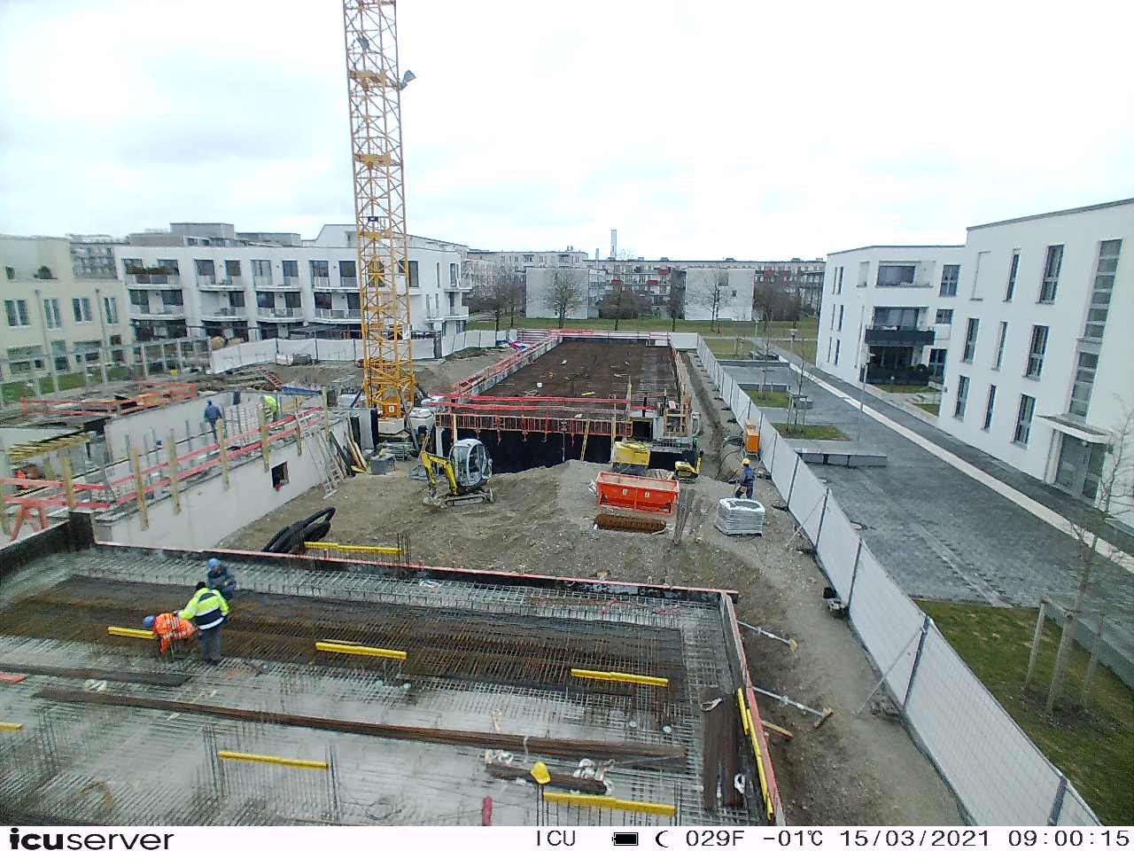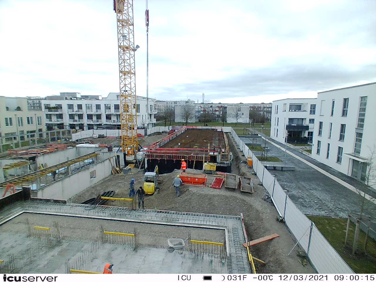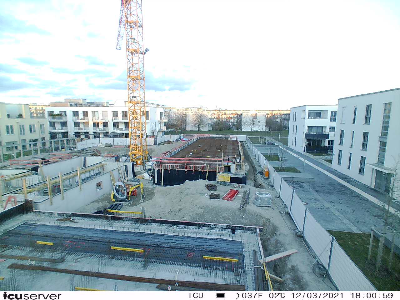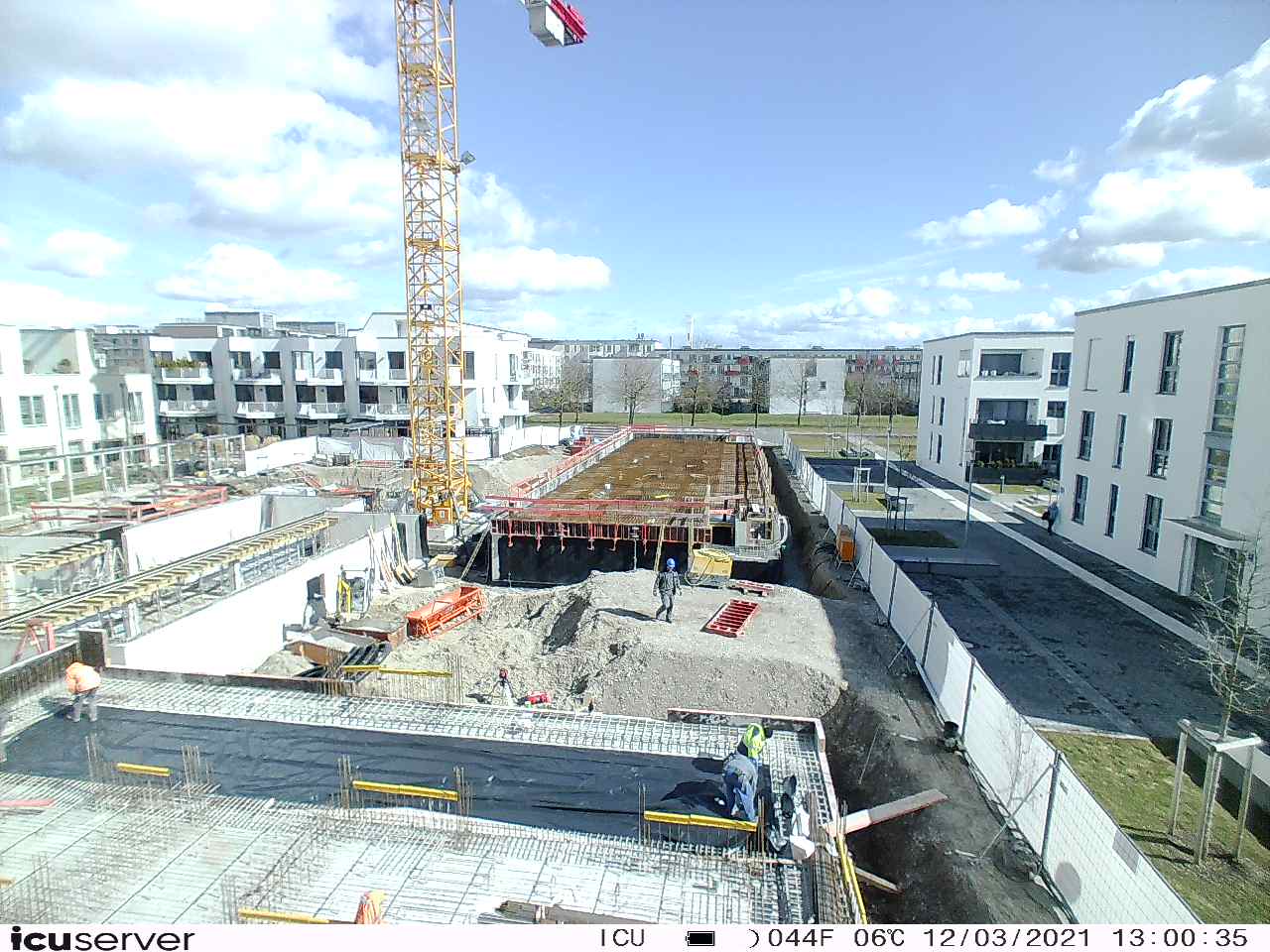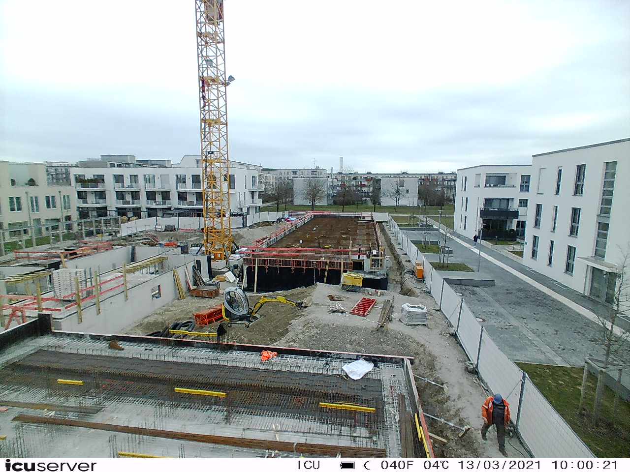 Die Kamera steht am westlichen Ende der Baustelle. Sie blickt nach Osten. Bilder: 26. Februar - 13. August 2021.