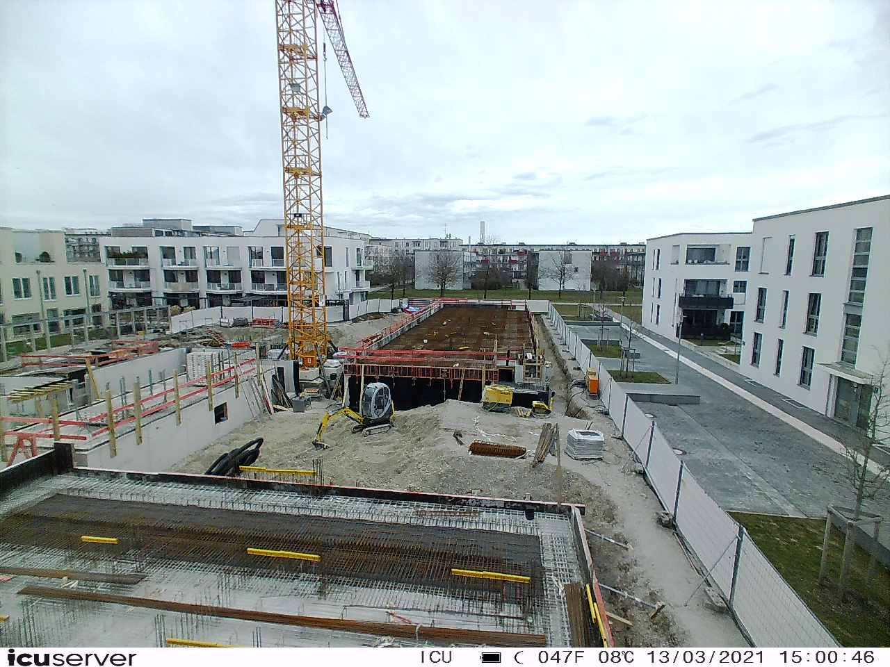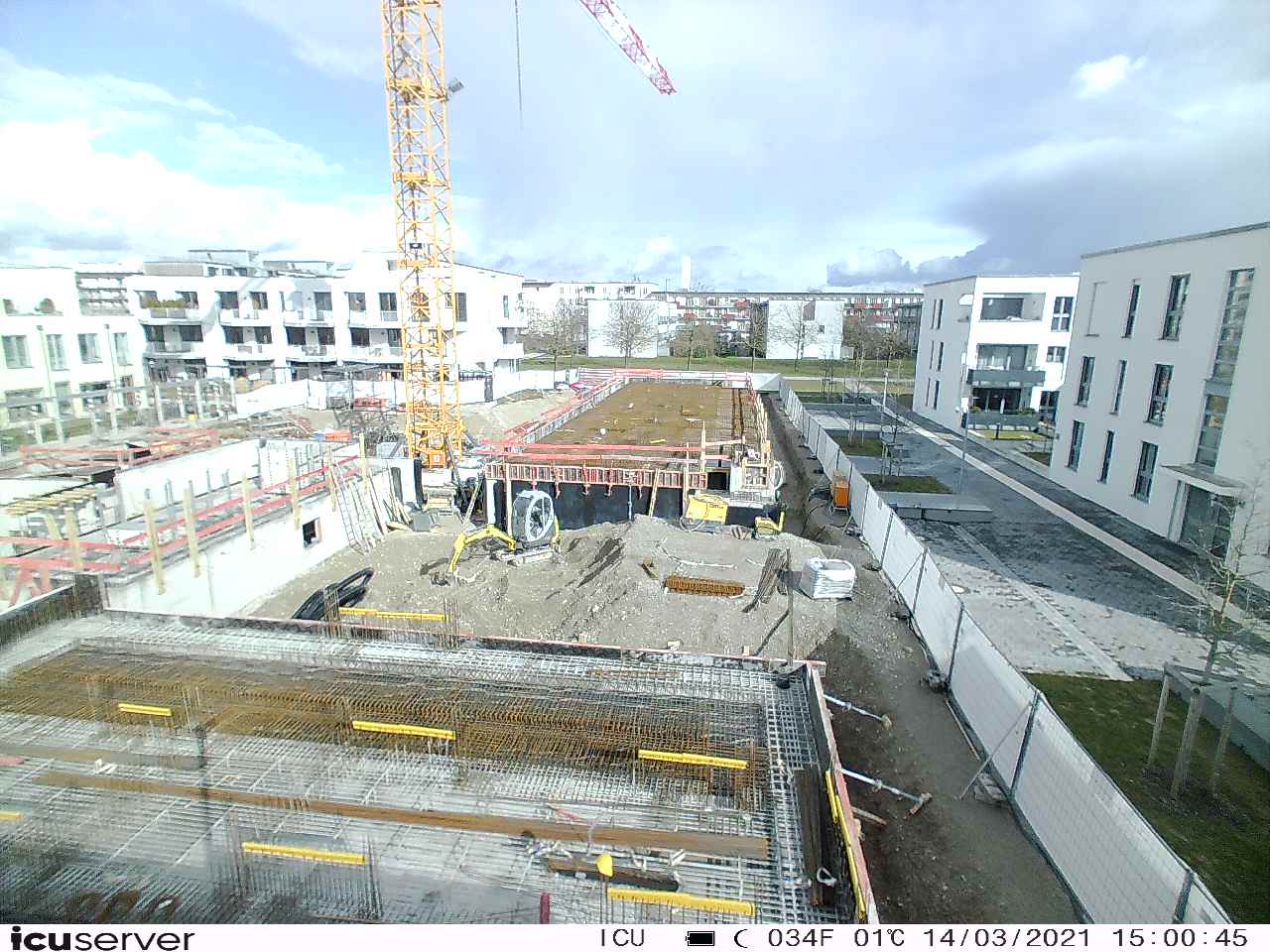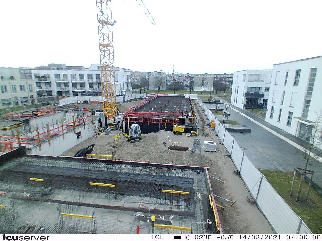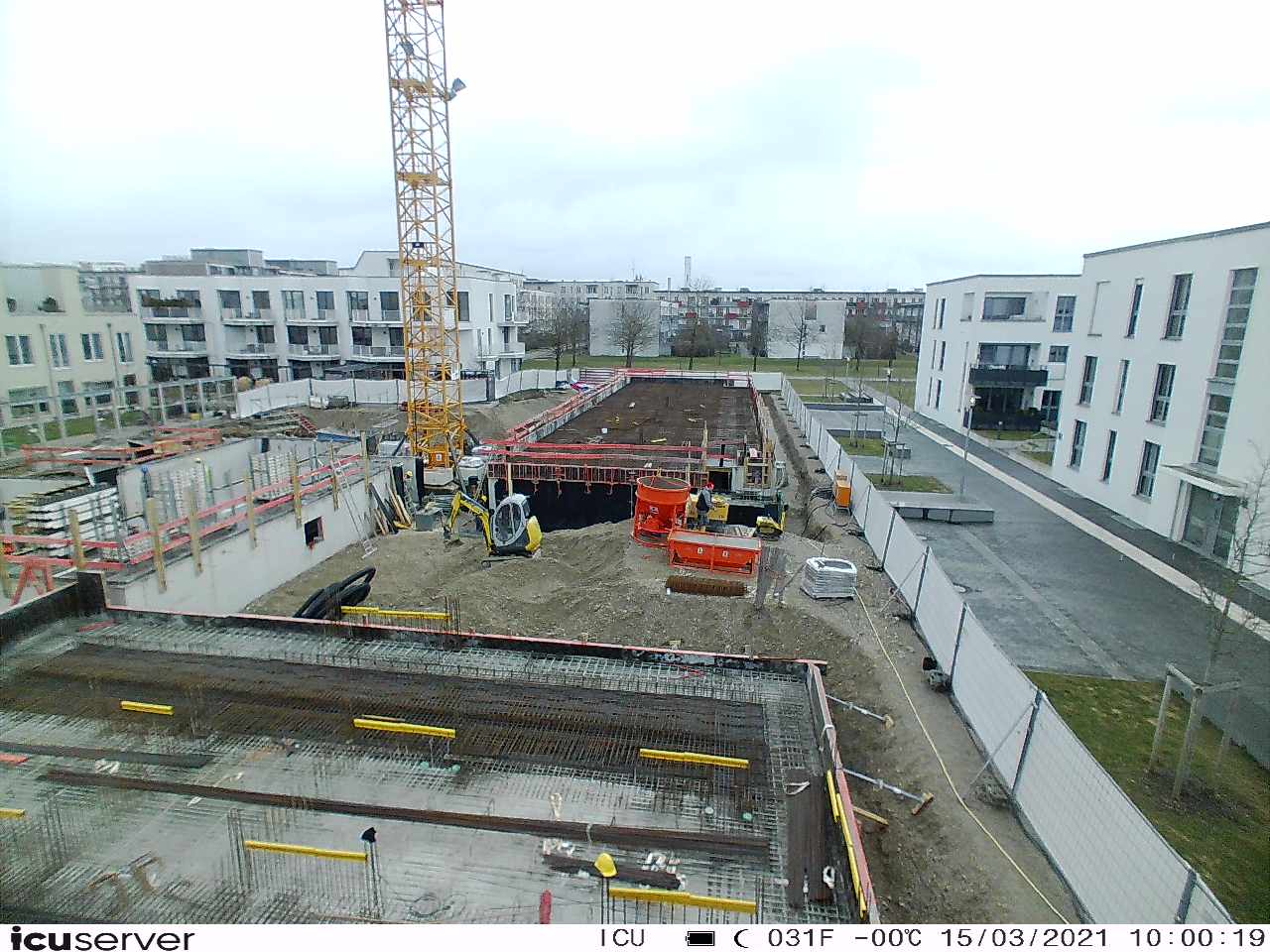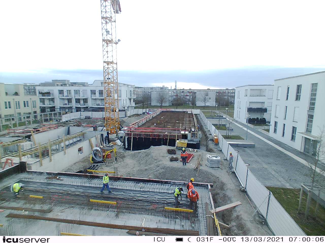 Die Kamera steht am westlichen Ende der Baustelle. Sie blickt nach Osten. Bilder: 26. Februar - 13. August 2021.
