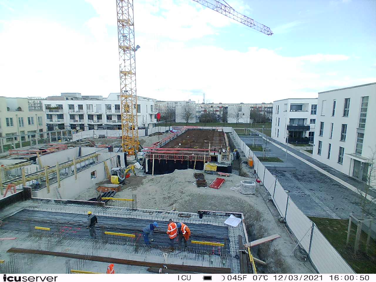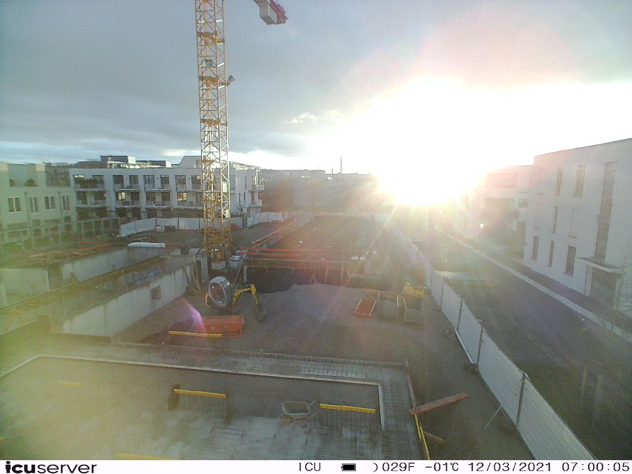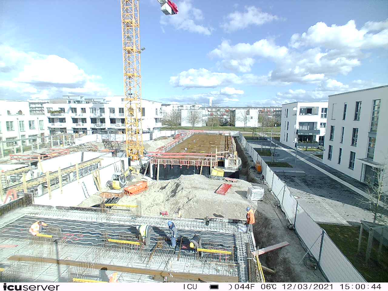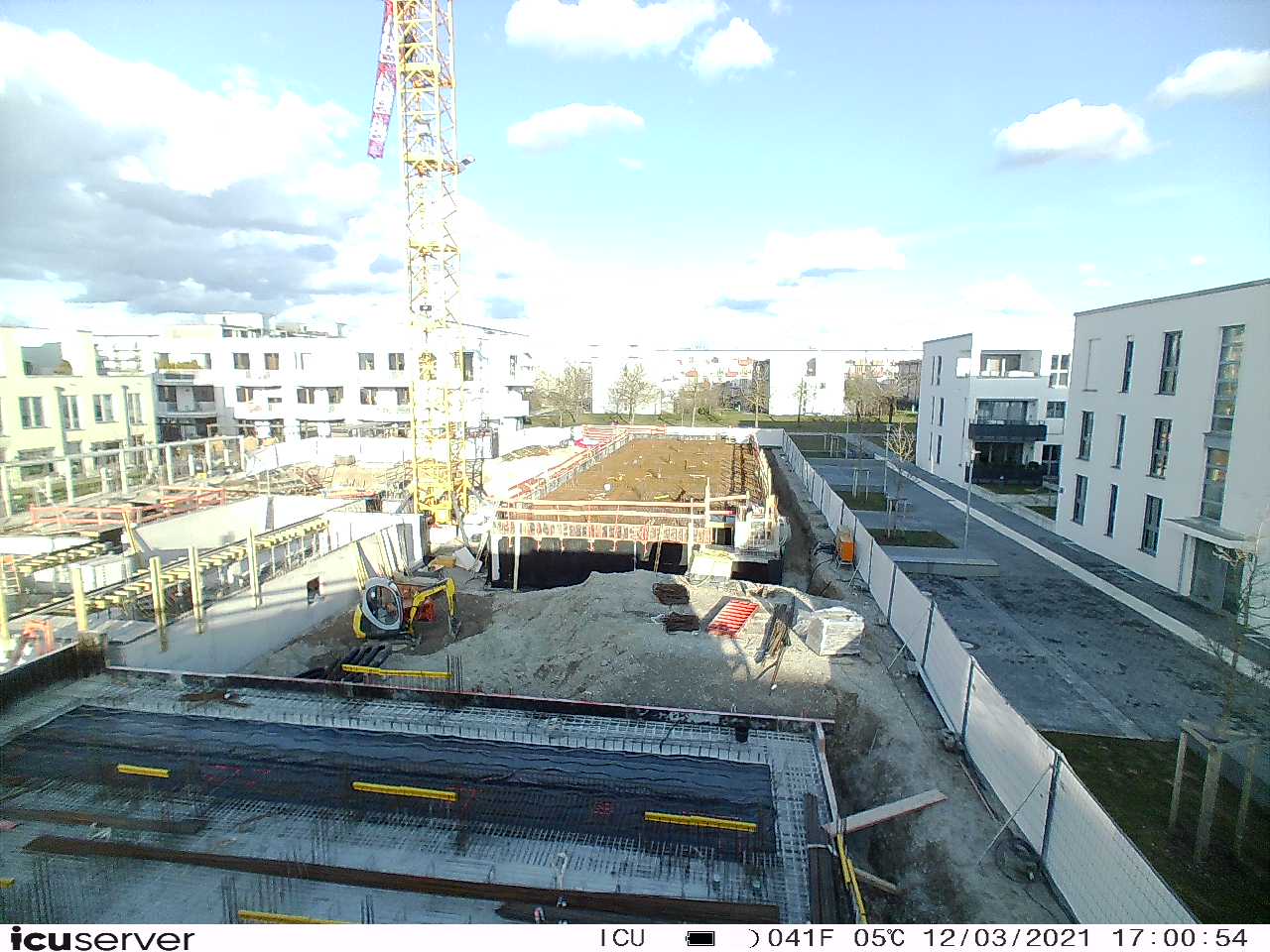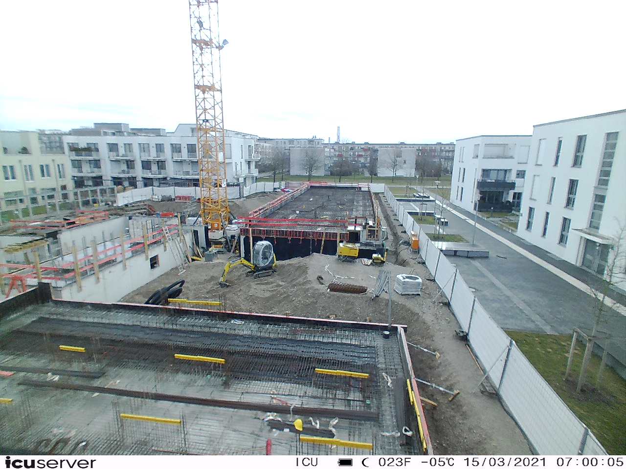 Die Kamera steht am westlichen Ende der Baustelle. Sie blickt nach Osten. Bilder: 26. Februar - 13. August 2021.