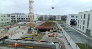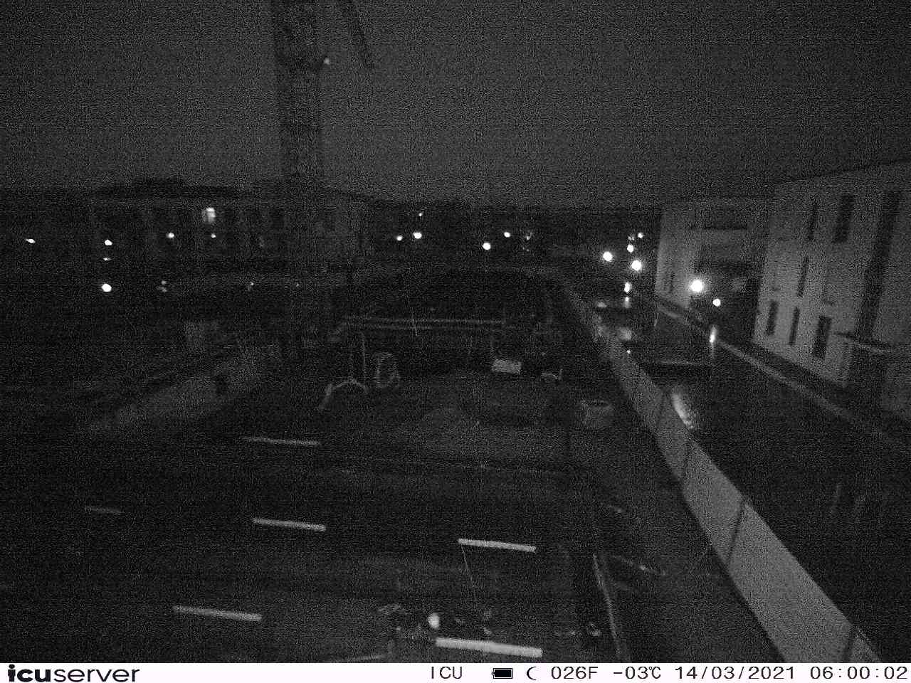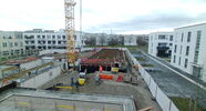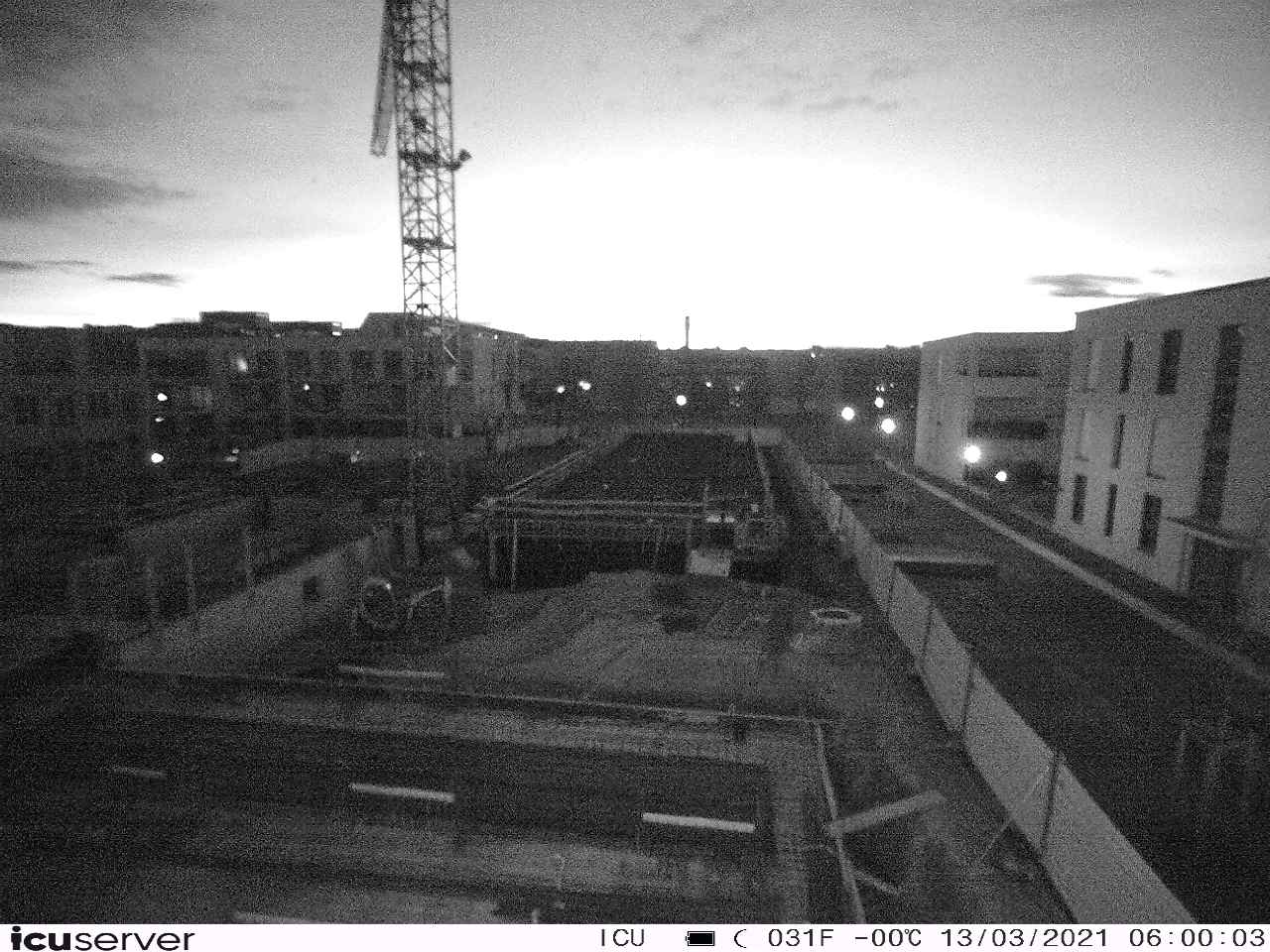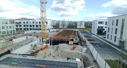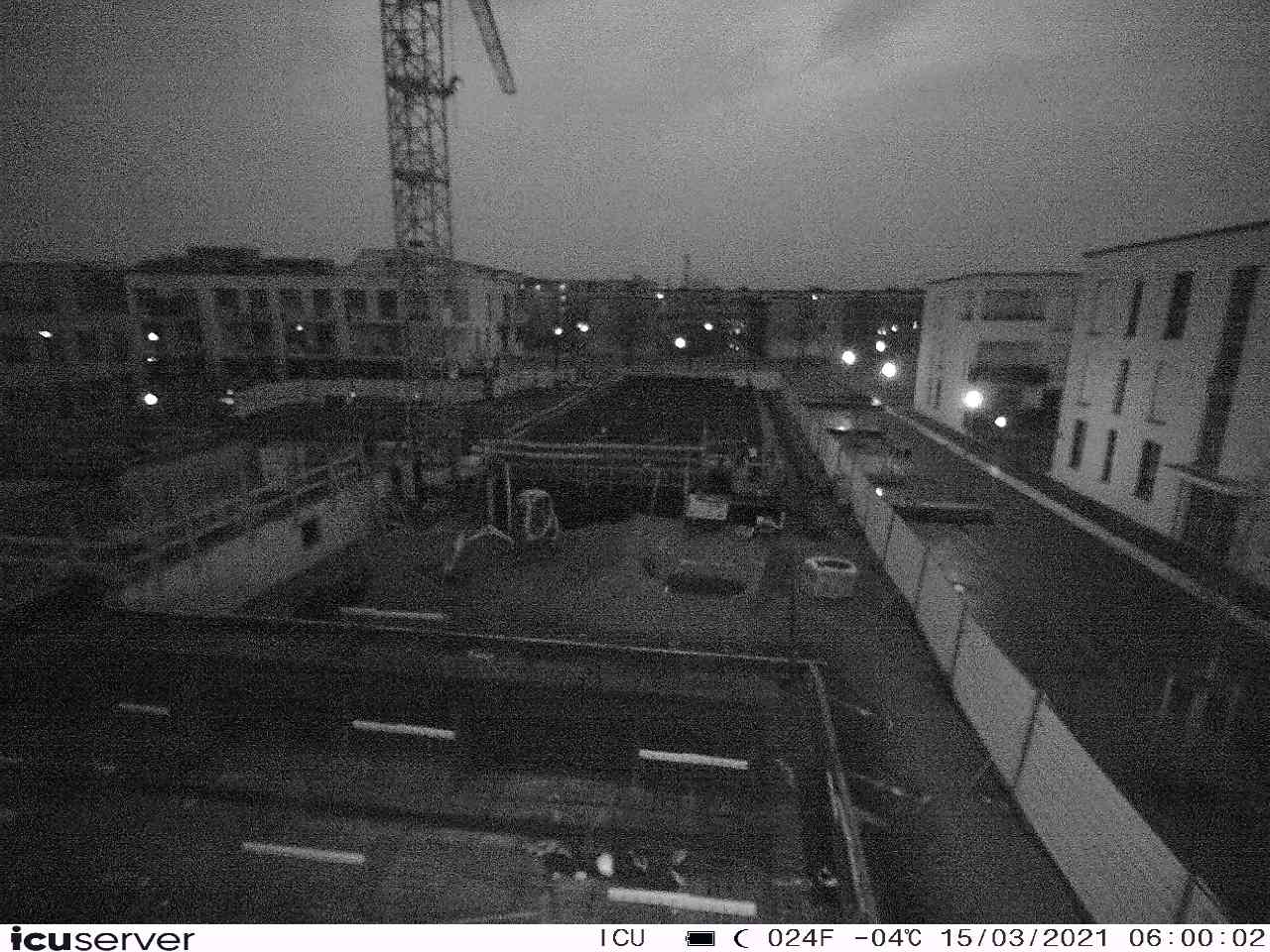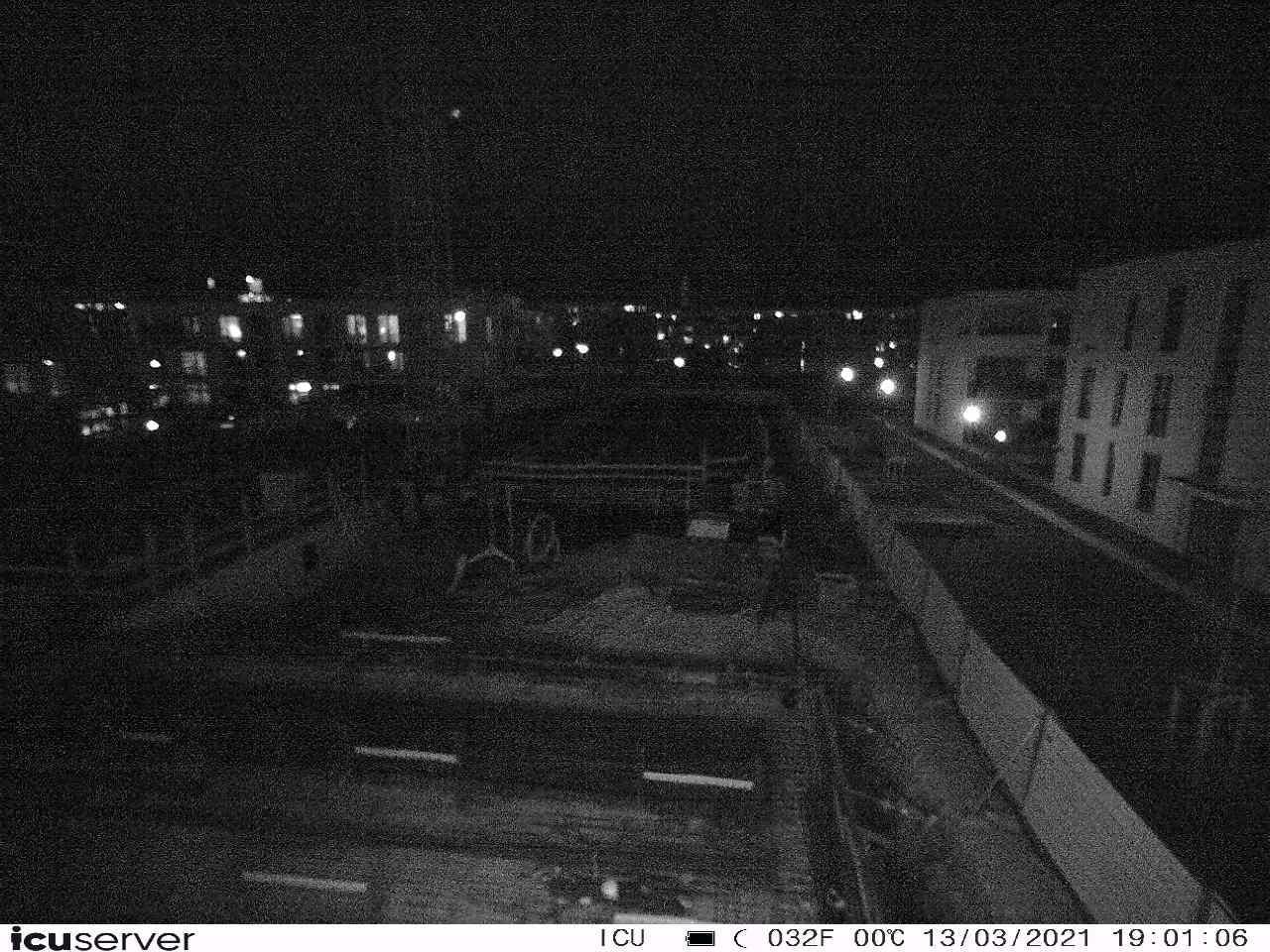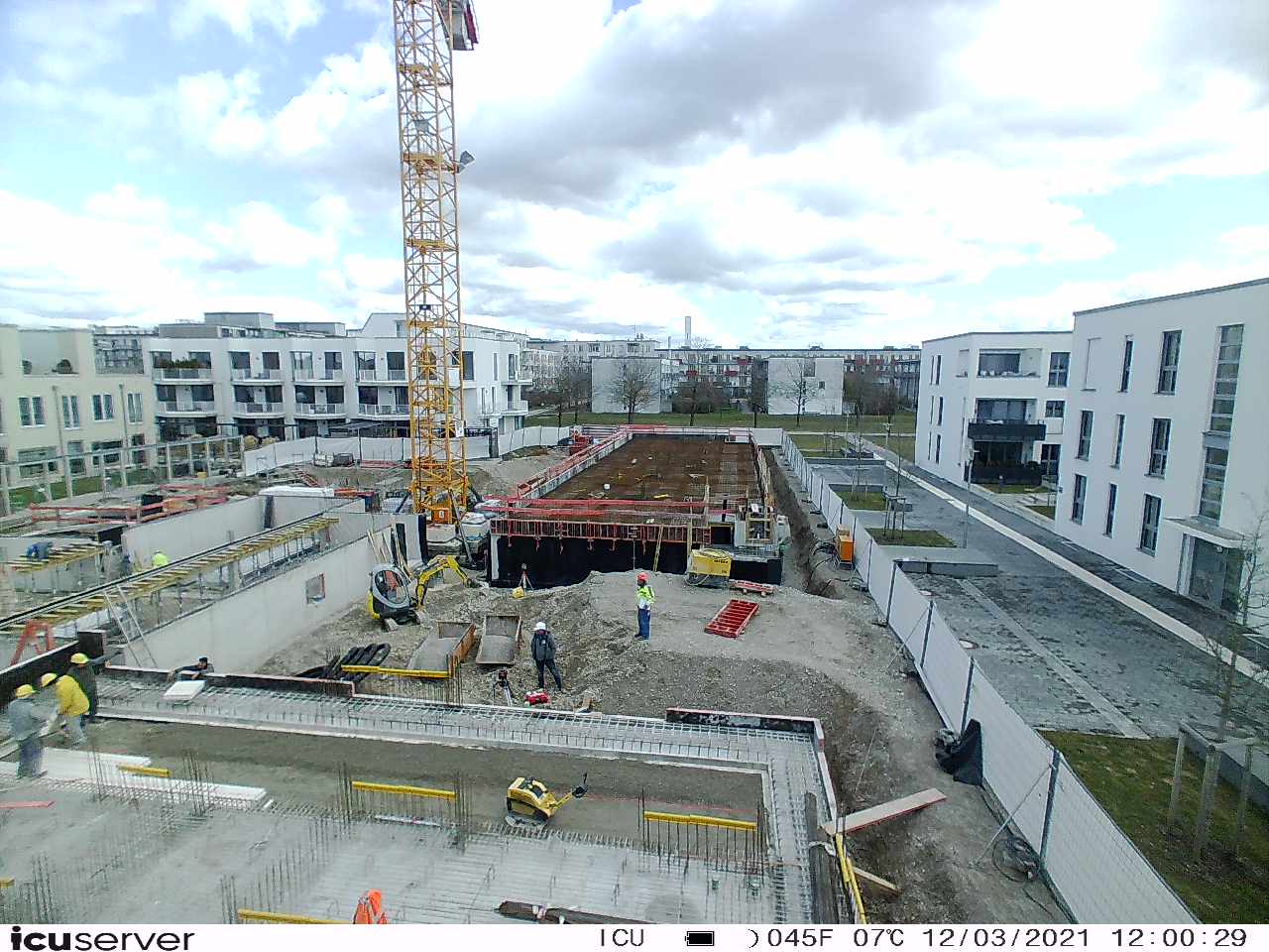 Die Kamera steht am westlichen Ende der Baustelle. Sie blickt nach Osten. Bilder: 26. Februar - 13. August 2021.