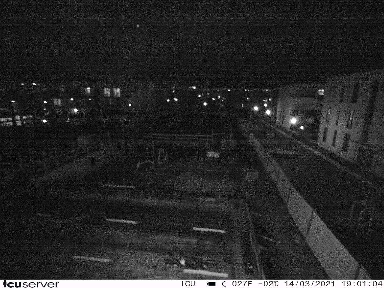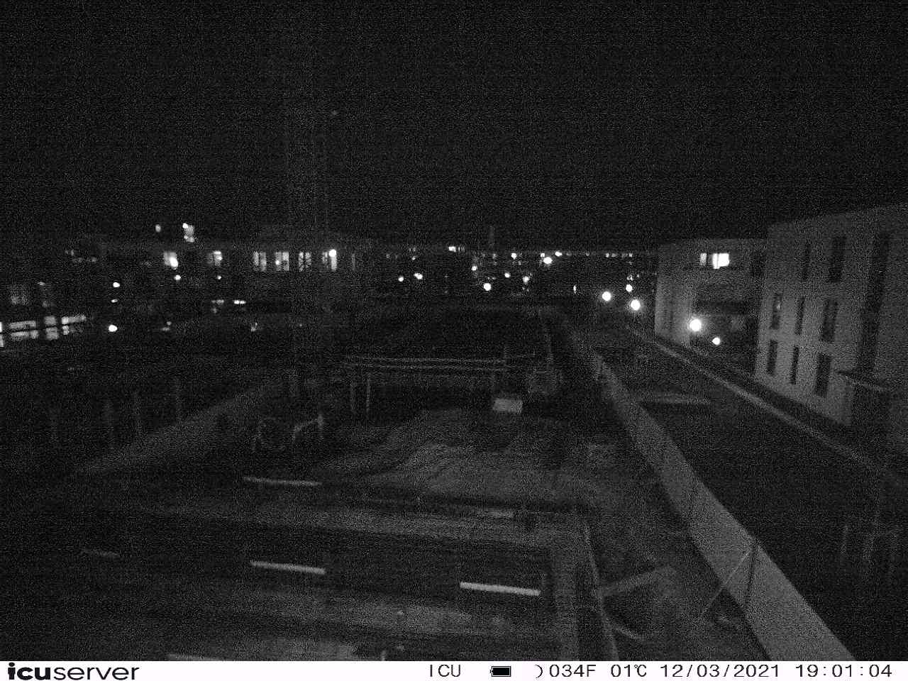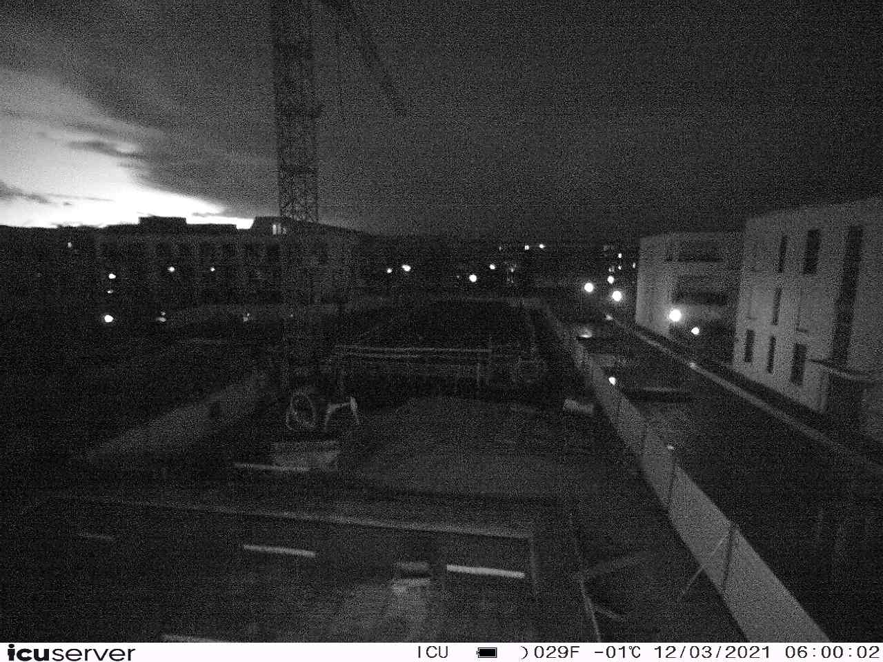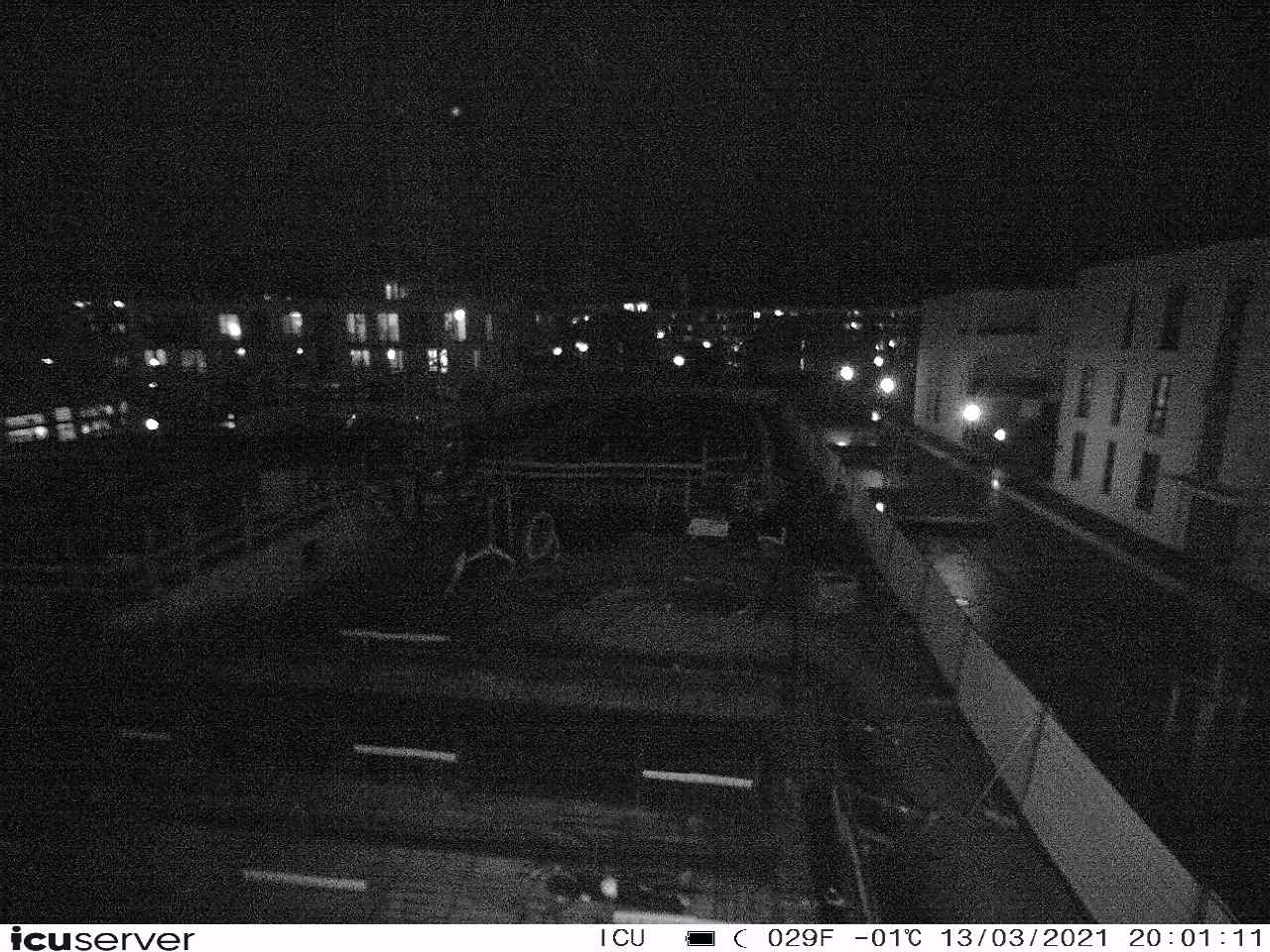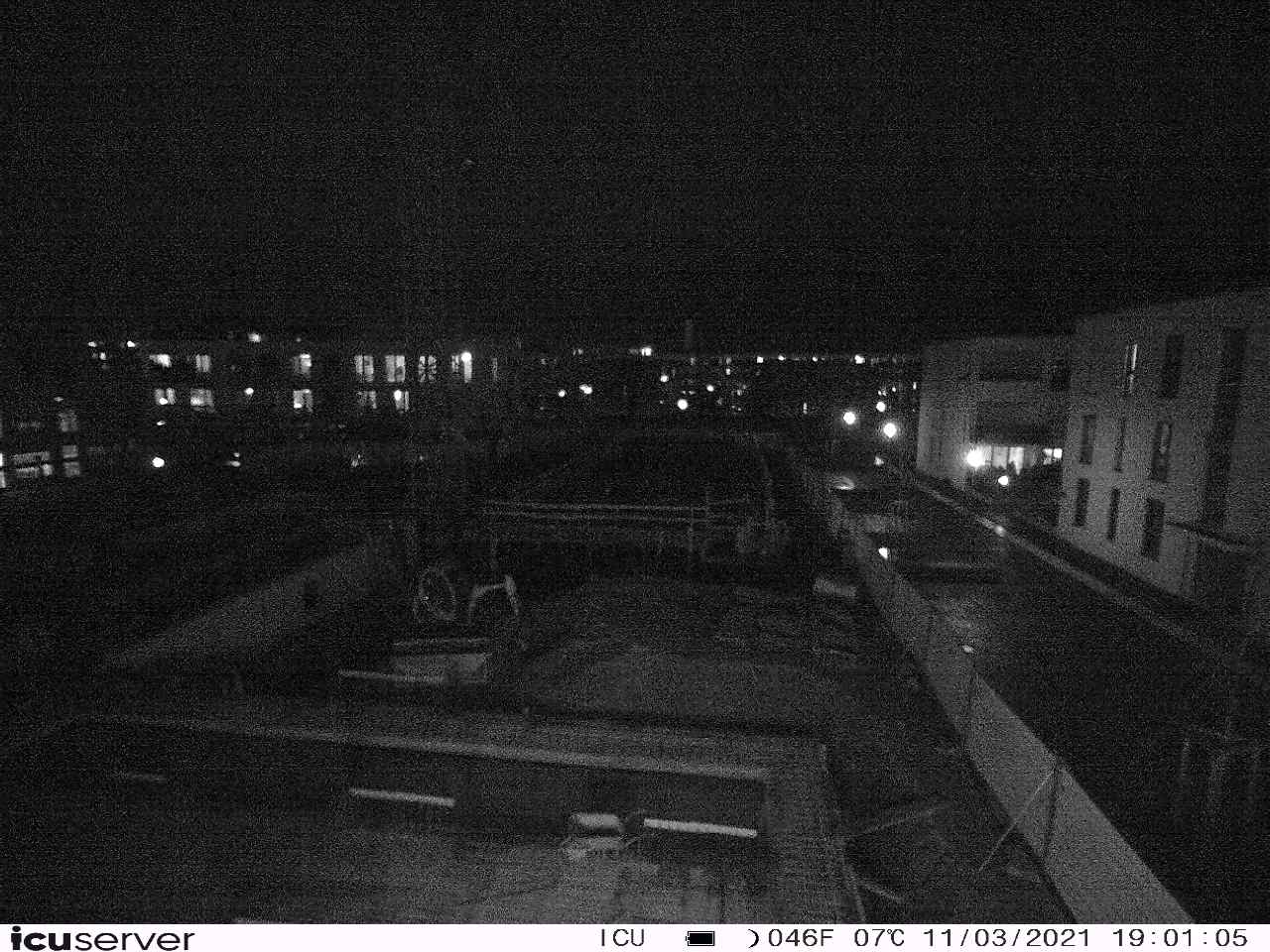 Die Kamera steht am westlichen Ende der Baustelle. Sie blickt nach Osten. Bilder: 26. Februar - 13. August 2021.