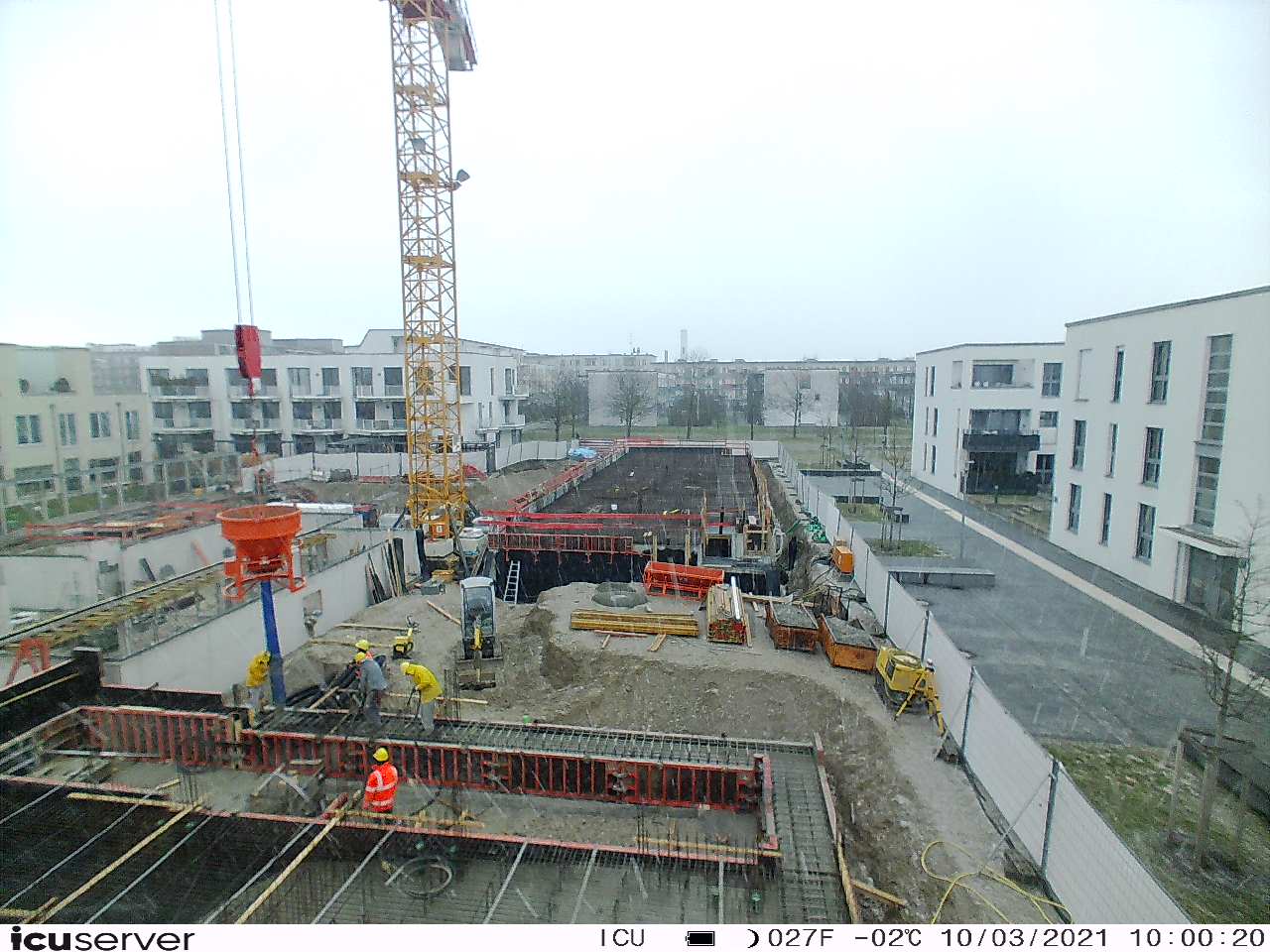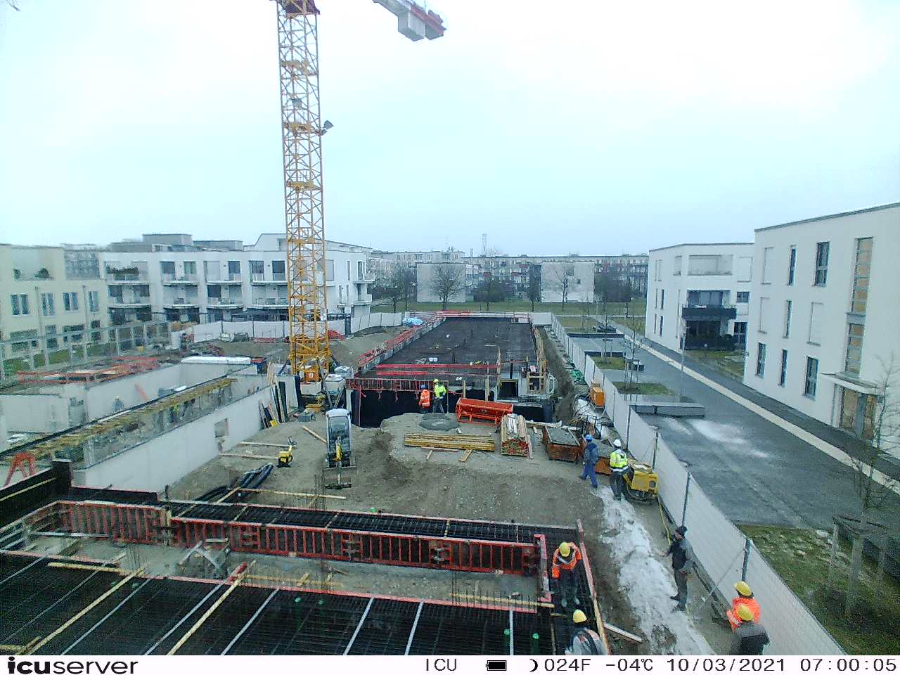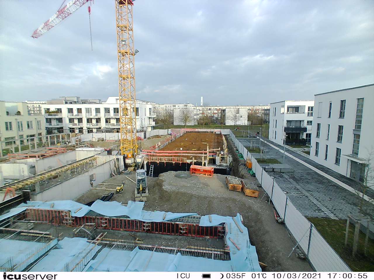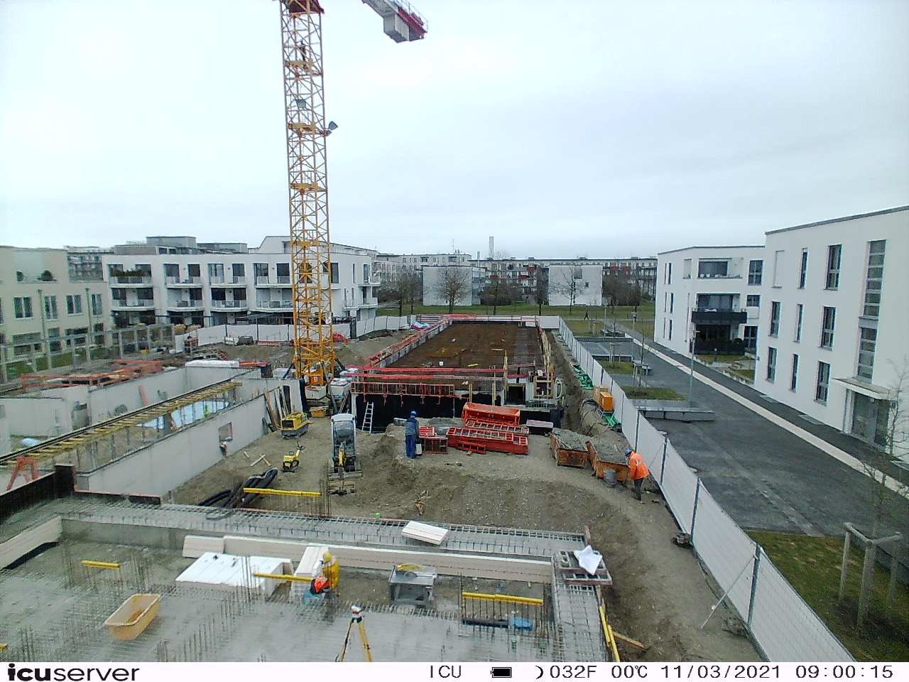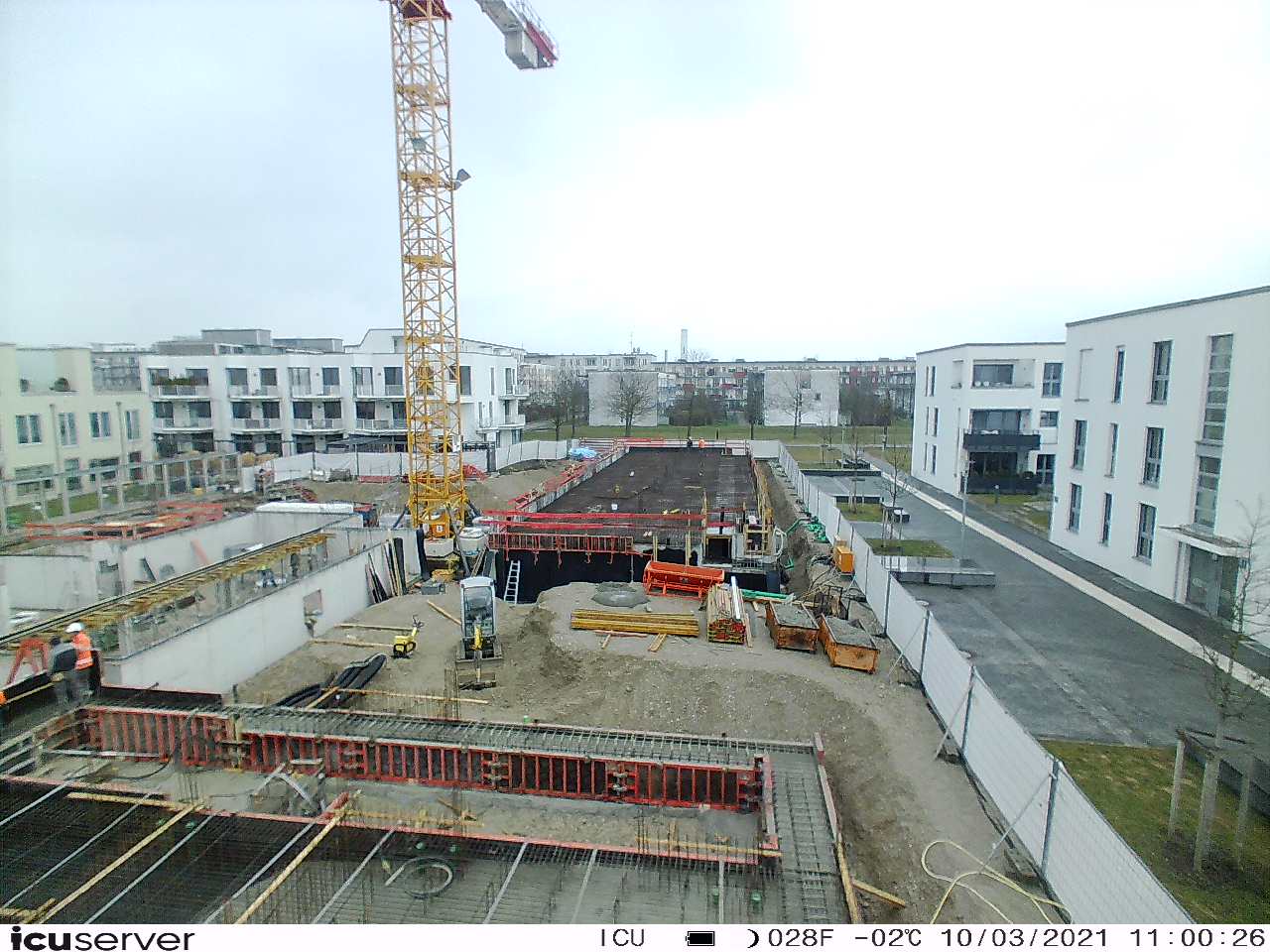 Die Kamera steht am westlichen Ende der Baustelle. Sie blickt nach Osten. Bilder: 26. Februar - 13. August 2021.