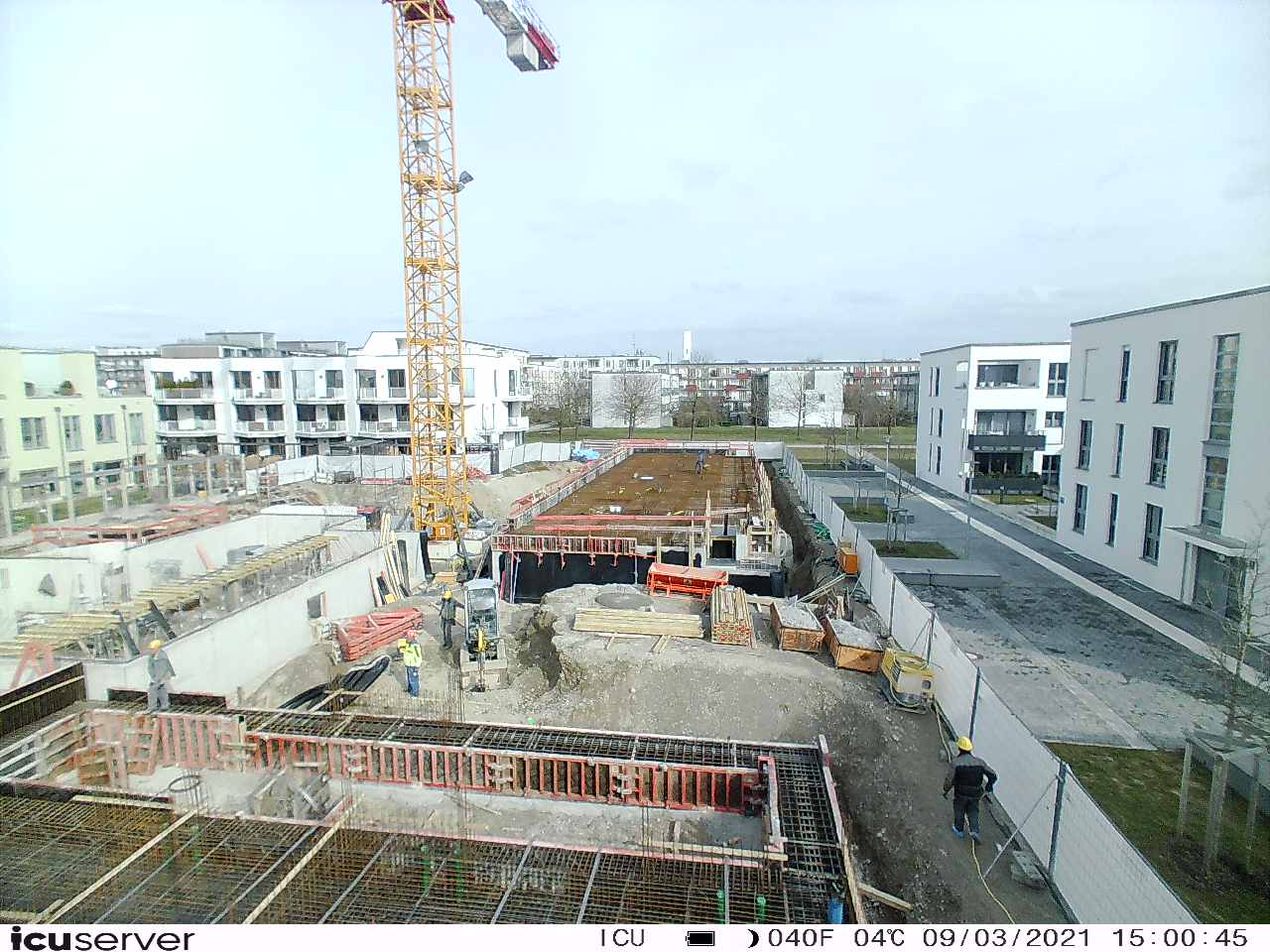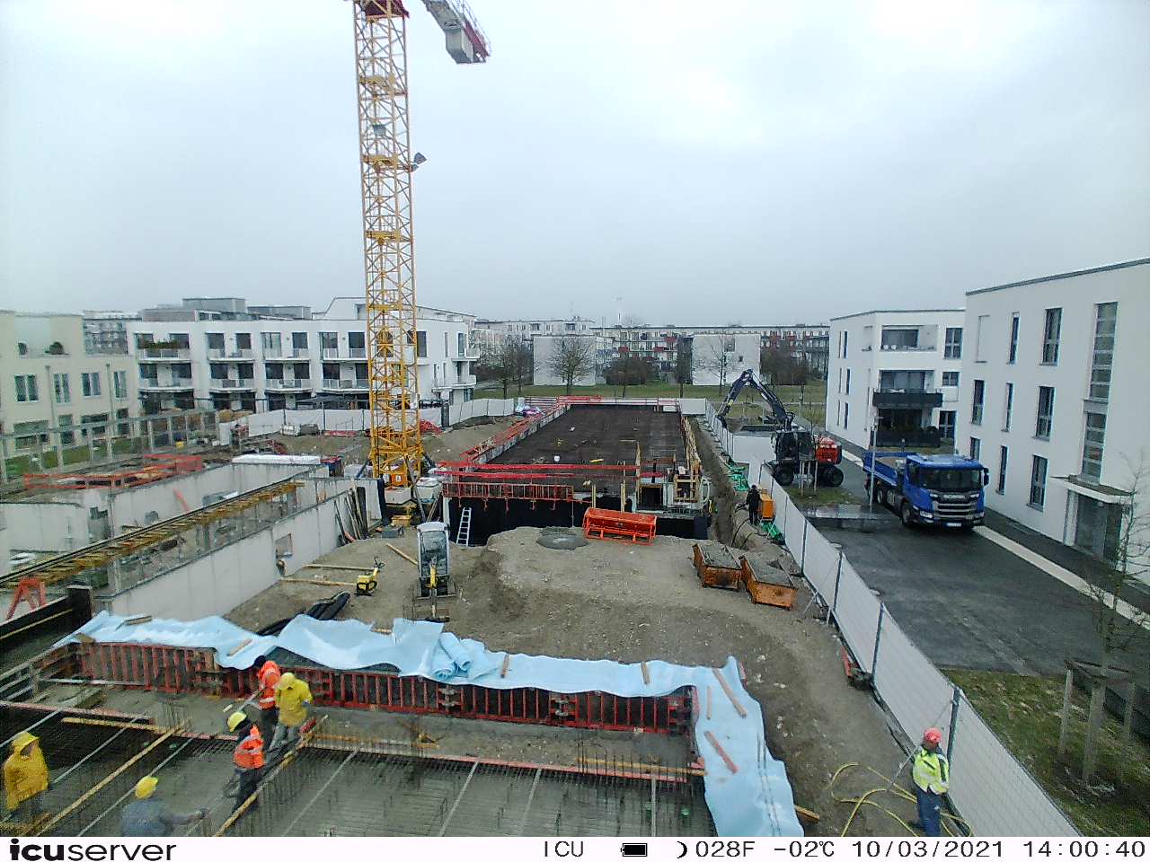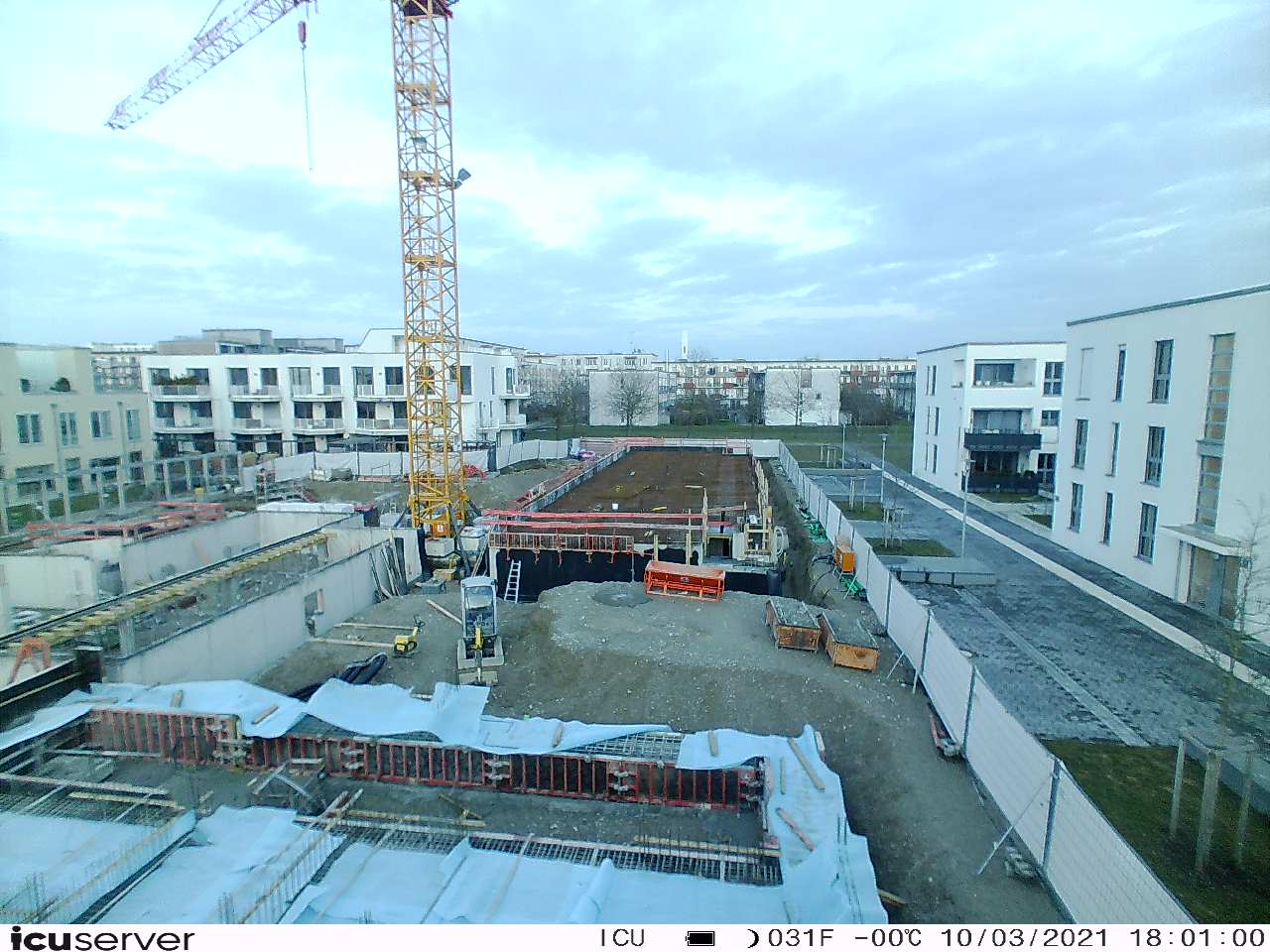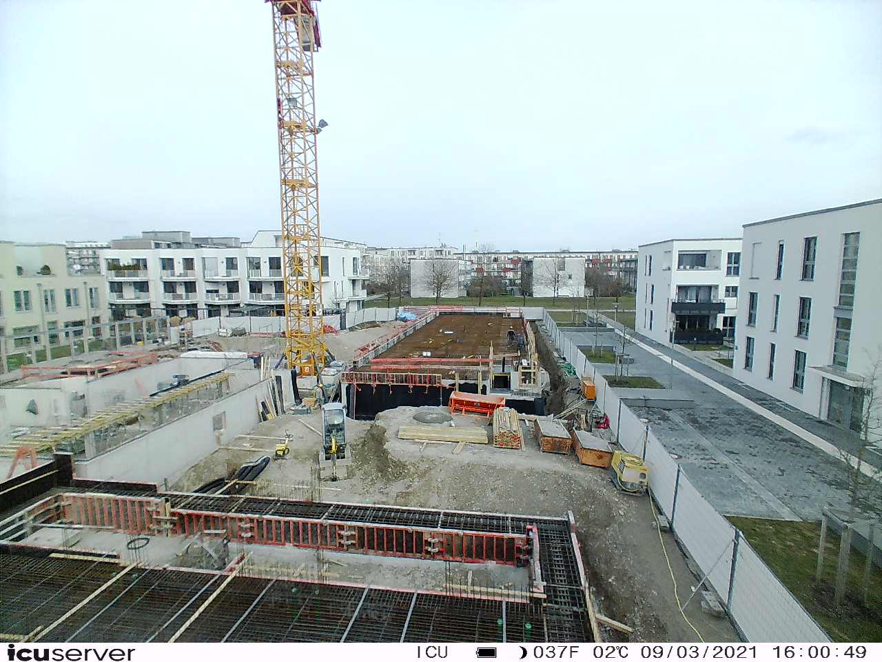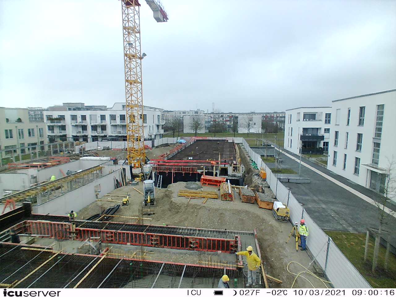 Die Kamera steht am westlichen Ende der Baustelle. Sie blickt nach Osten. Bilder: 26. Februar - 13. August 2021.