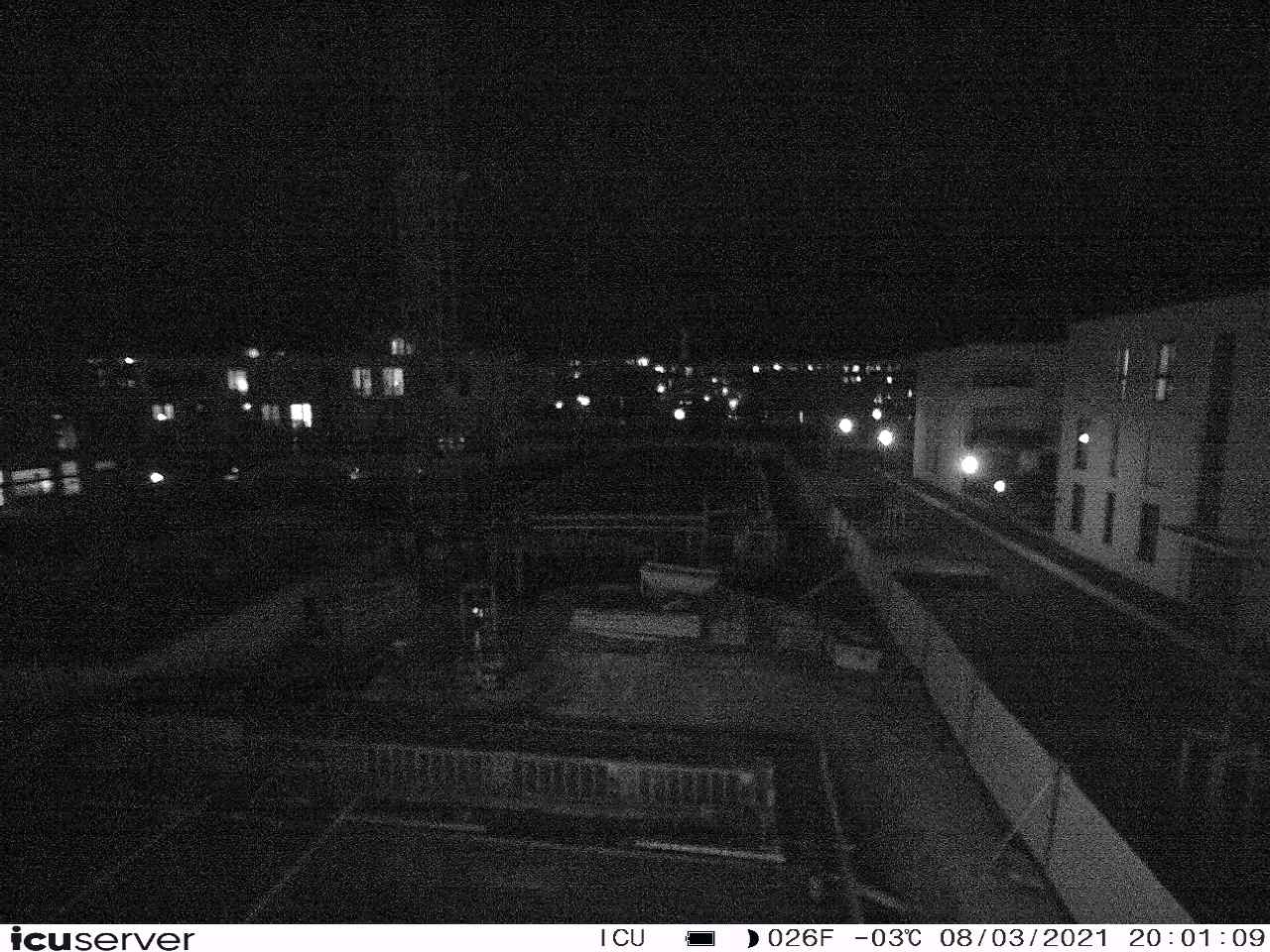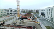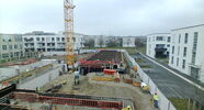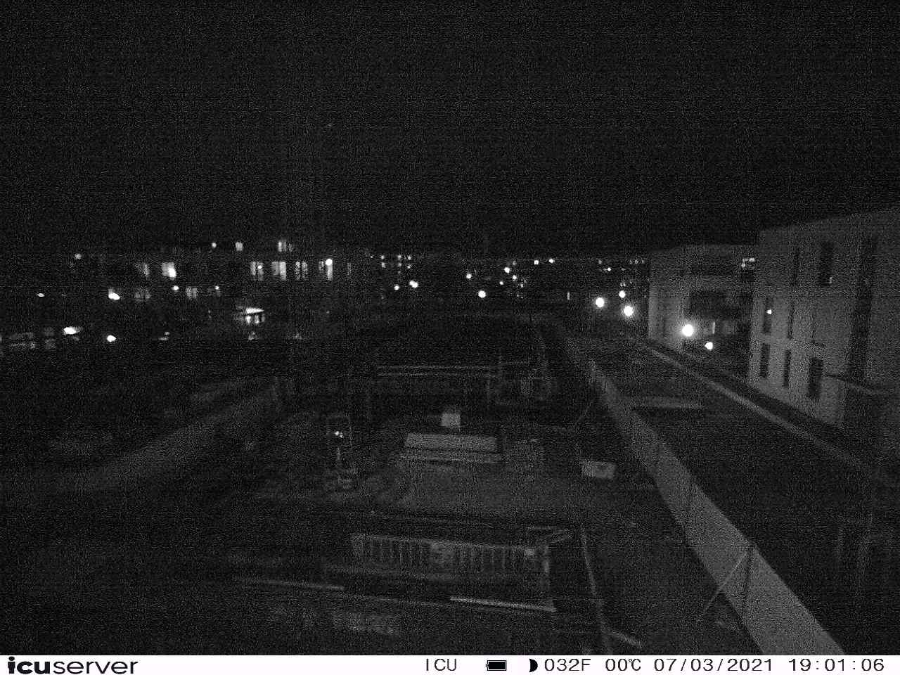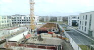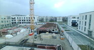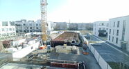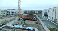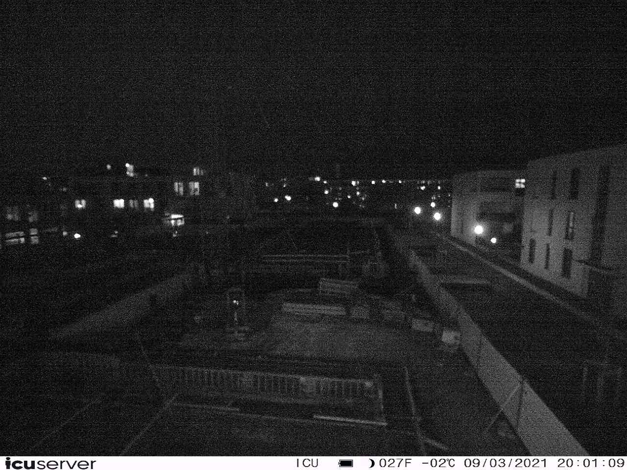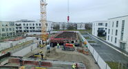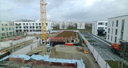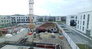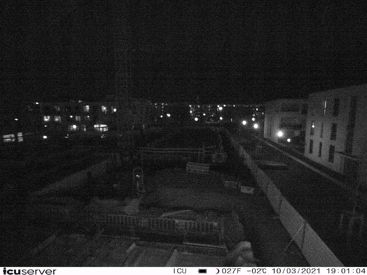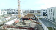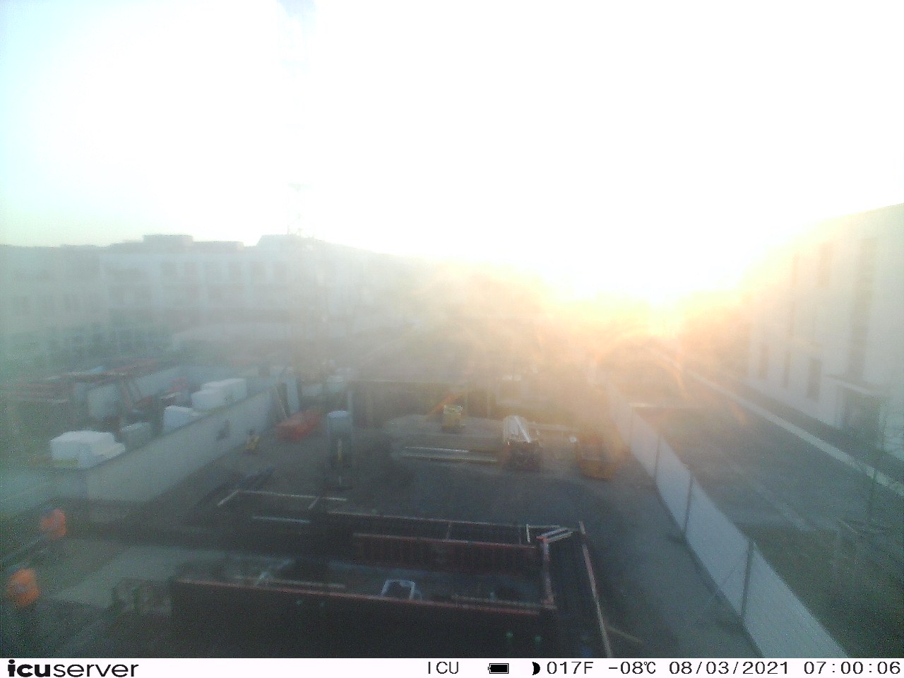 Die Kamera steht am westlichen Ende der Baustelle. Sie blickt nach Osten. Bilder: 26. Februar - 13. August 2021.