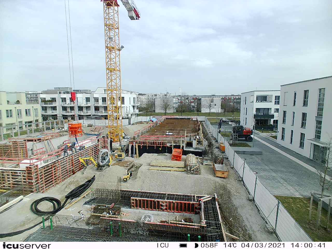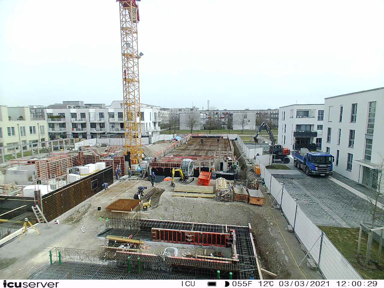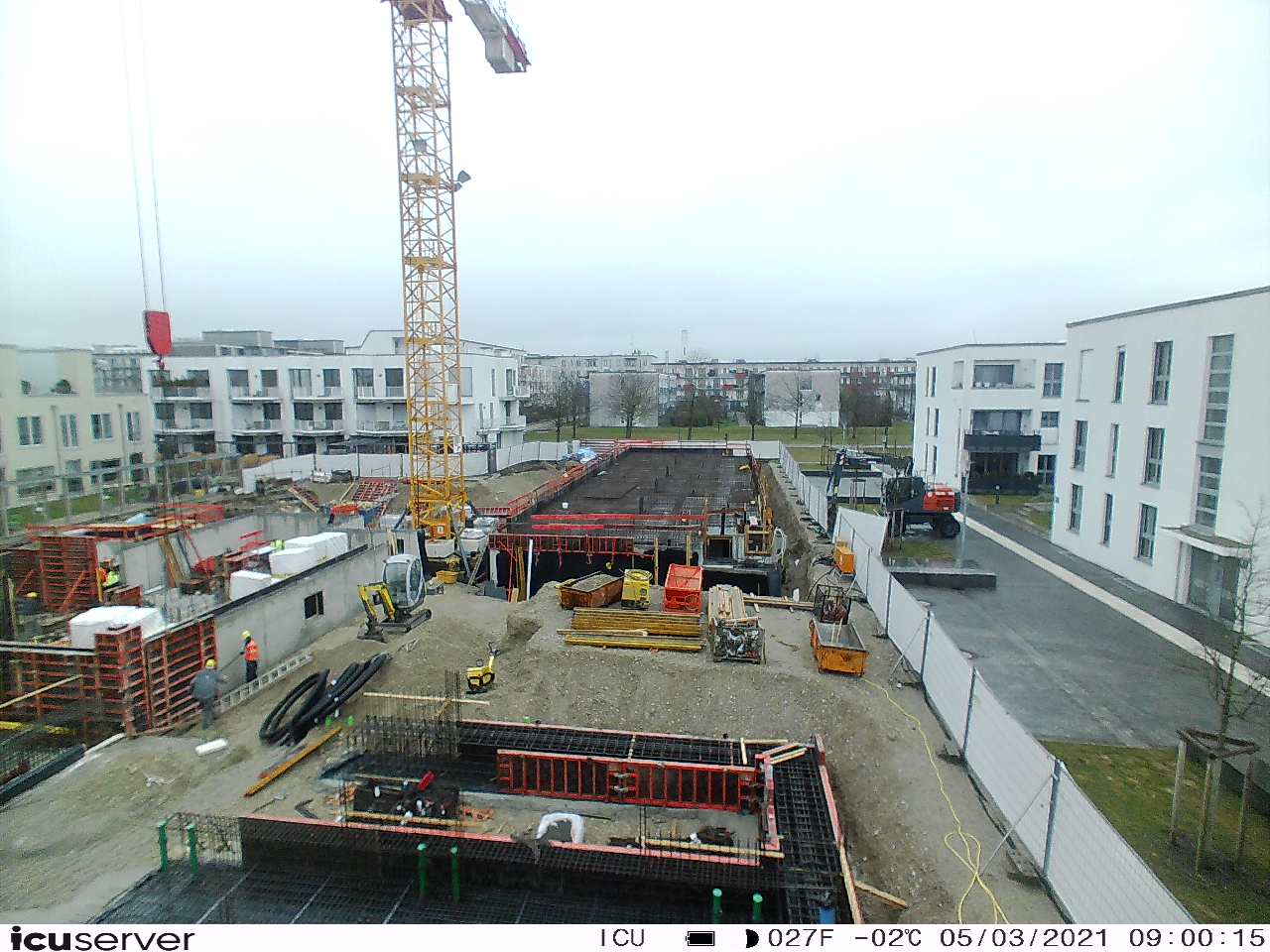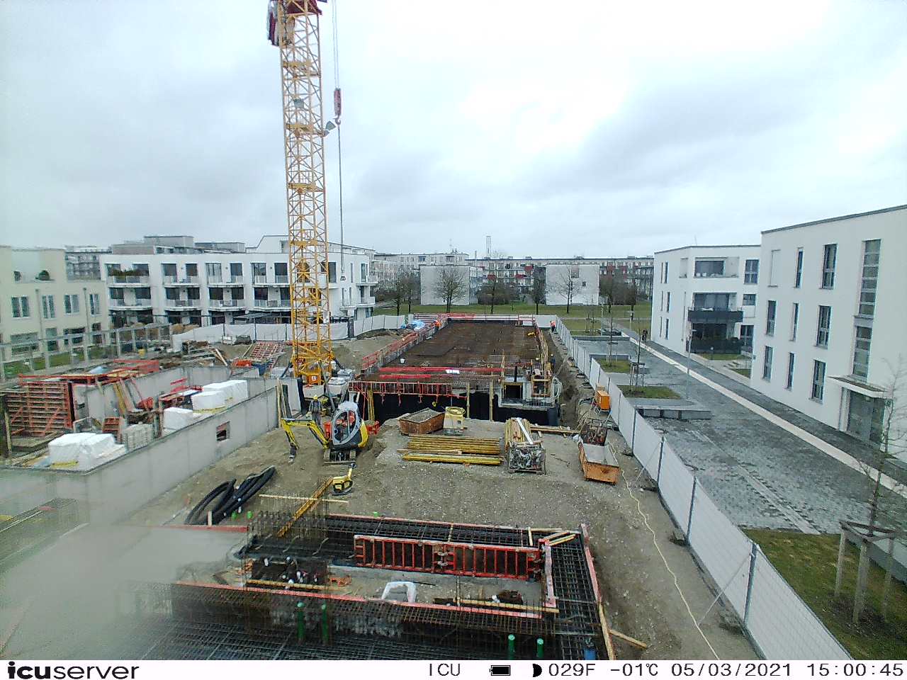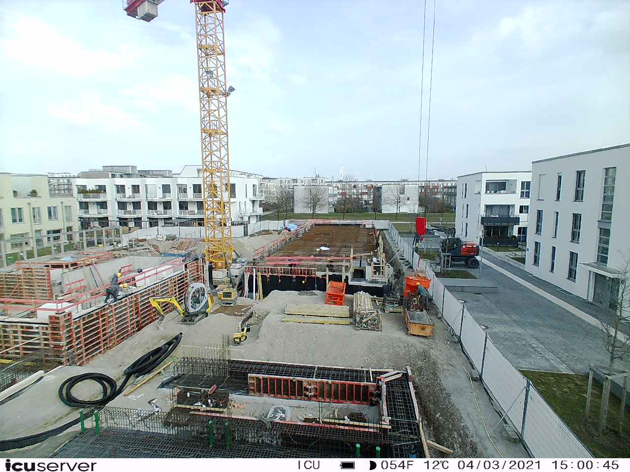 Die Kamera steht am westlichen Ende der Baustelle. Sie blickt nach Osten. Bilder: 26. Februar - 13. August 2021.