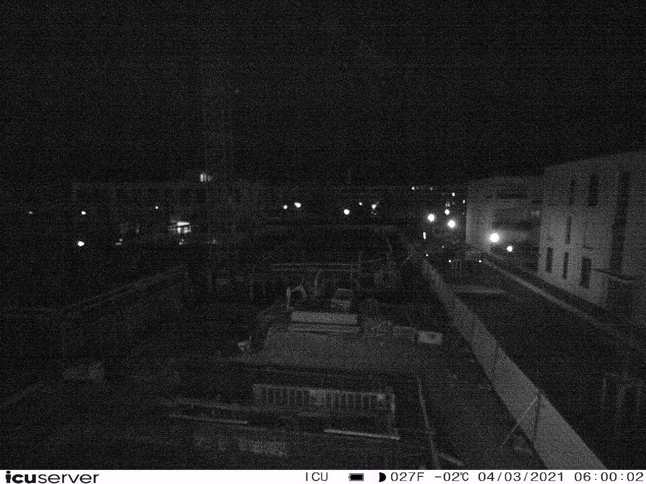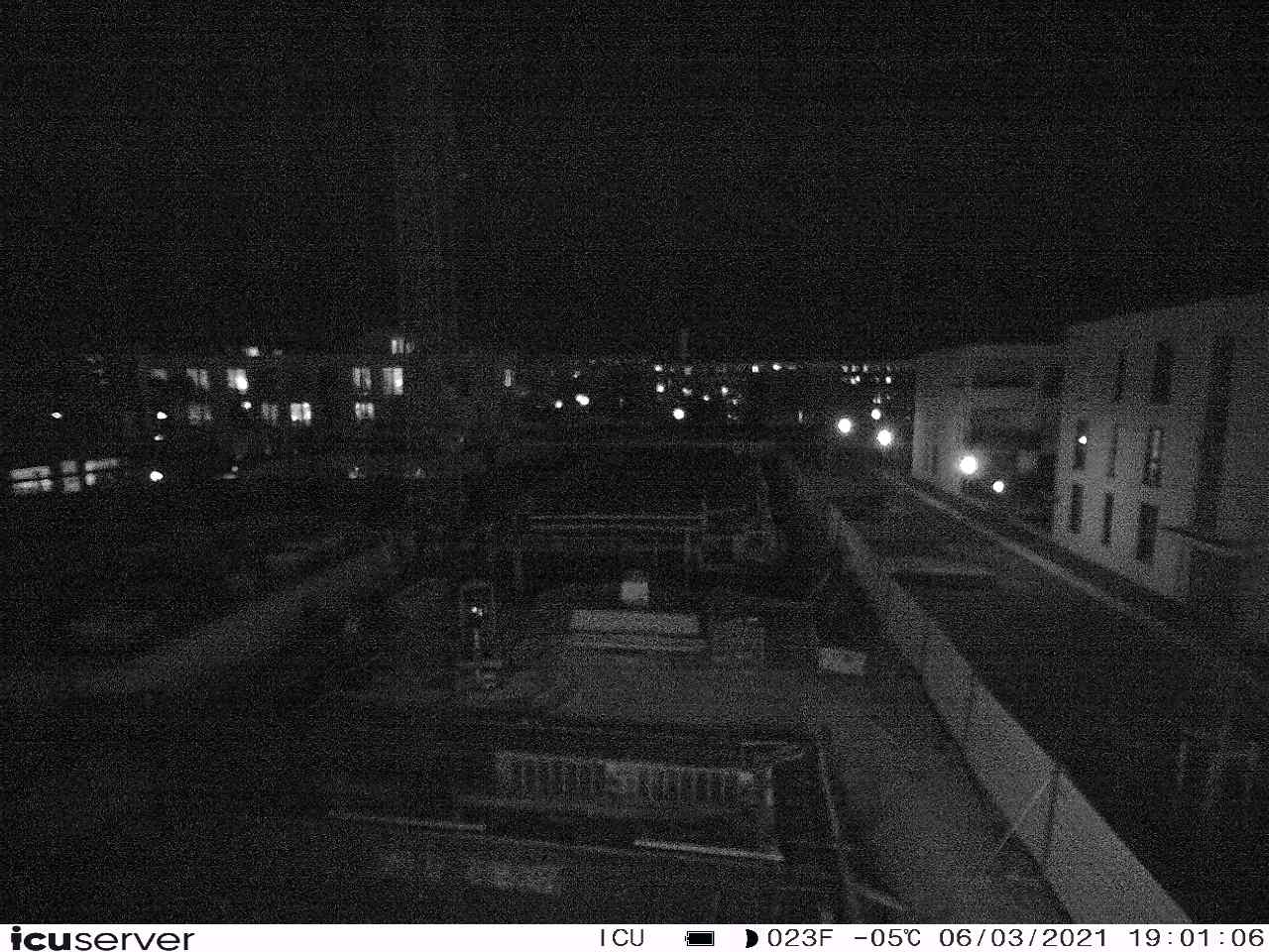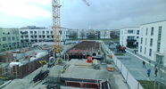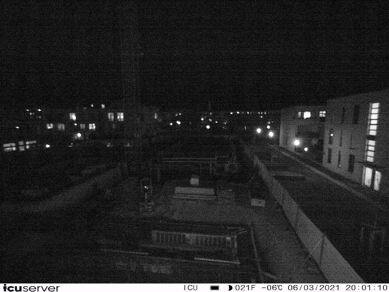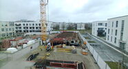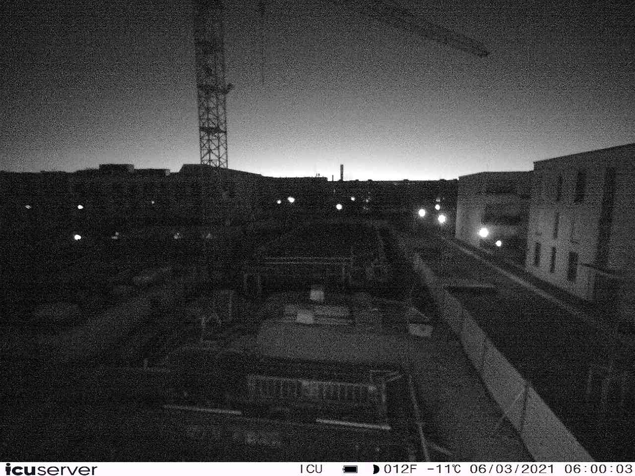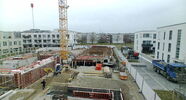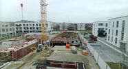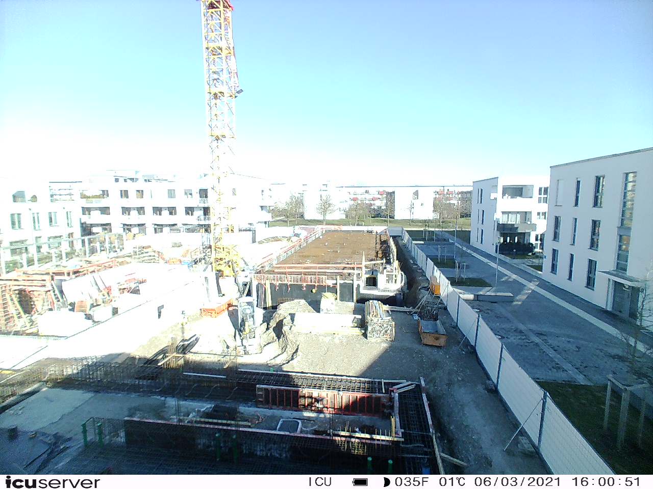 Die Kamera steht am westlichen Ende der Baustelle. Sie blickt nach Osten. Bilder: 26. Februar - 13. August 2021.