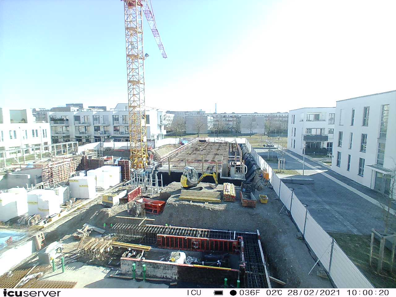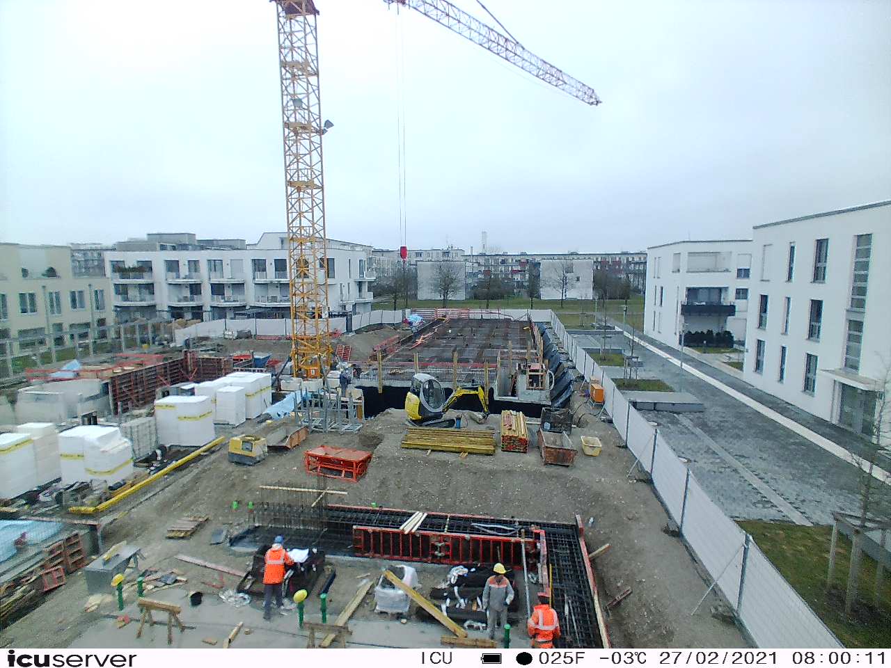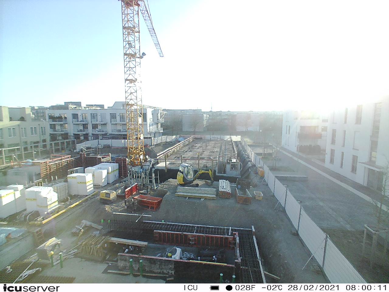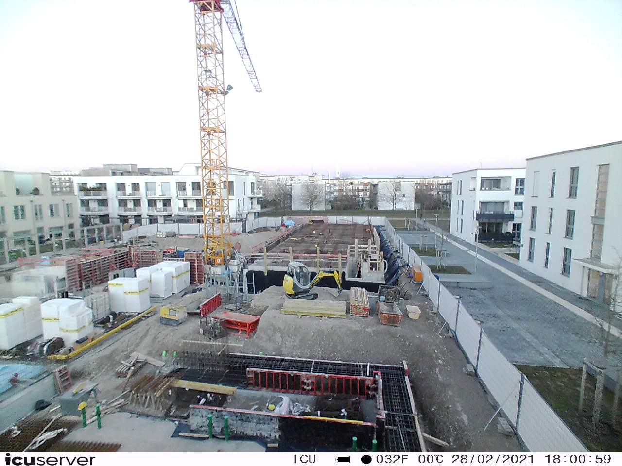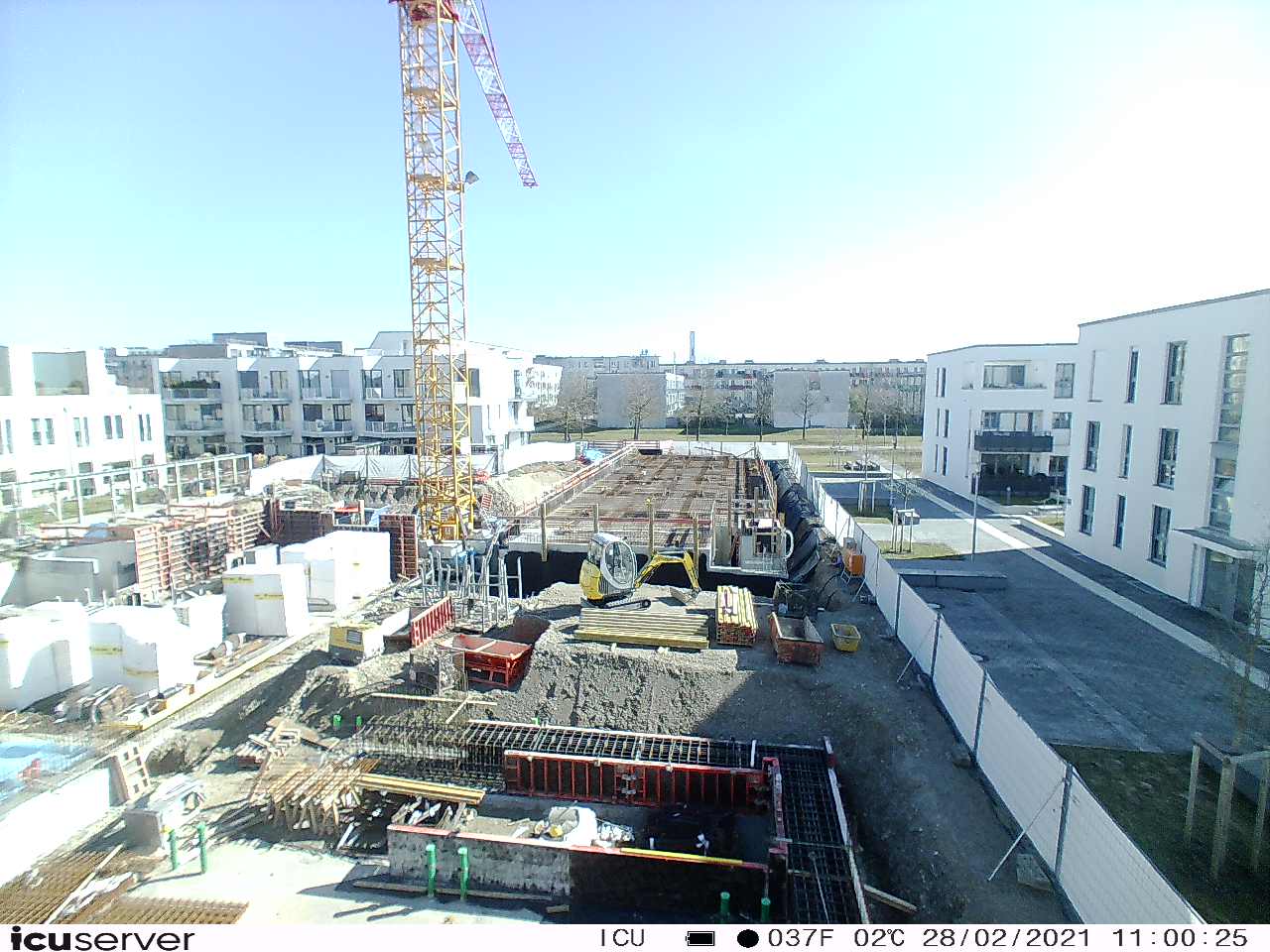 Die Kamera steht am westlichen Ende der Baustelle. Sie blickt nach Osten. Bilder: 26. Februar - 13. August 2021.