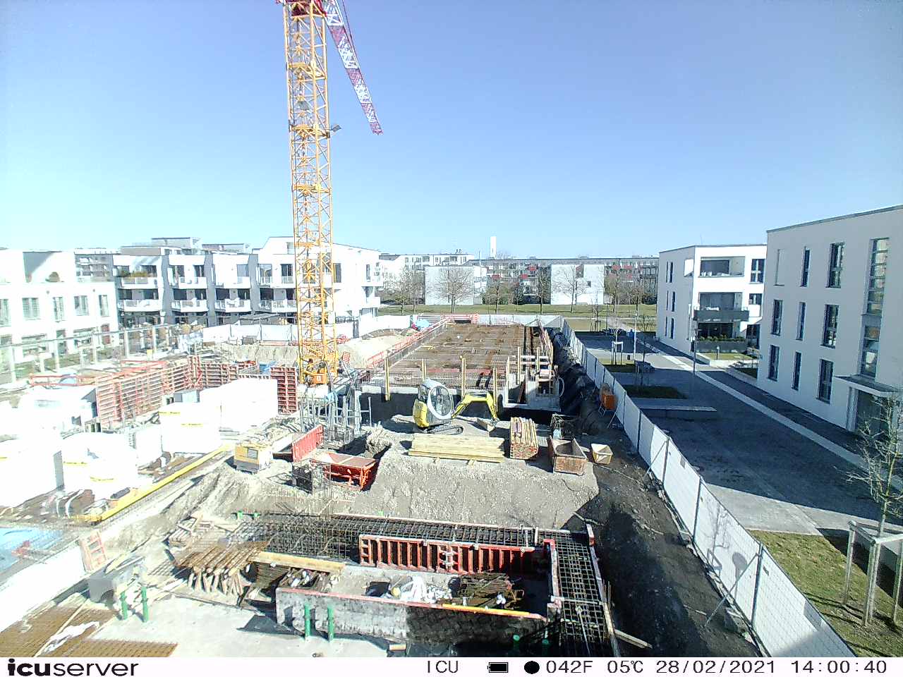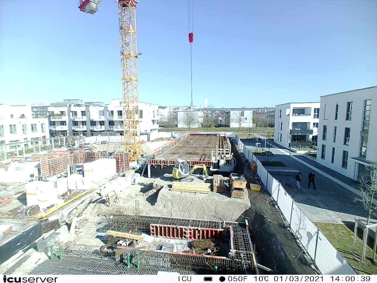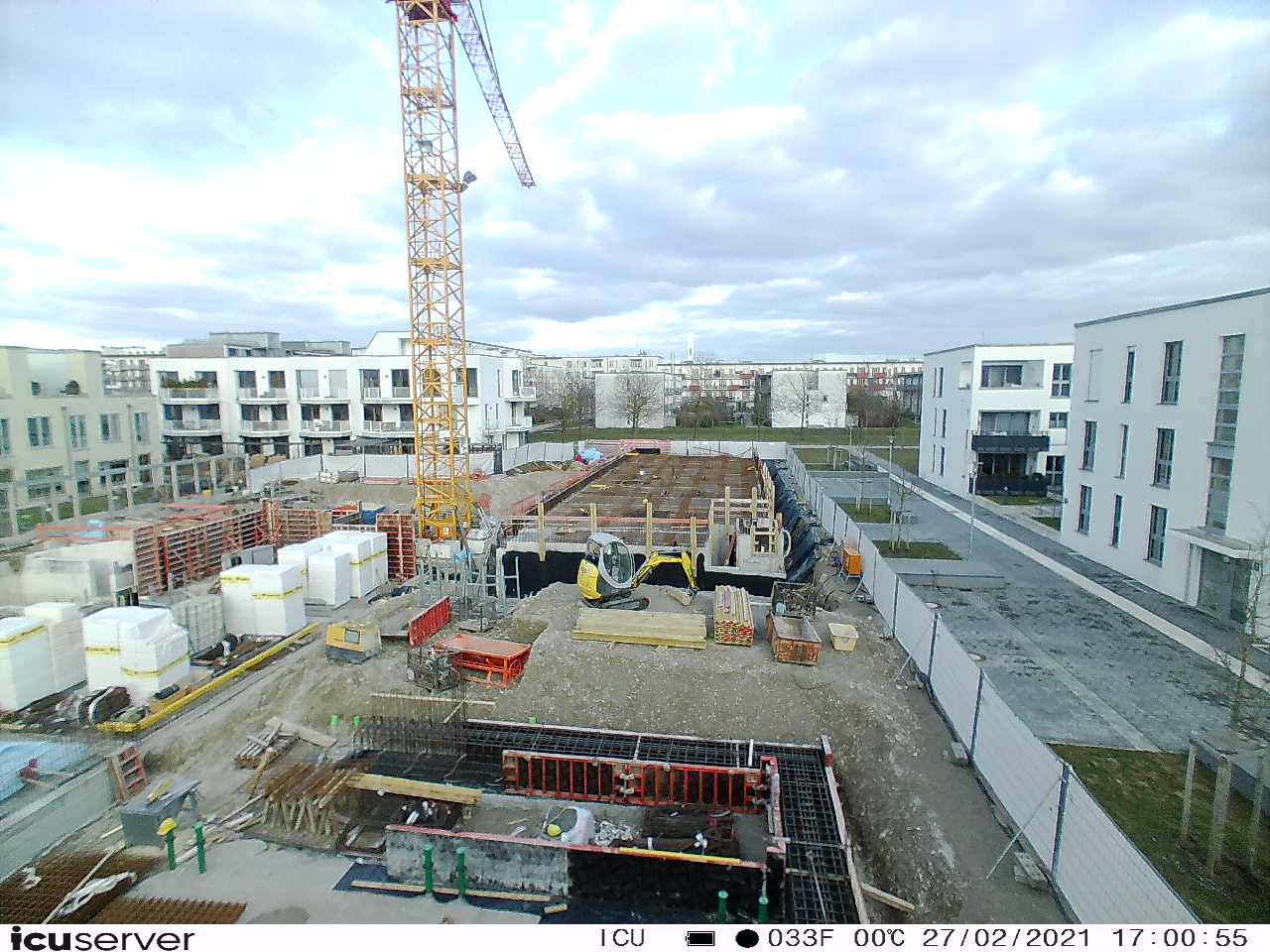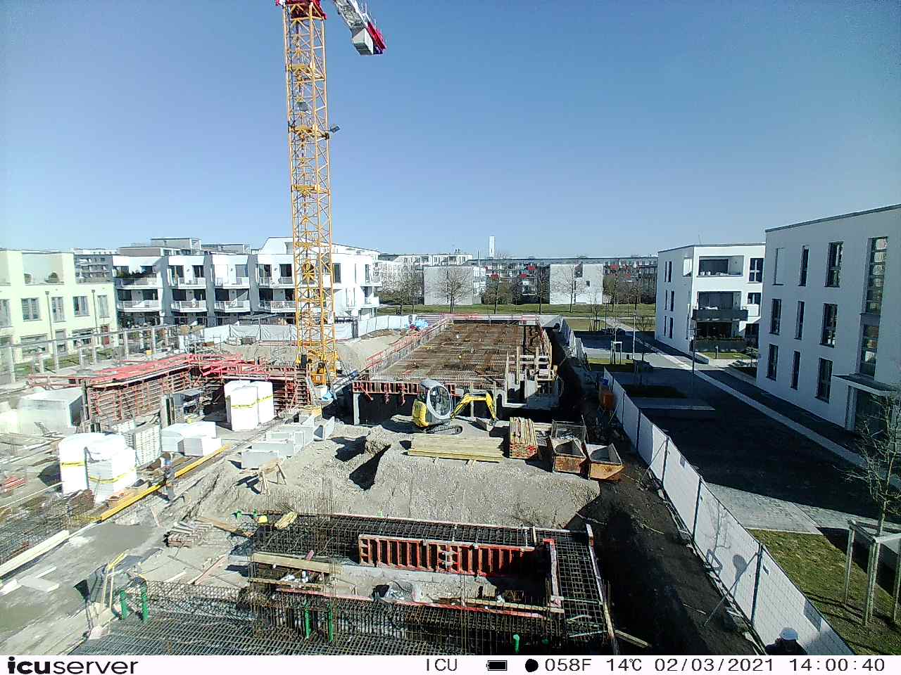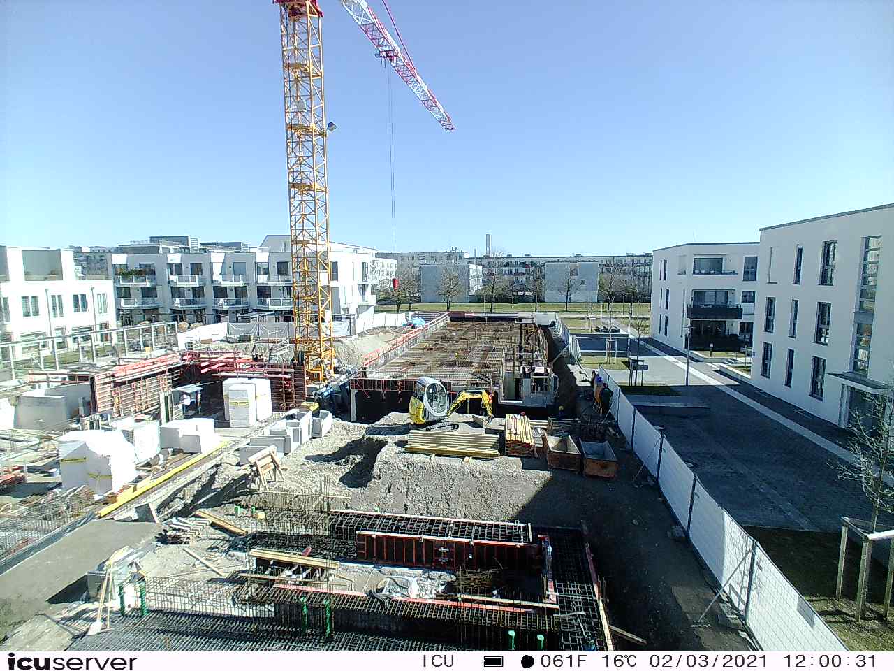 Die Kamera steht am westlichen Ende der Baustelle. Sie blickt nach Osten. Bilder: 26. Februar - 13. August 2021.