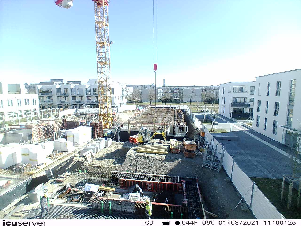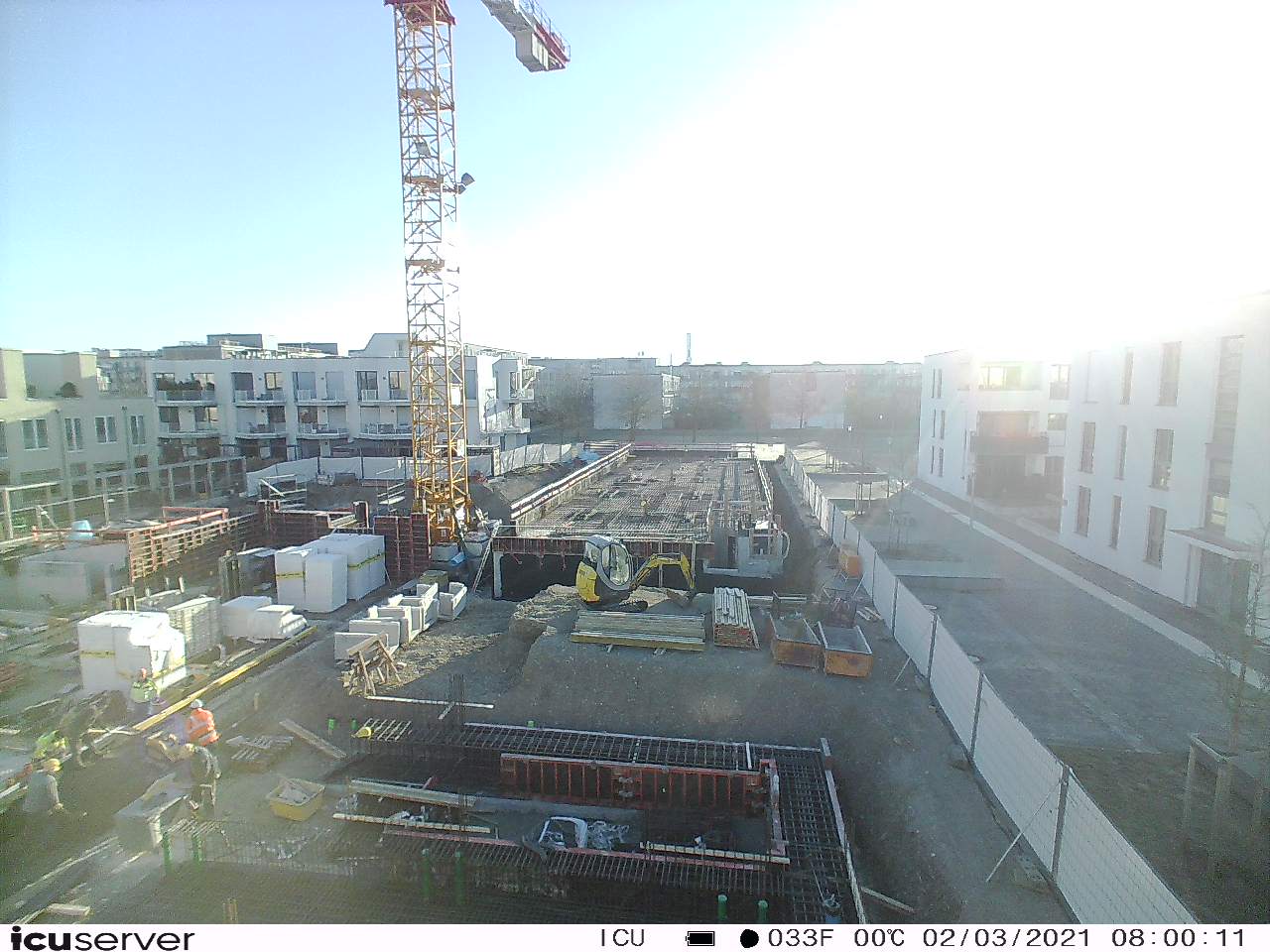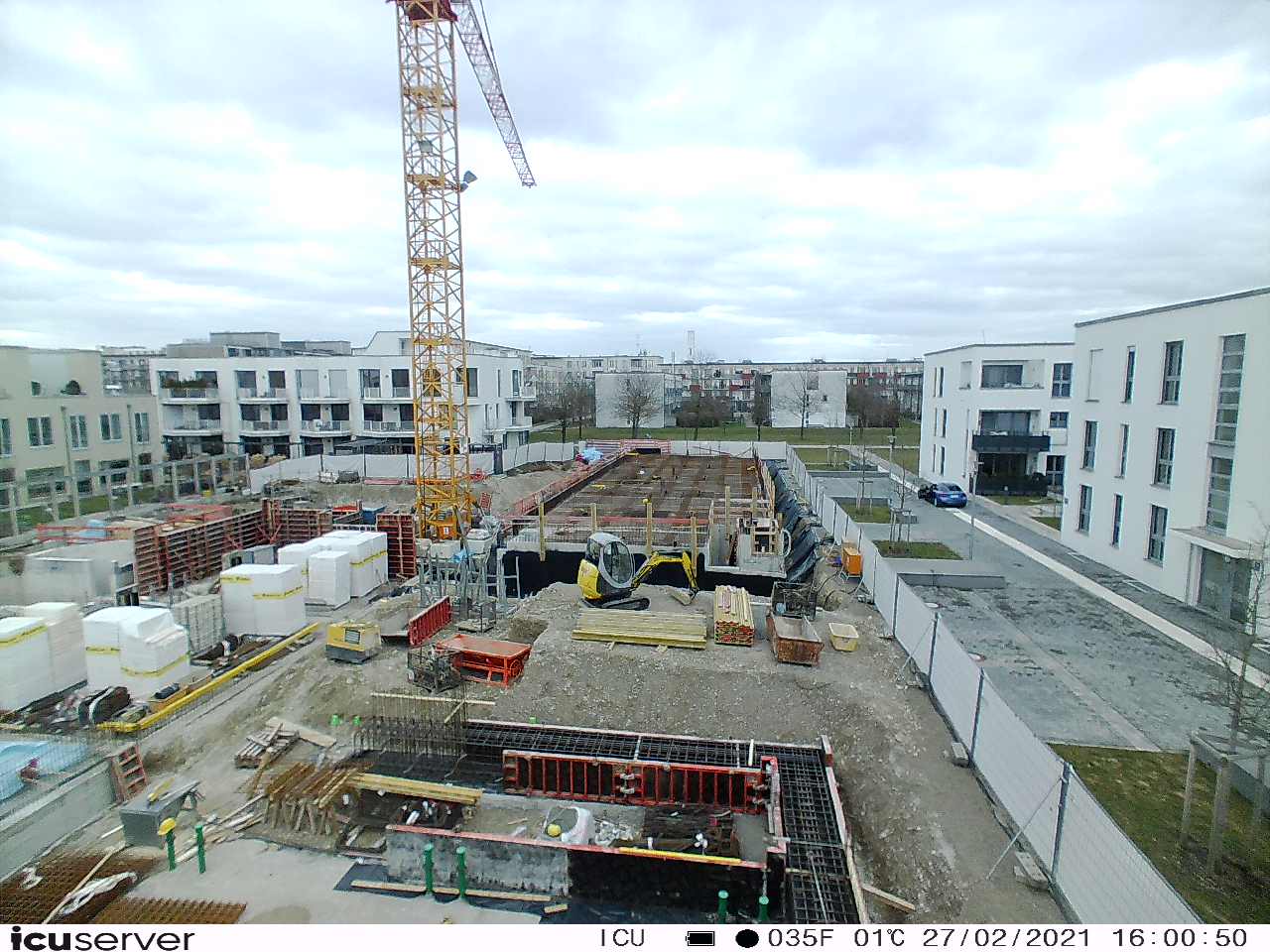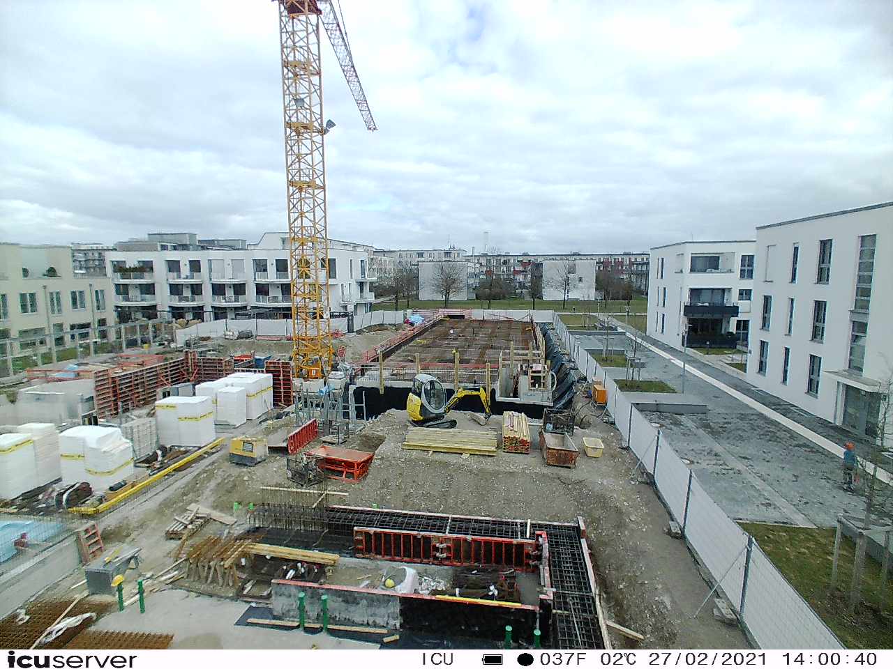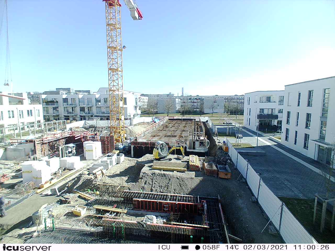 Die Kamera steht am westlichen Ende der Baustelle. Sie blickt nach Osten. Bilder: 26. Februar - 13. August 2021.