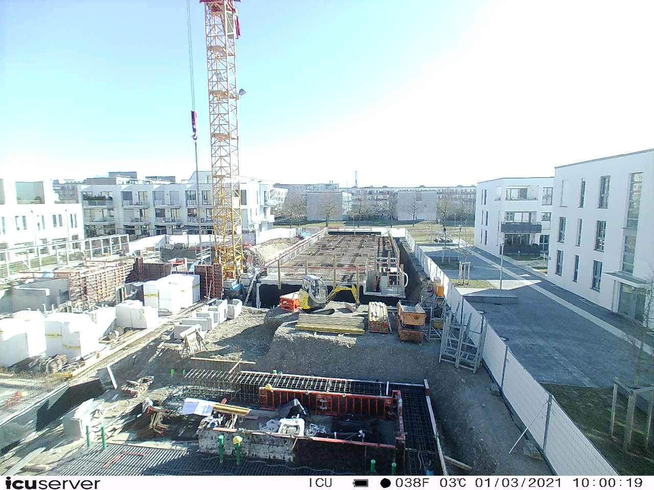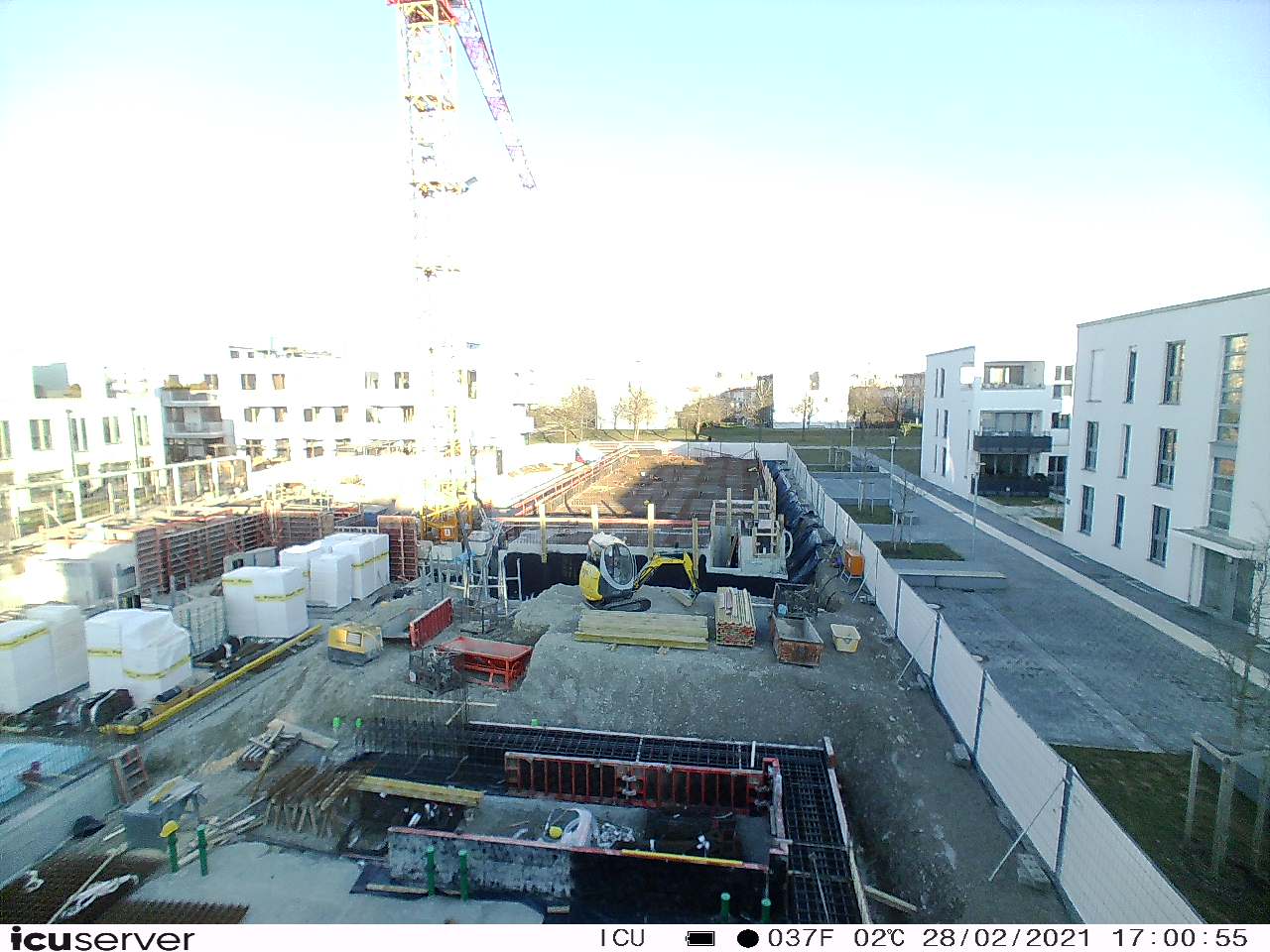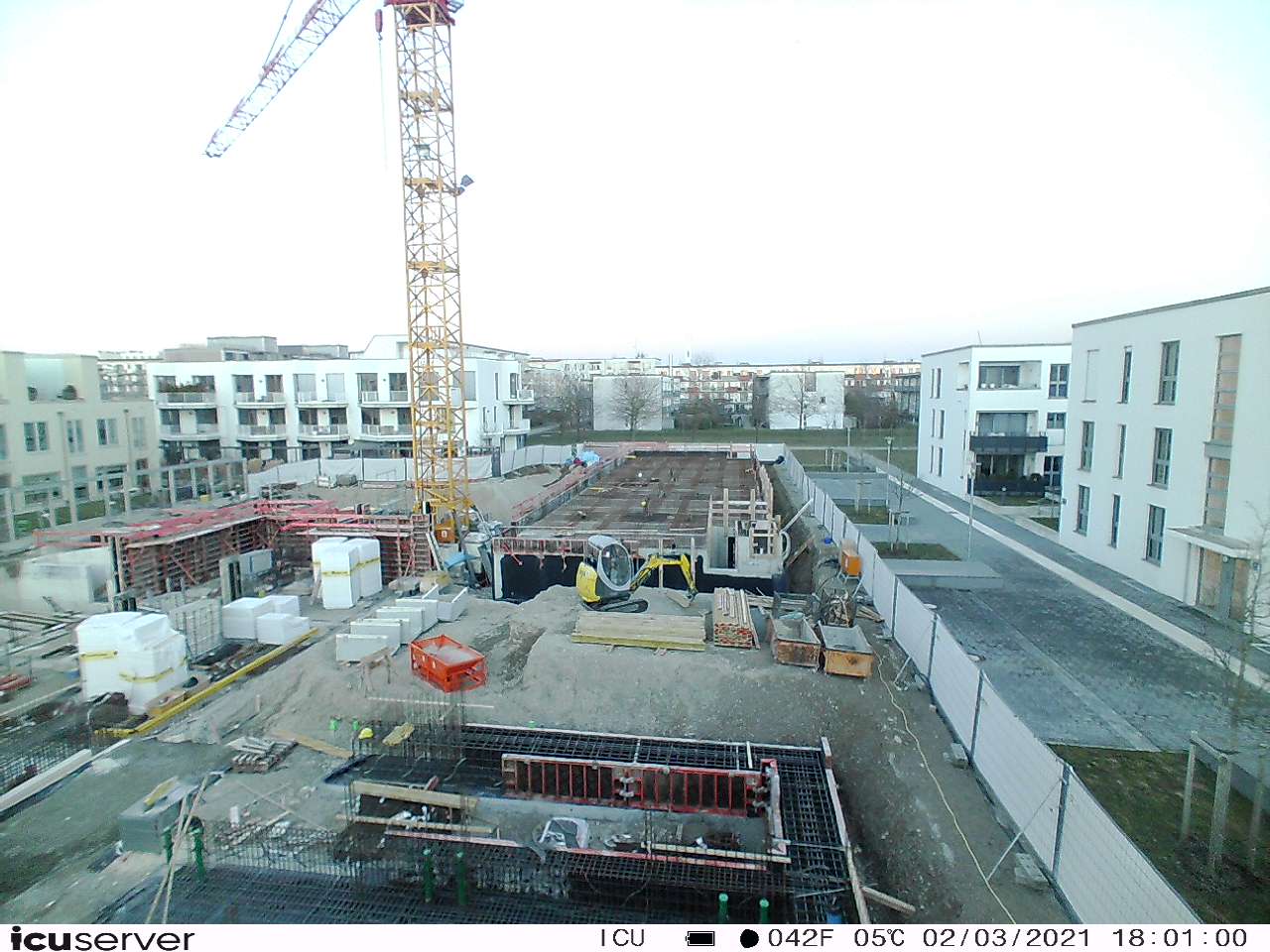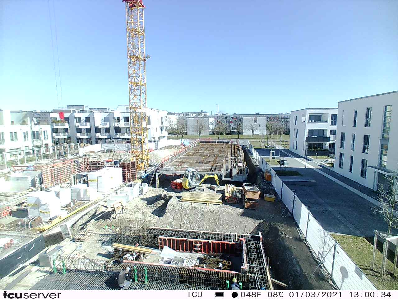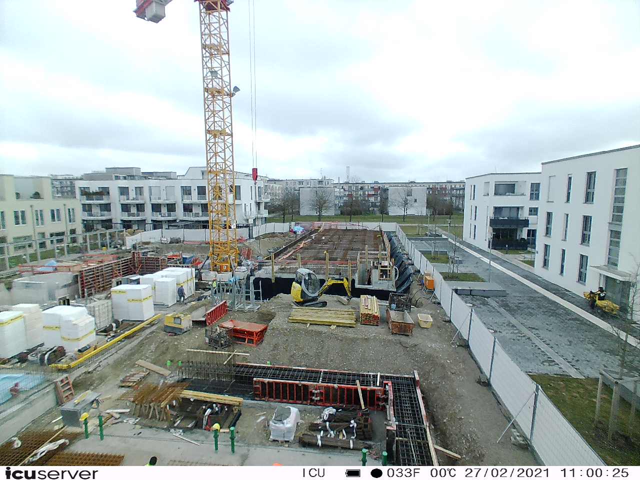 Die Kamera steht am westlichen Ende der Baustelle. Sie blickt nach Osten. Bilder: 26. Februar - 13. August 2021.