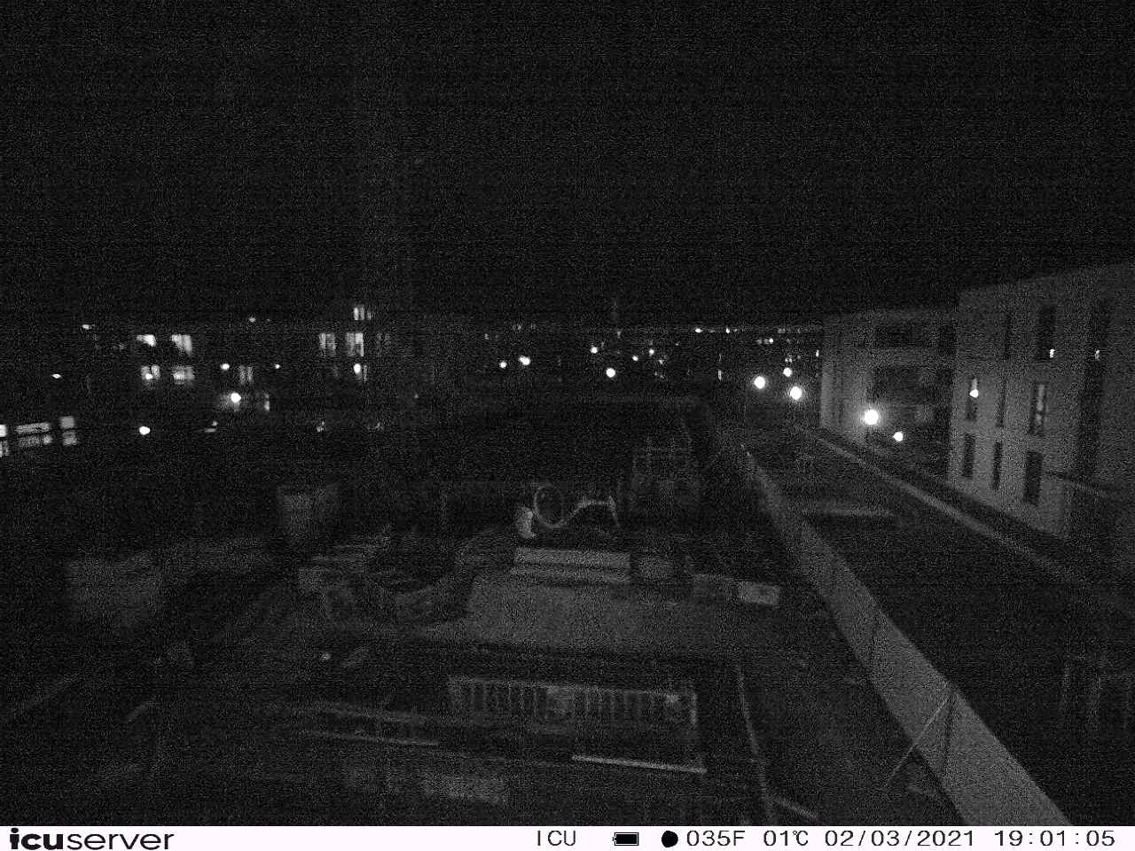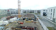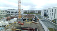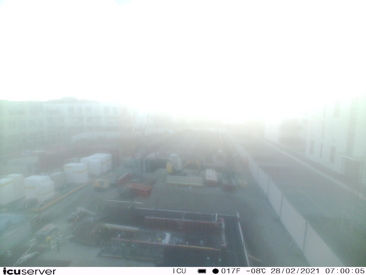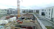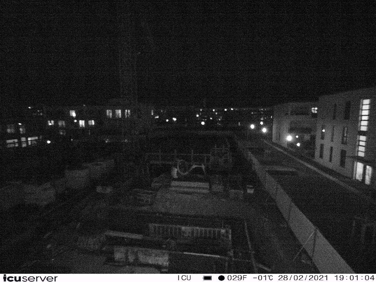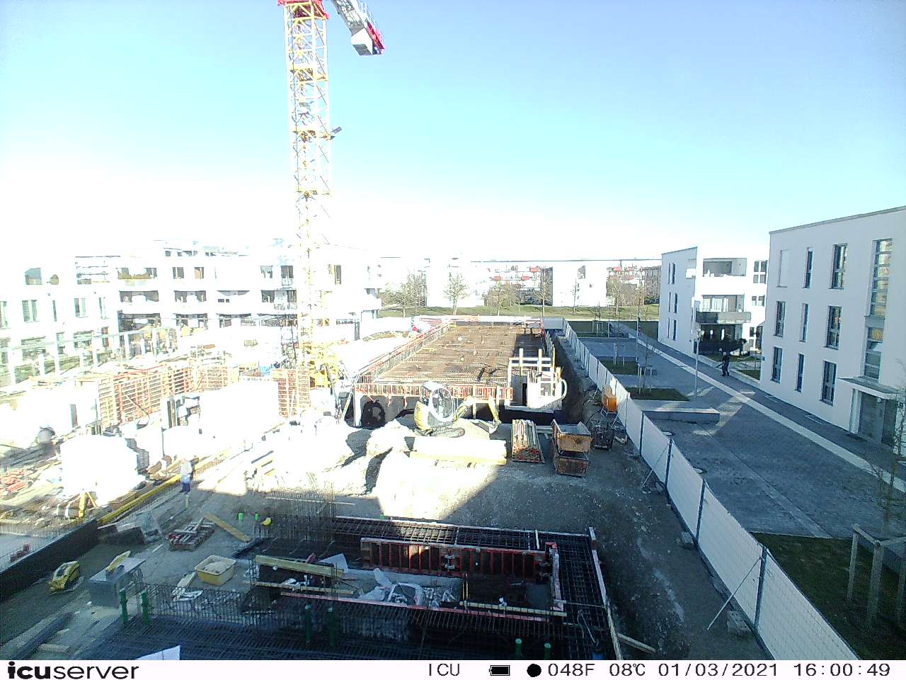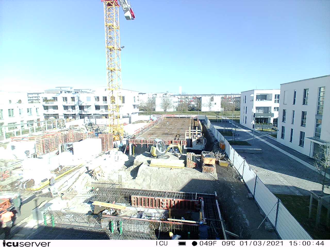 Die Kamera steht am westlichen Ende der Baustelle. Sie blickt nach Osten. Bilder: 26. Februar - 13. August 2021.