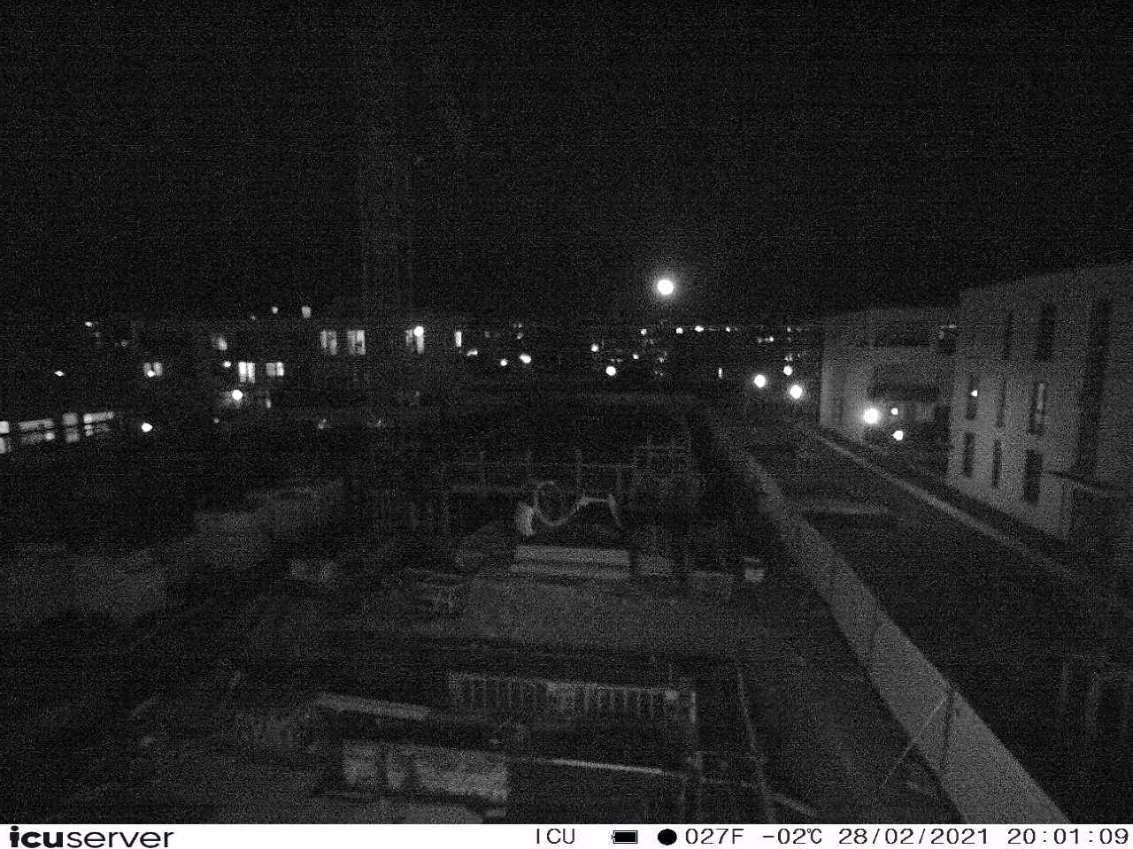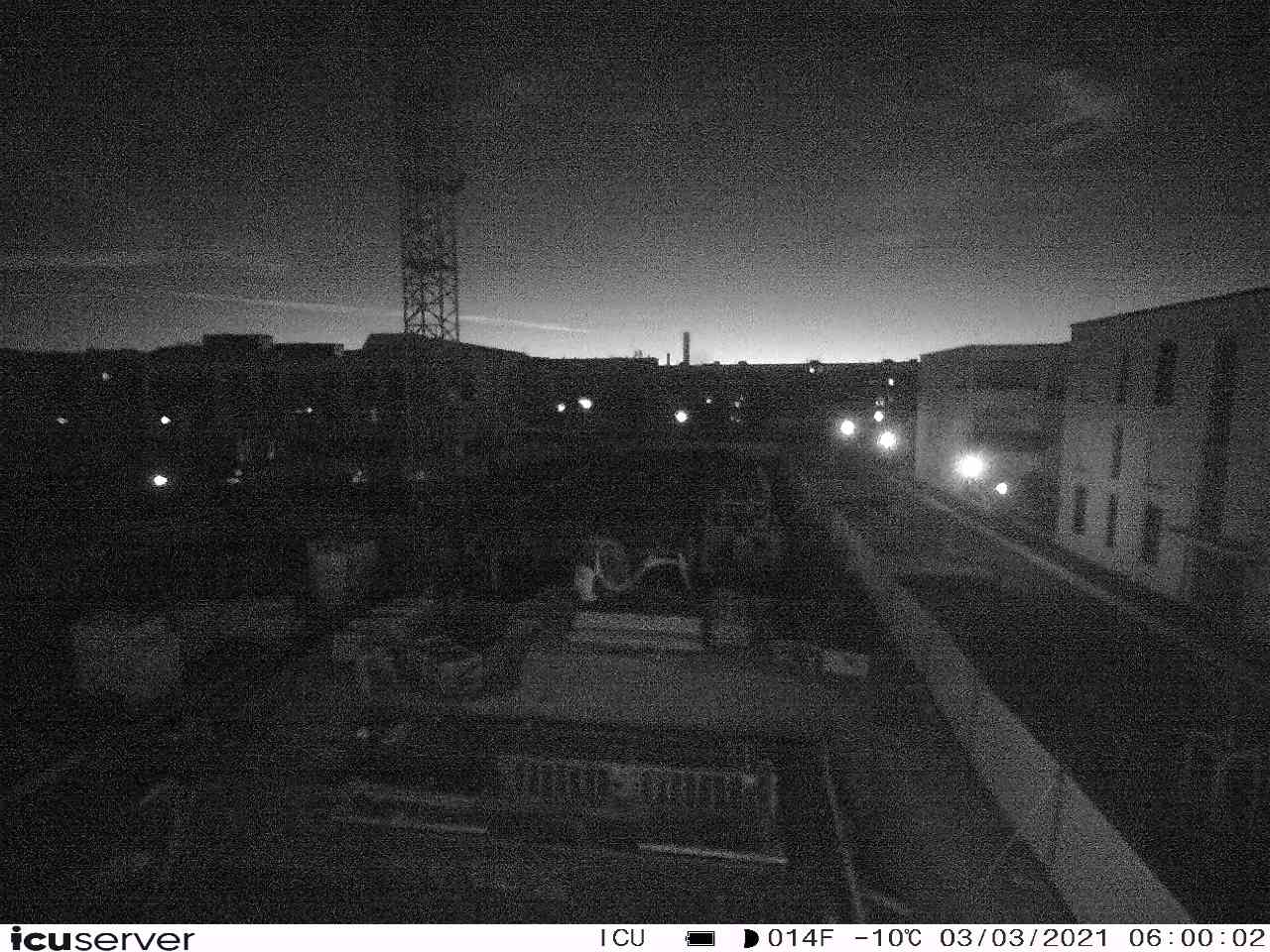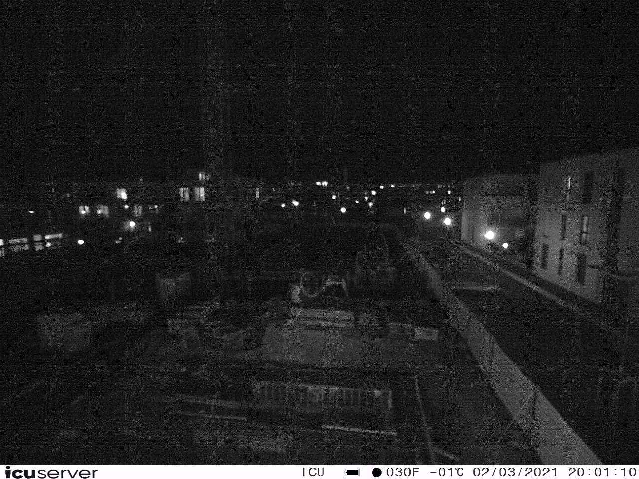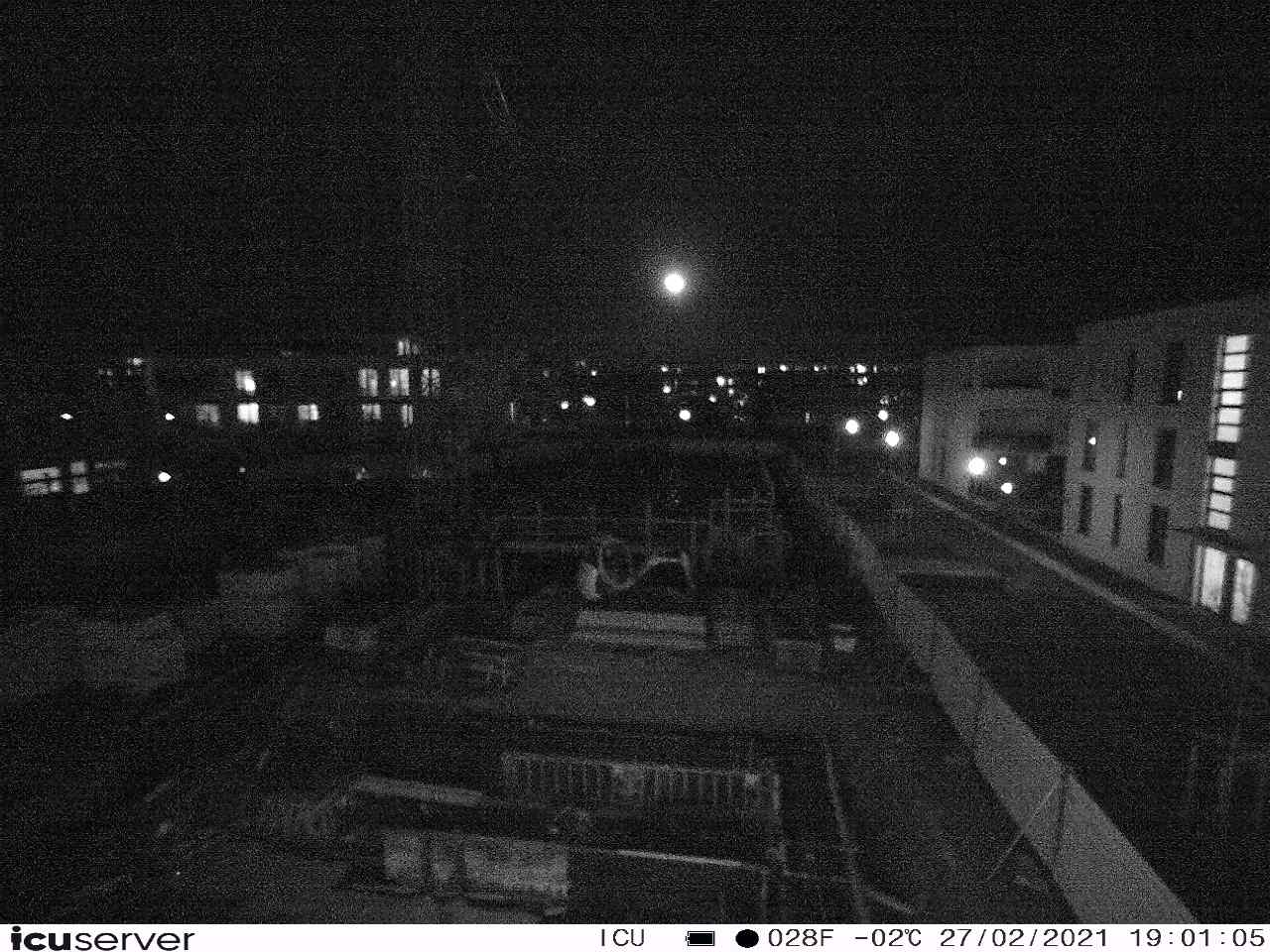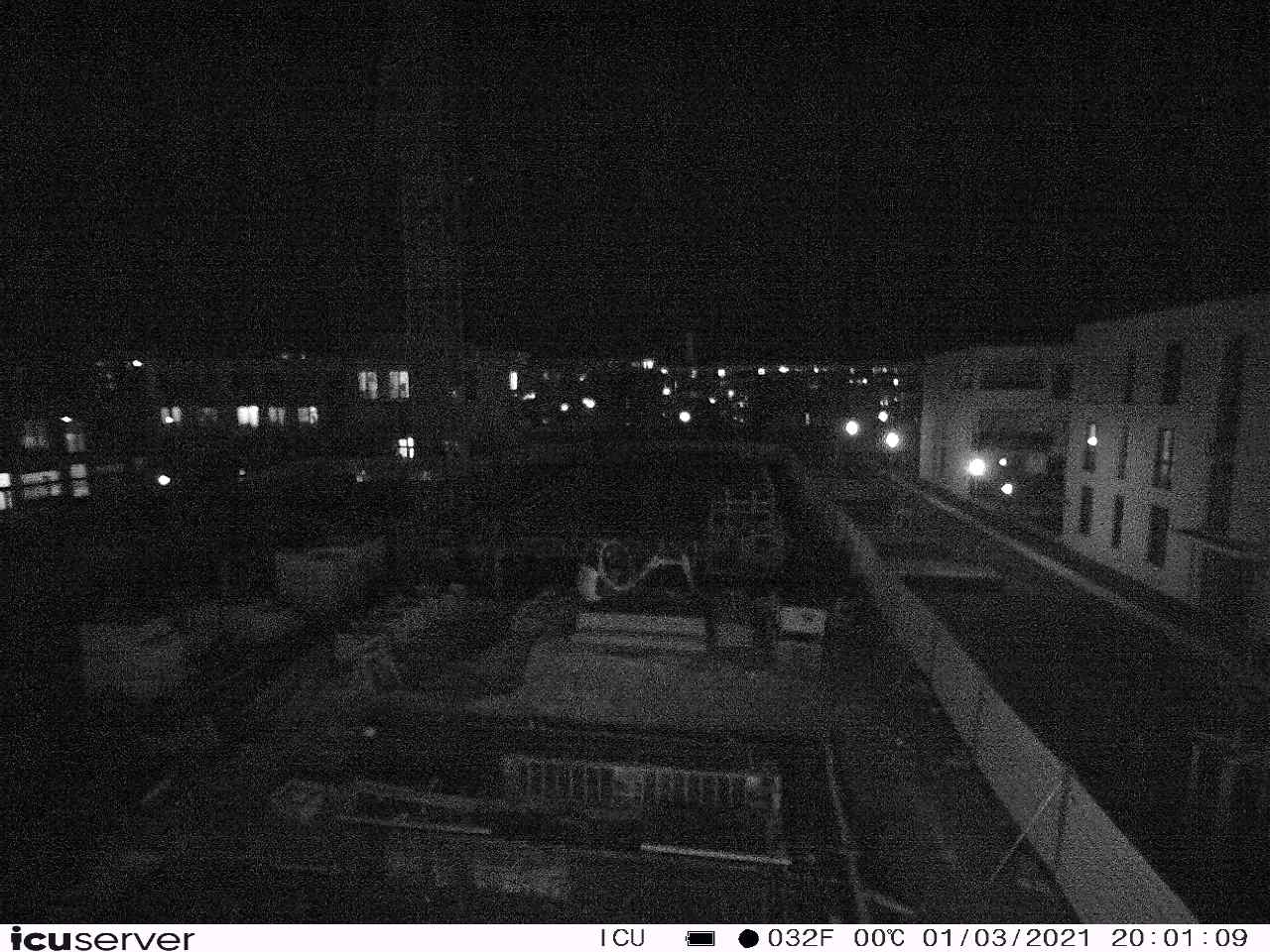 Die Kamera steht am westlichen Ende der Baustelle. Sie blickt nach Osten. Bilder: 26. Februar - 13. August 2021.