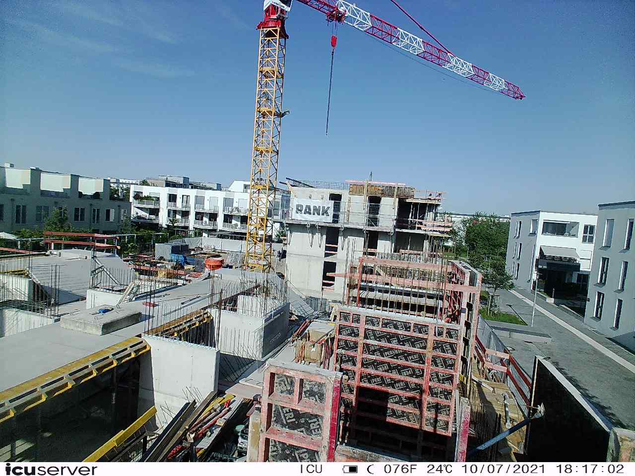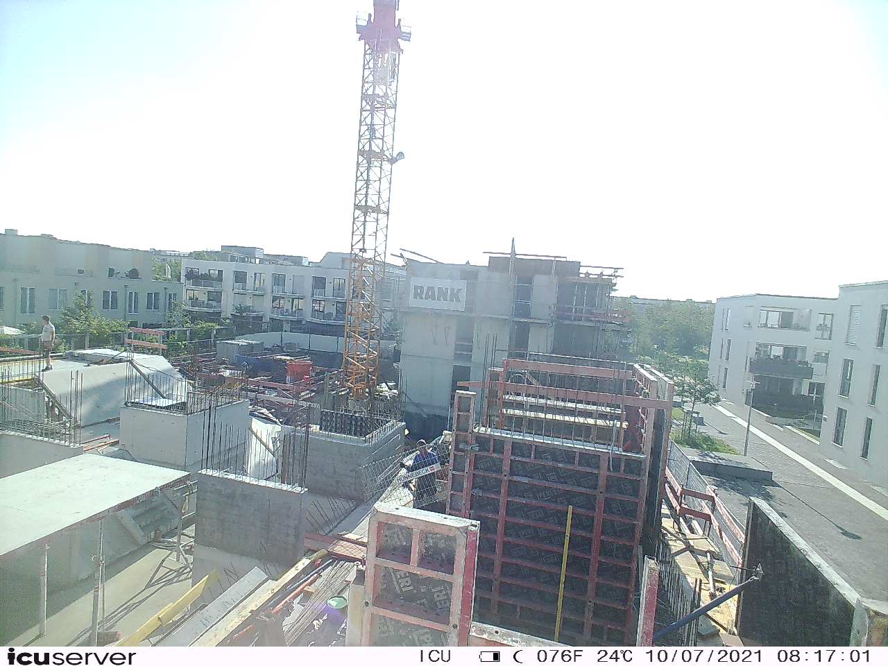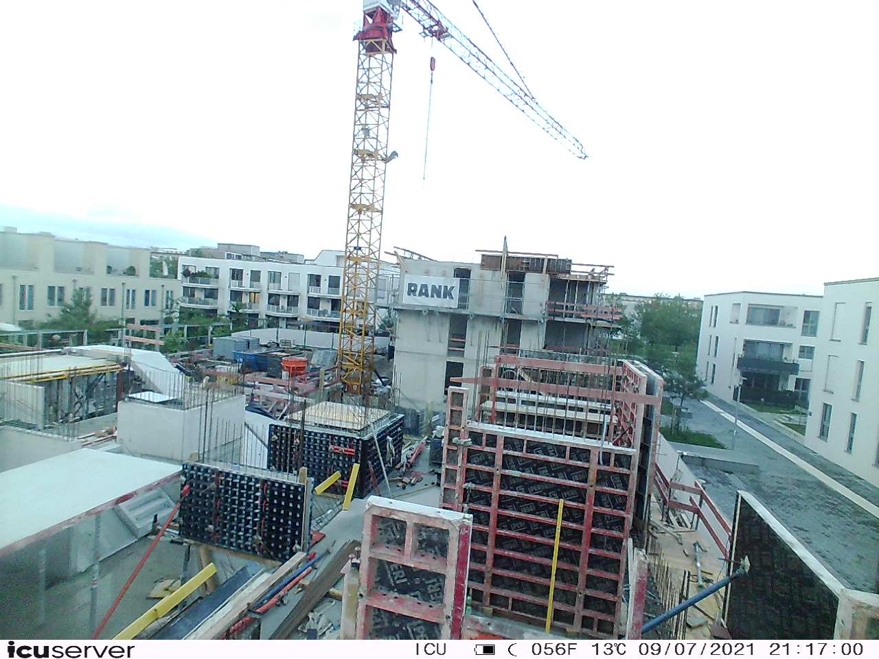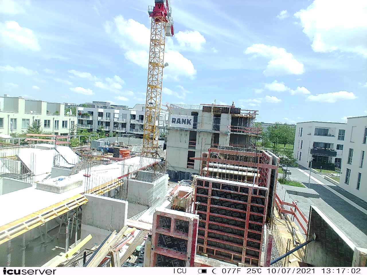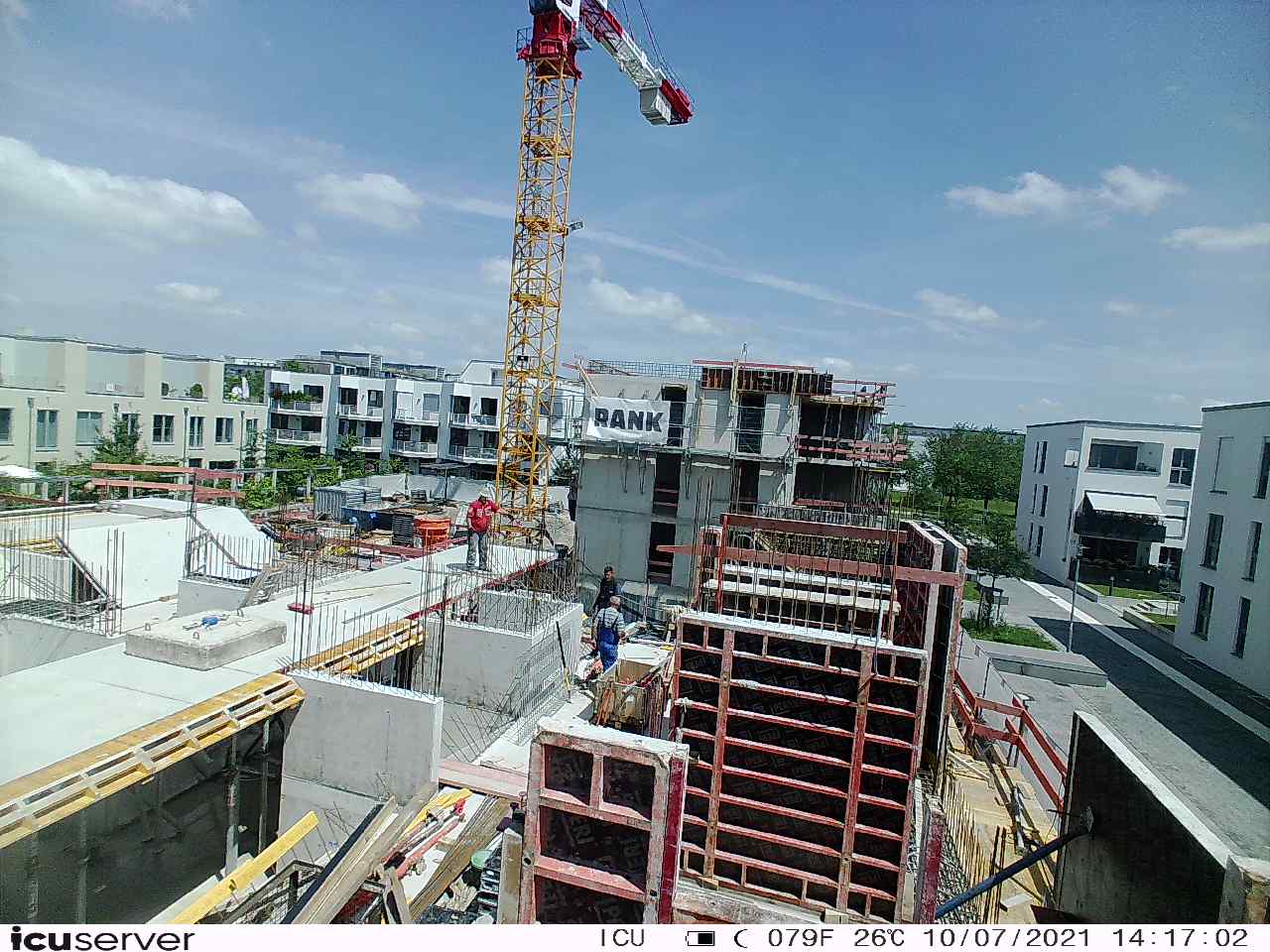 Die Kamera steht am westlichen Ende der Baustelle. Sie blickt nach Osten. Bilder: 26. Februar - 13. August 2021.