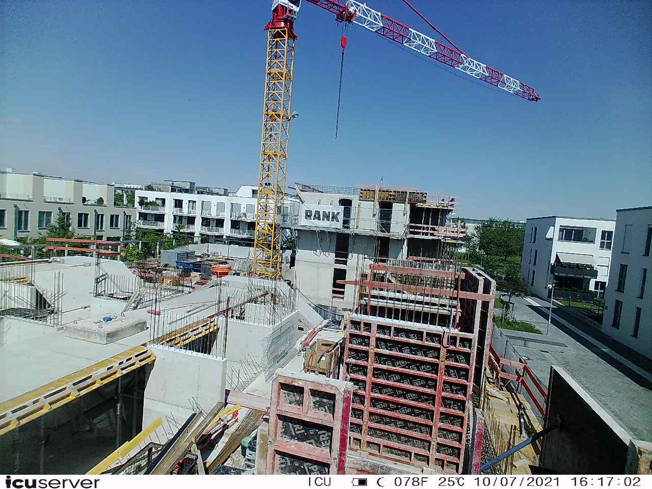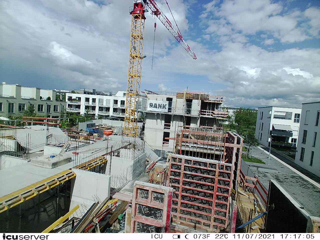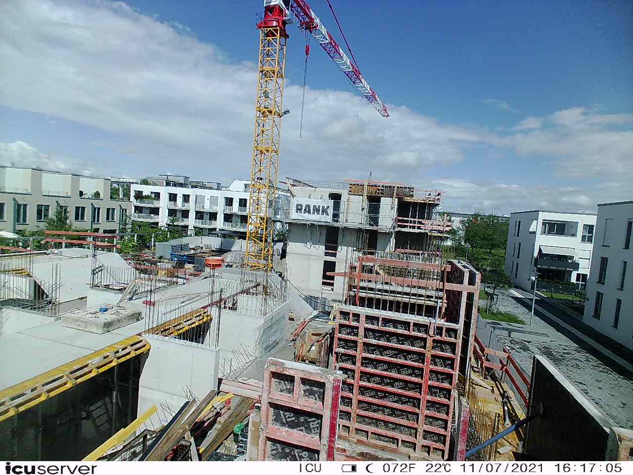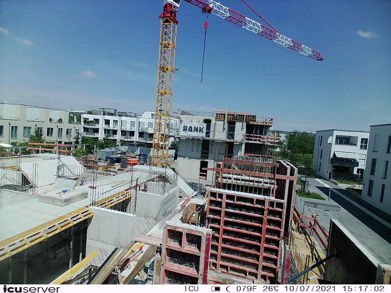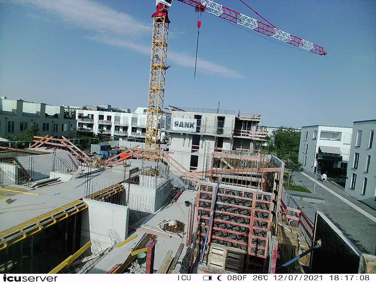 Die Kamera steht am westlichen Ende der Baustelle. Sie blickt nach Osten. Bilder: 26. Februar - 13. August 2021.