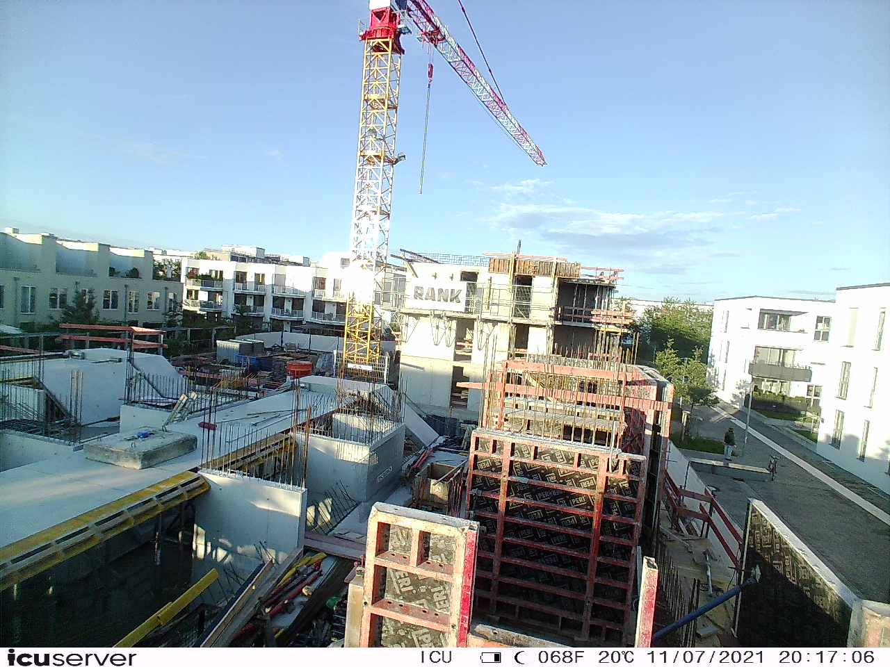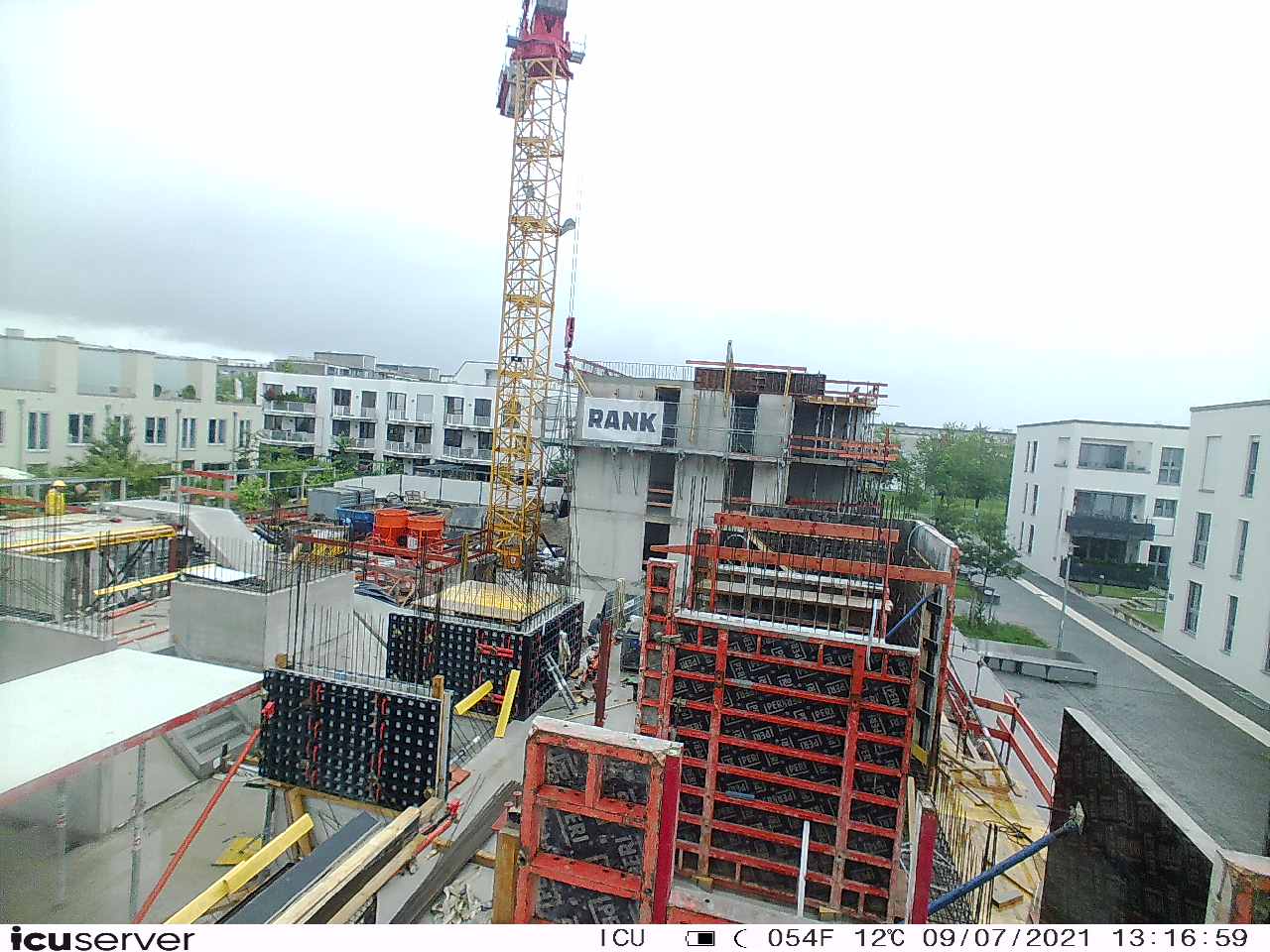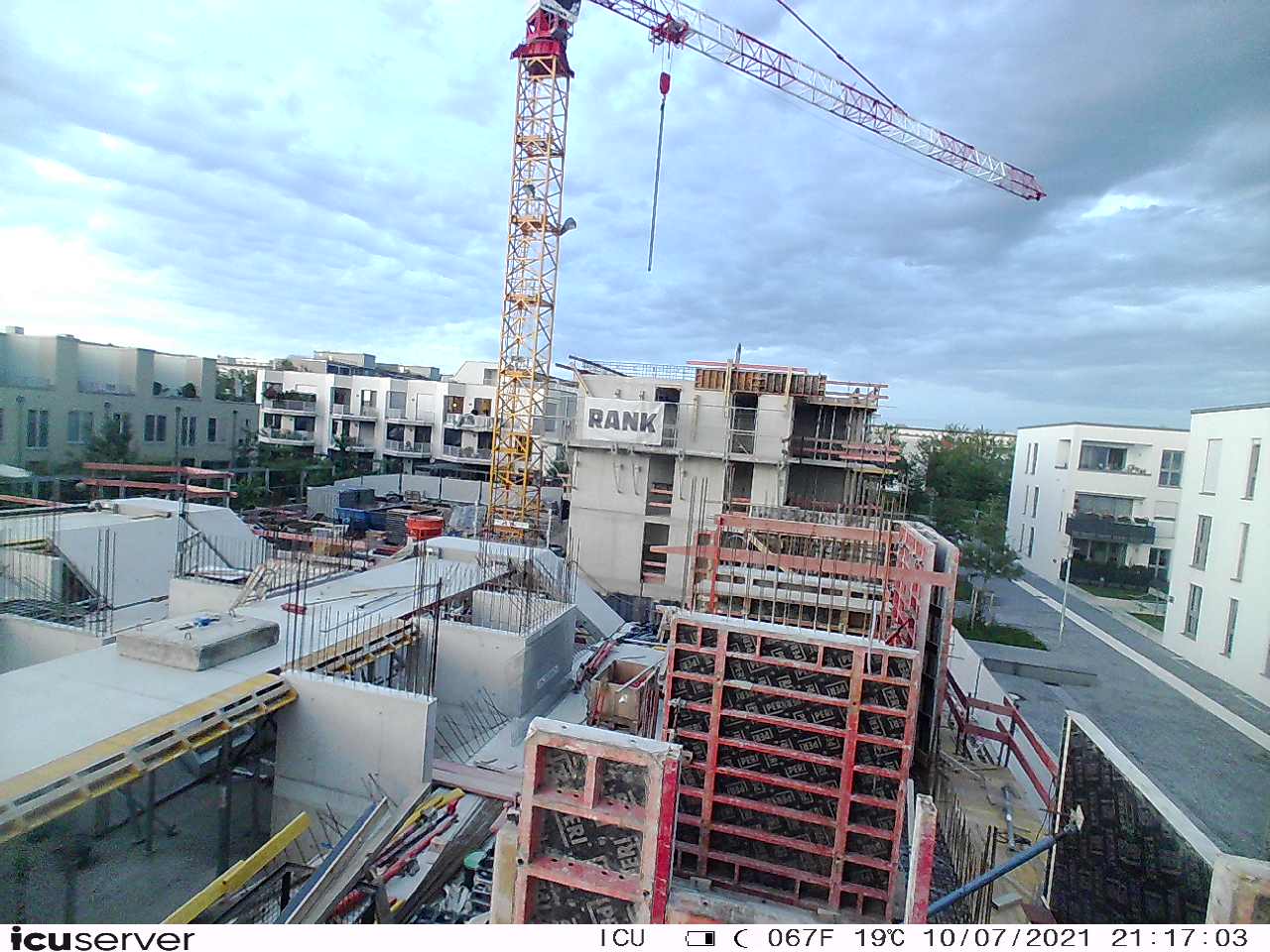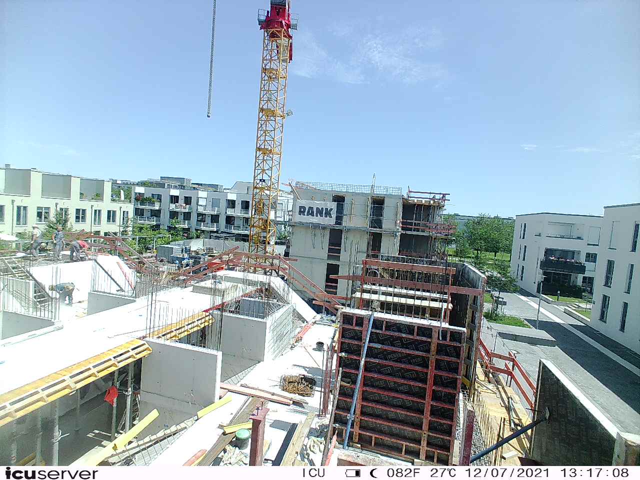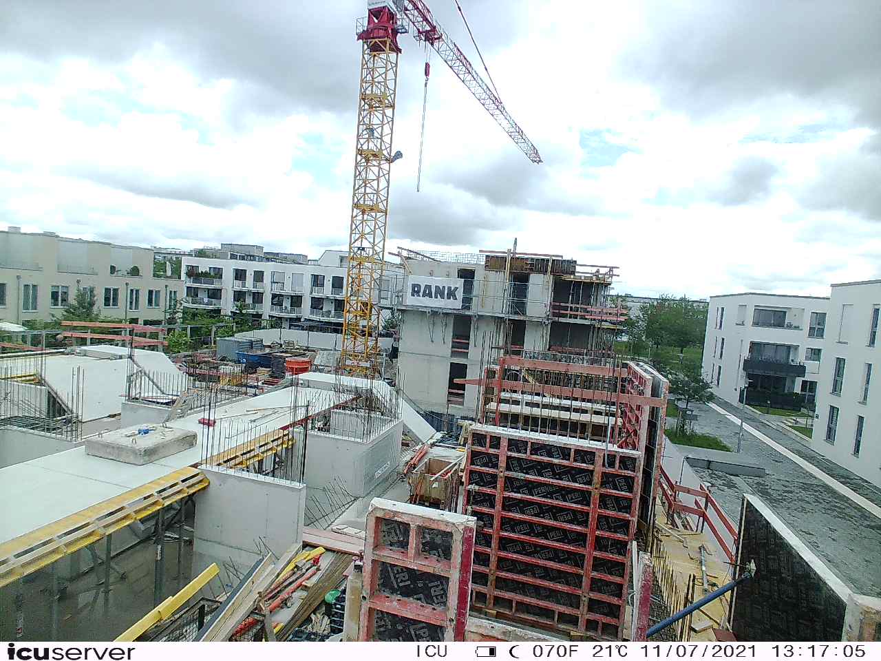 Die Kamera steht am westlichen Ende der Baustelle. Sie blickt nach Osten. Bilder: 26. Februar - 13. August 2021.