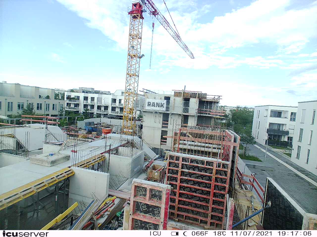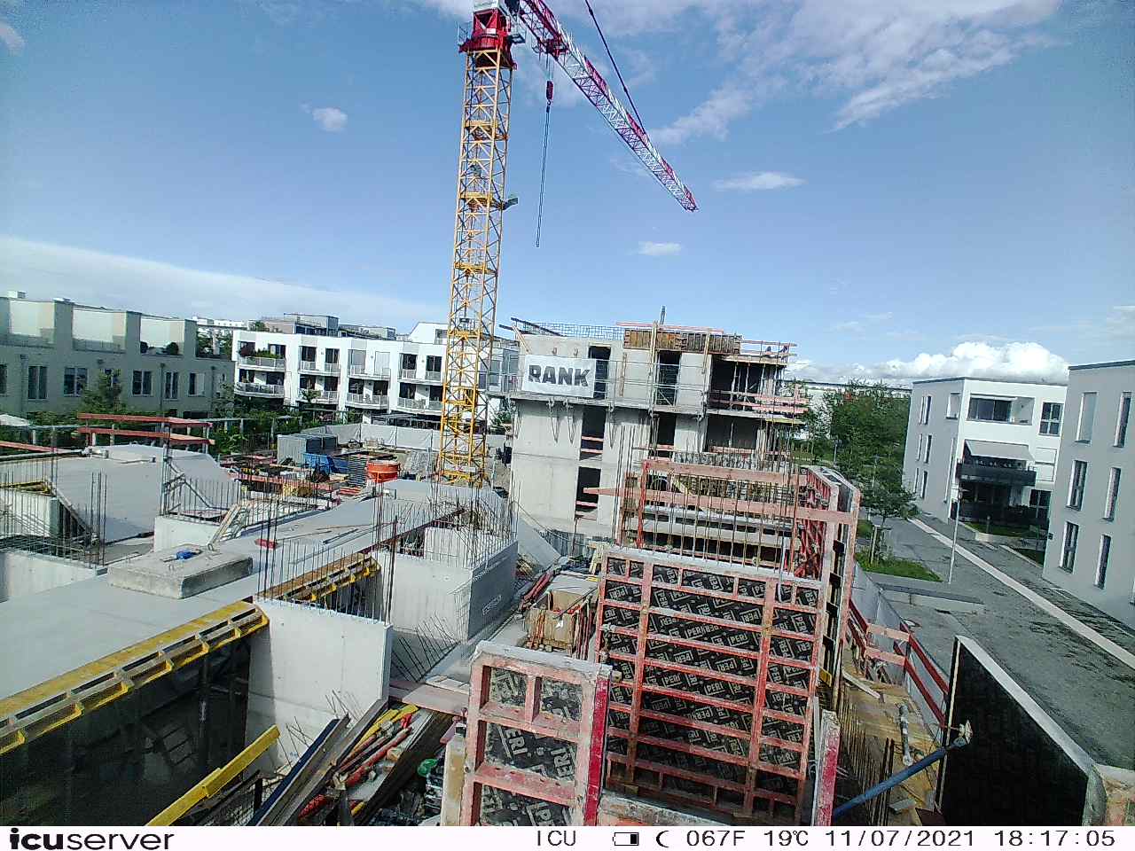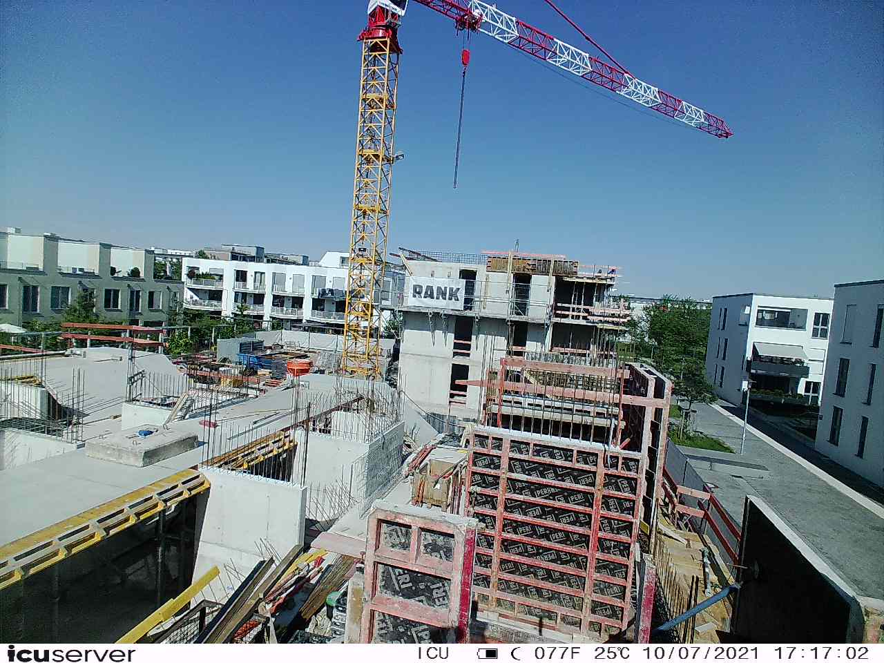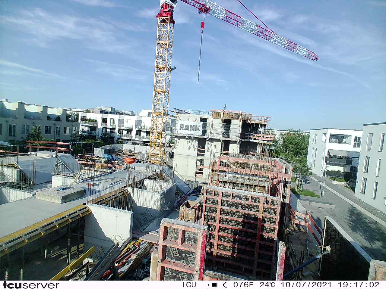 Die Kamera steht am westlichen Ende der Baustelle. Sie blickt nach Osten. Bilder: 26. Februar - 13. August 2021.
