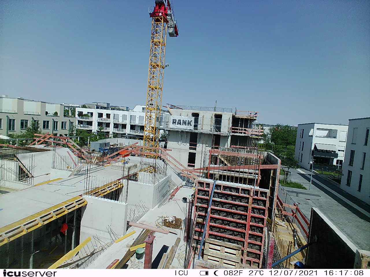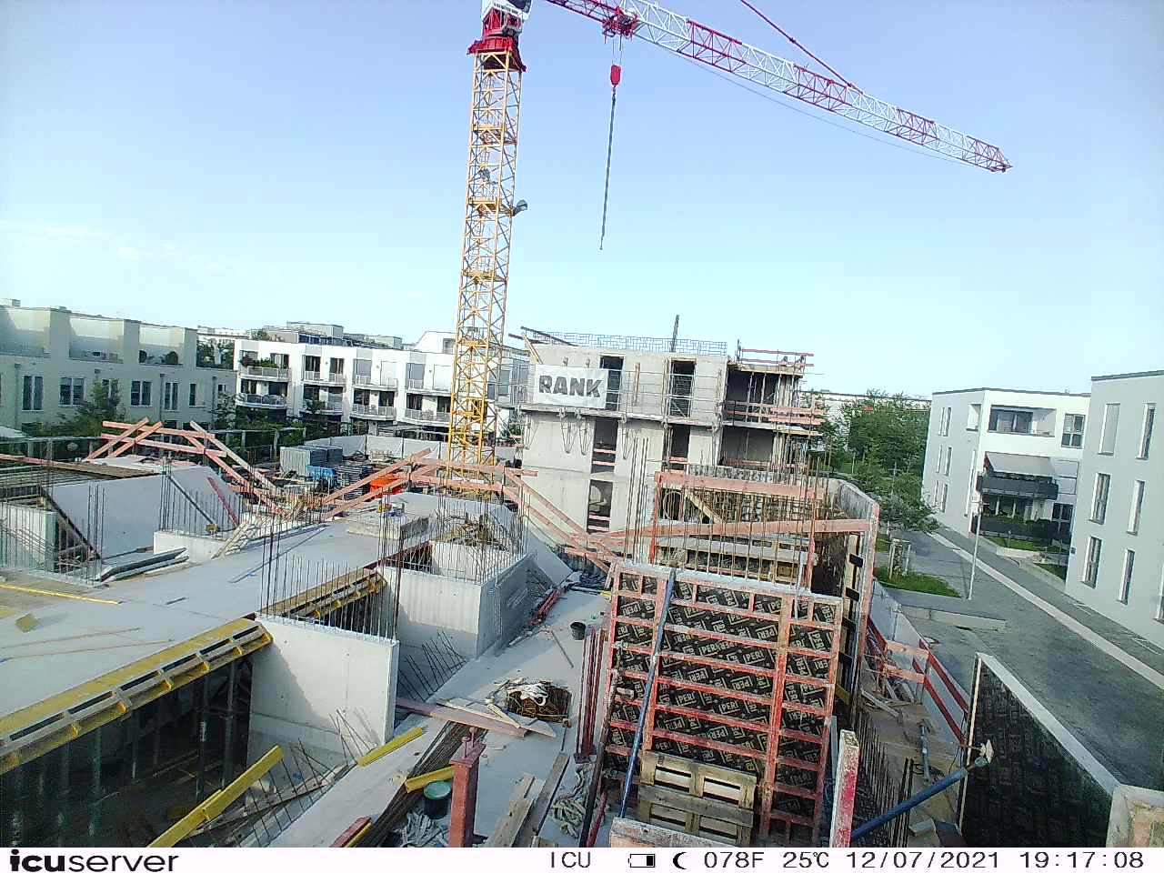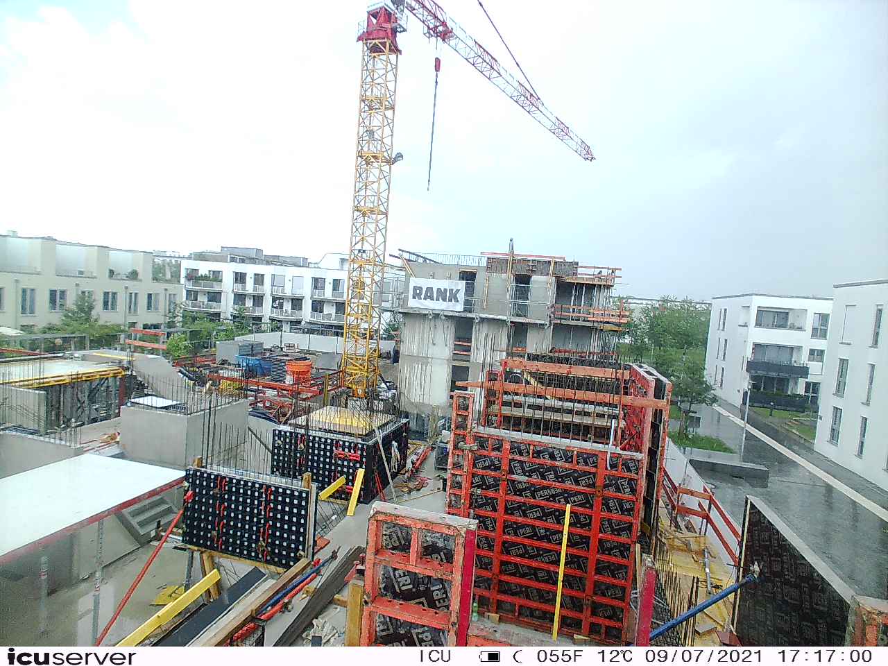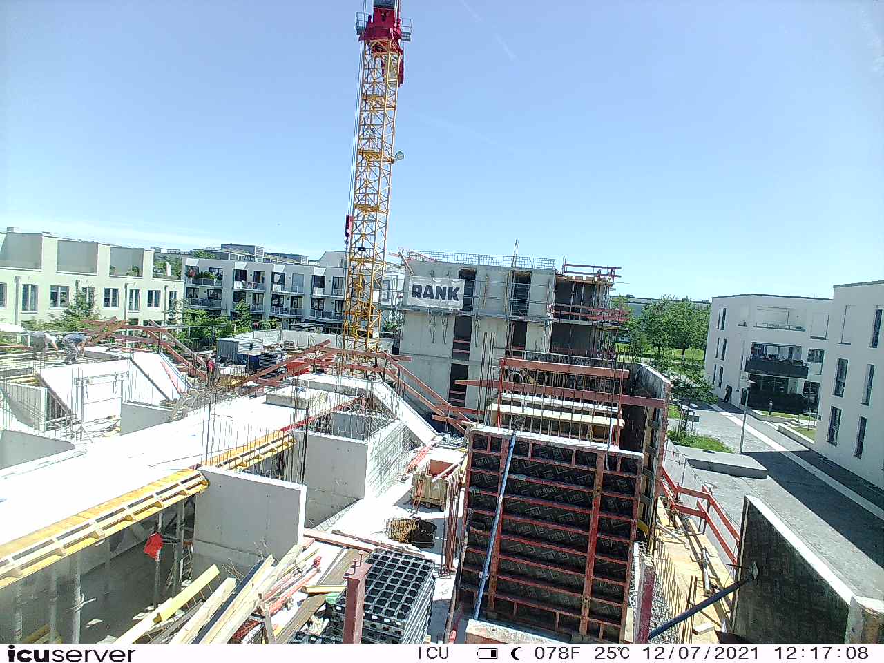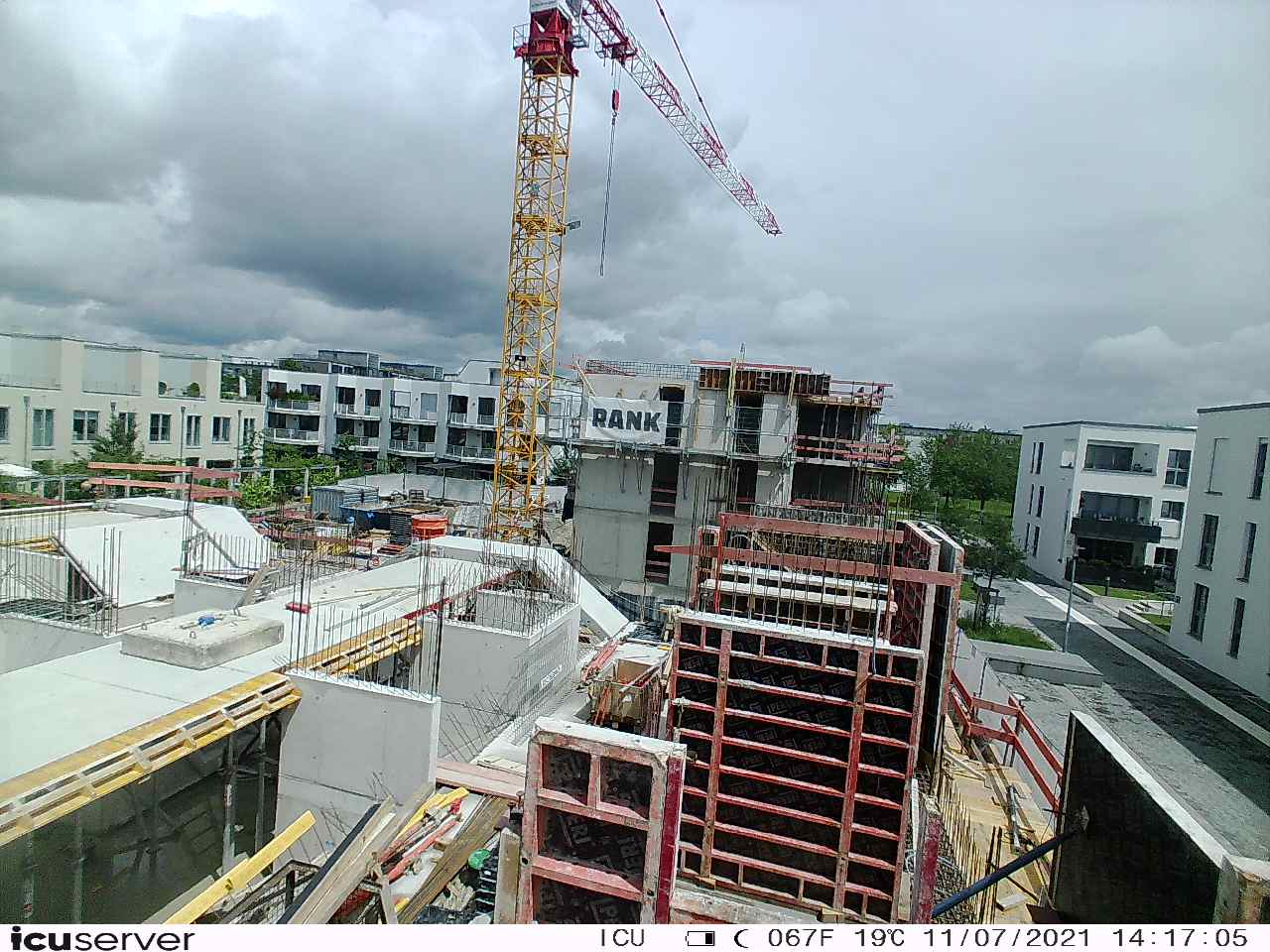 Die Kamera steht am westlichen Ende der Baustelle. Sie blickt nach Osten. Bilder: 26. Februar - 13. August 2021.