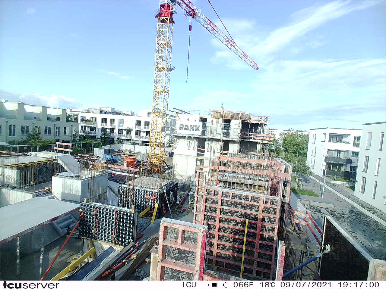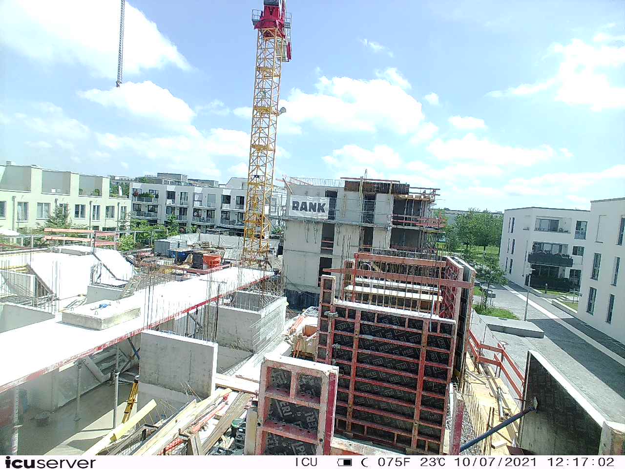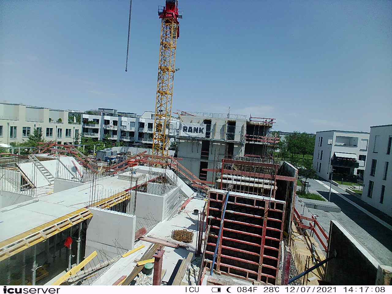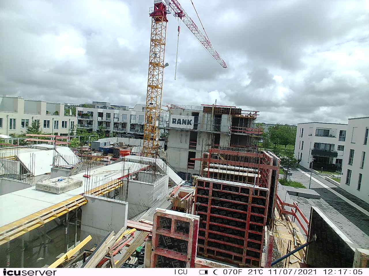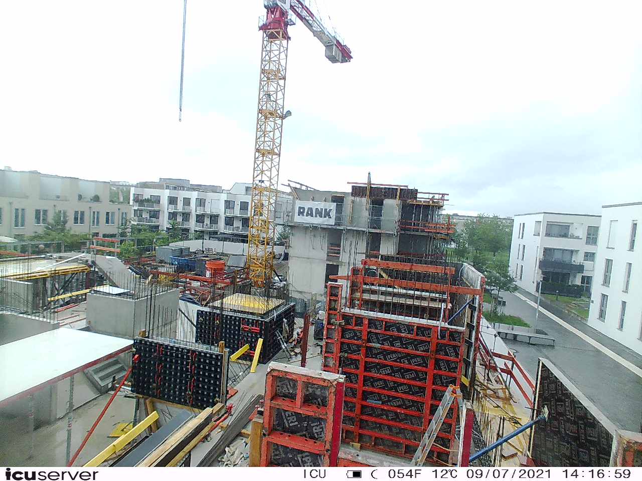 Die Kamera steht am westlichen Ende der Baustelle. Sie blickt nach Osten. Bilder: 26. Februar - 13. August 2021.