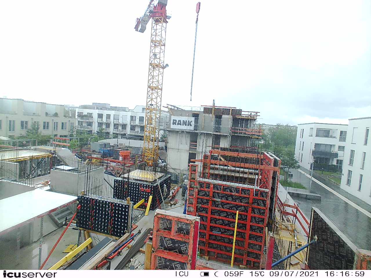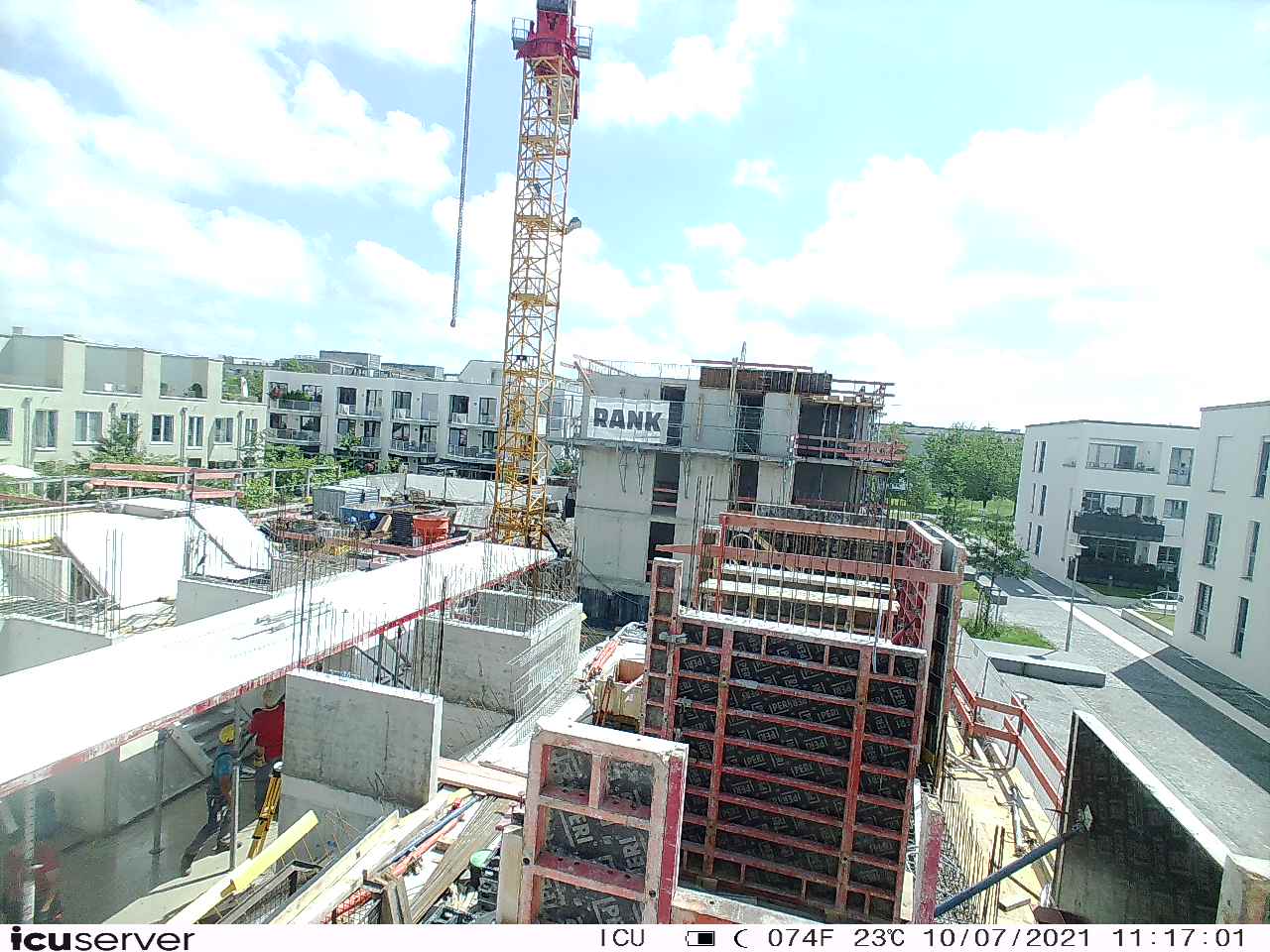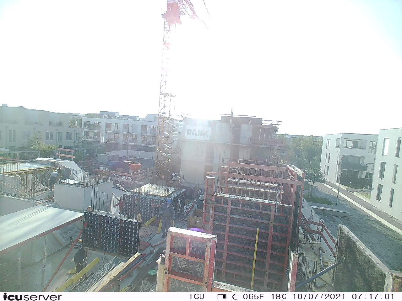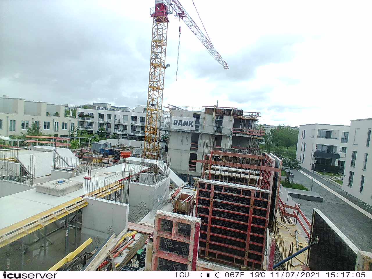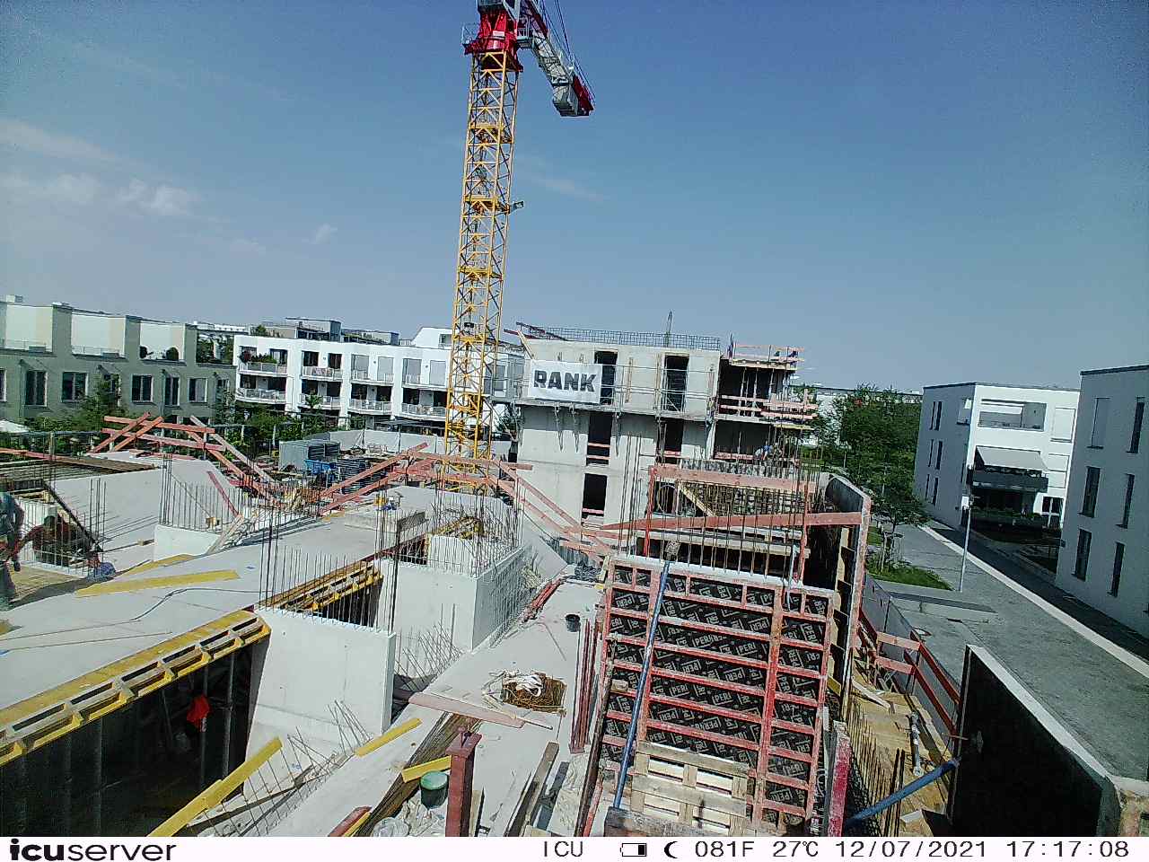 Die Kamera steht am westlichen Ende der Baustelle. Sie blickt nach Osten. Bilder: 26. Februar - 13. August 2021.