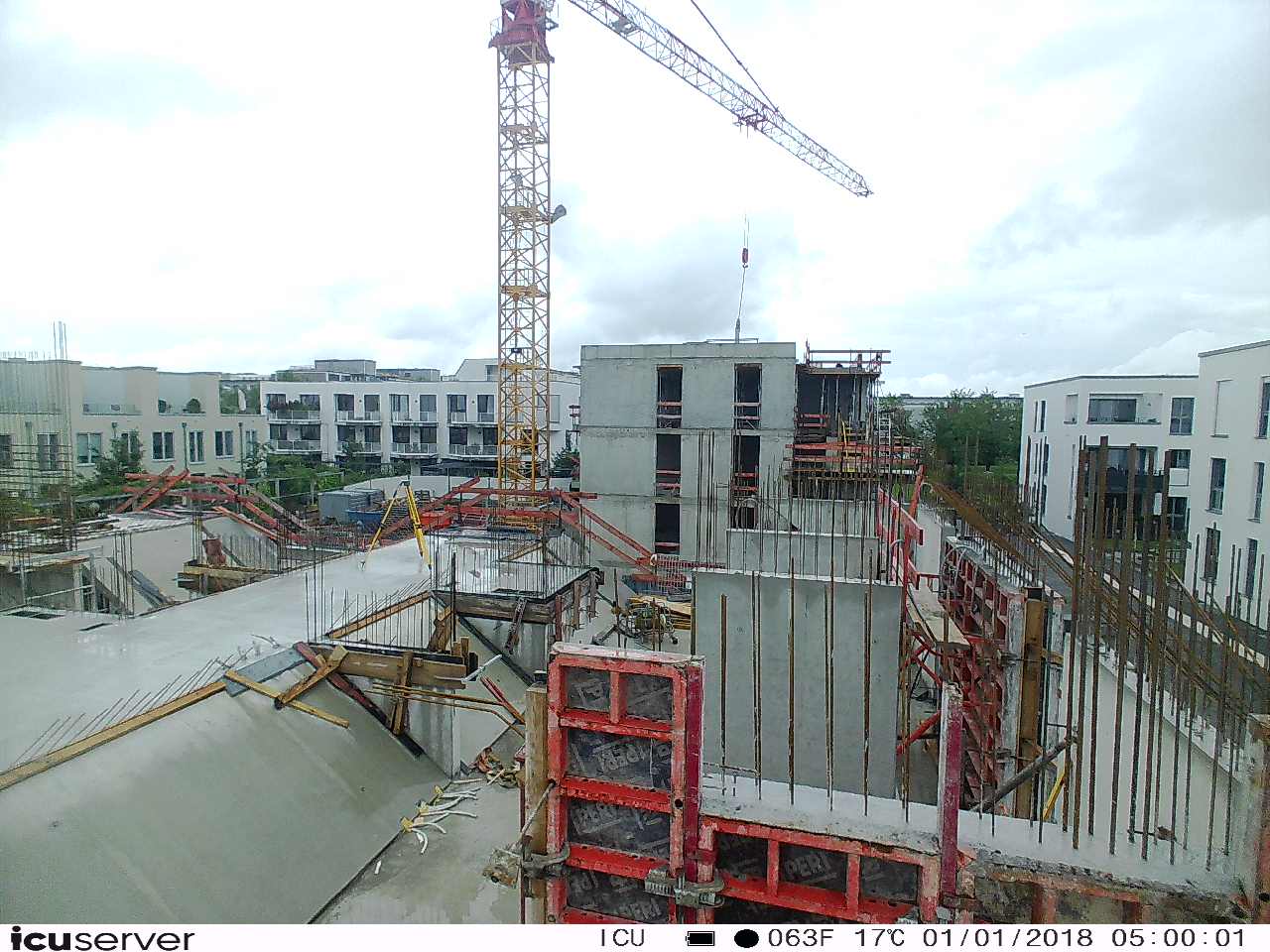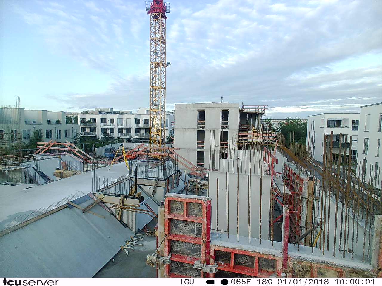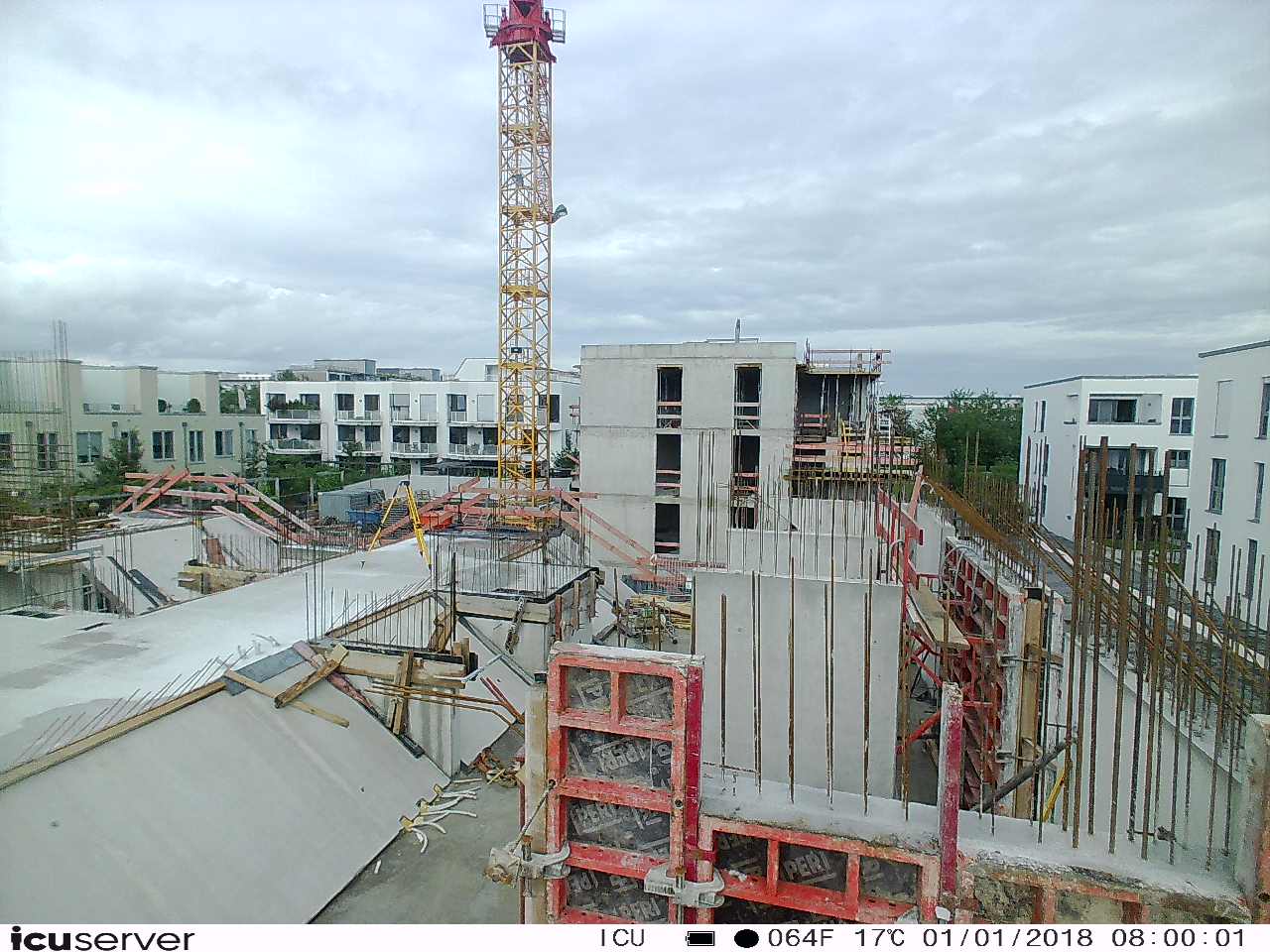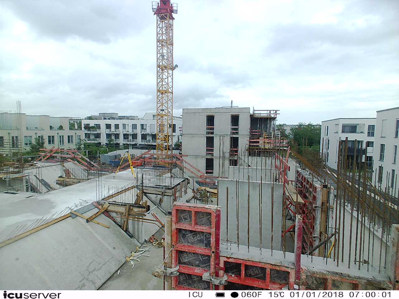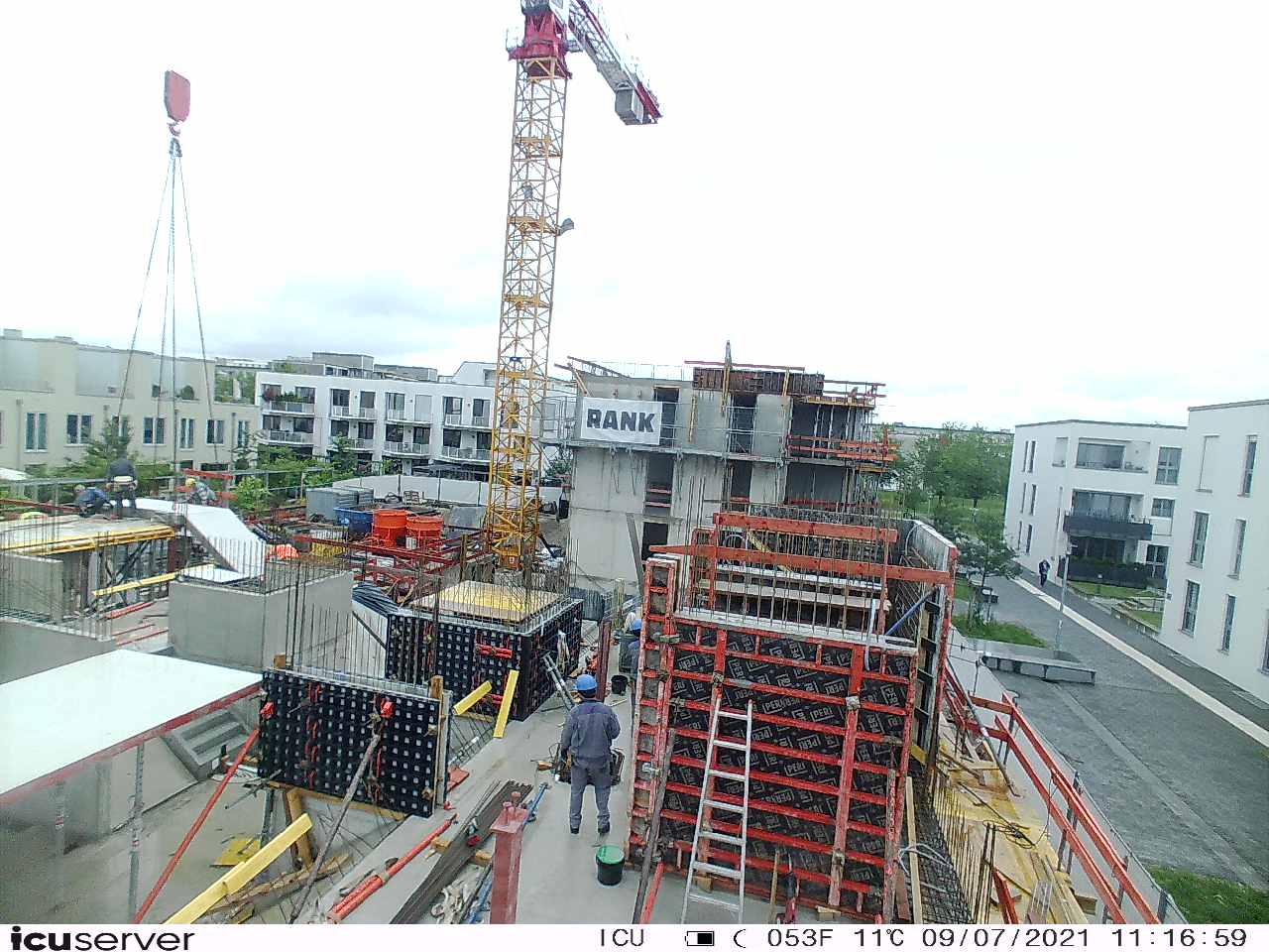 Die Kamera steht am westlichen Ende der Baustelle. Sie blickt nach Osten. Bilder: 26. Februar - 13. August 2021.
