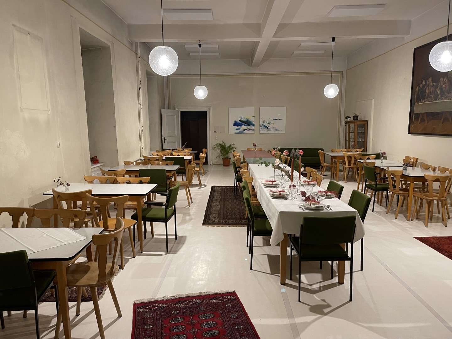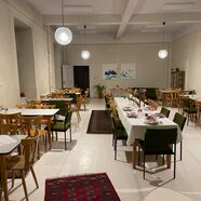 - Im 1. OG sind Gästezimmer und ein Coworking Bereich.