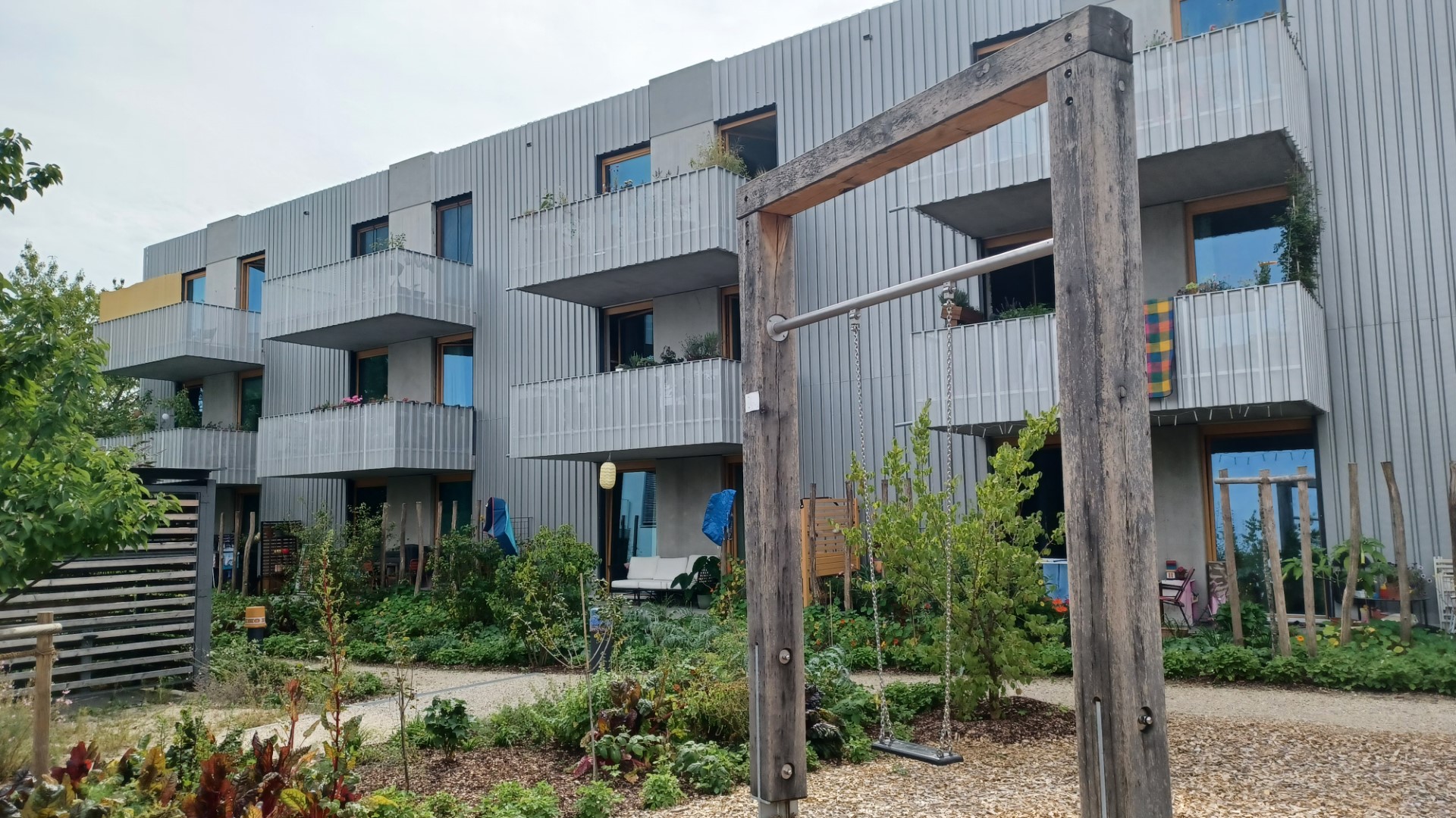 Ein weiteres Highlight der Den-Haag-Straße ist der einladend gestaltete Garten im Innenhof. Dieser besticht mit großzügigen Spielflächen für Kinder und mit einer Bepflanzung, die nicht nur schön anzuschauen ist, sondern zudem zum Kochen einlädt: Alle Pflanzen sind essbar - und die ausführenden Landschaftsarchitekten haben sogar ein eigenes kleines Kochbüchlein dazu verfasst!