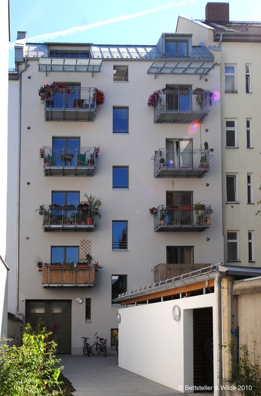 Wie in den anderen WOGENO-Häusern wohnen auch hier Mitglieder aller Altersgruppen und Haushaltsgrößen unter einem bzw. zwei Dächern. Mehr im Beitrag über die Pariser Straße 11 in der Zeitschrift Mikado vom September 2010.