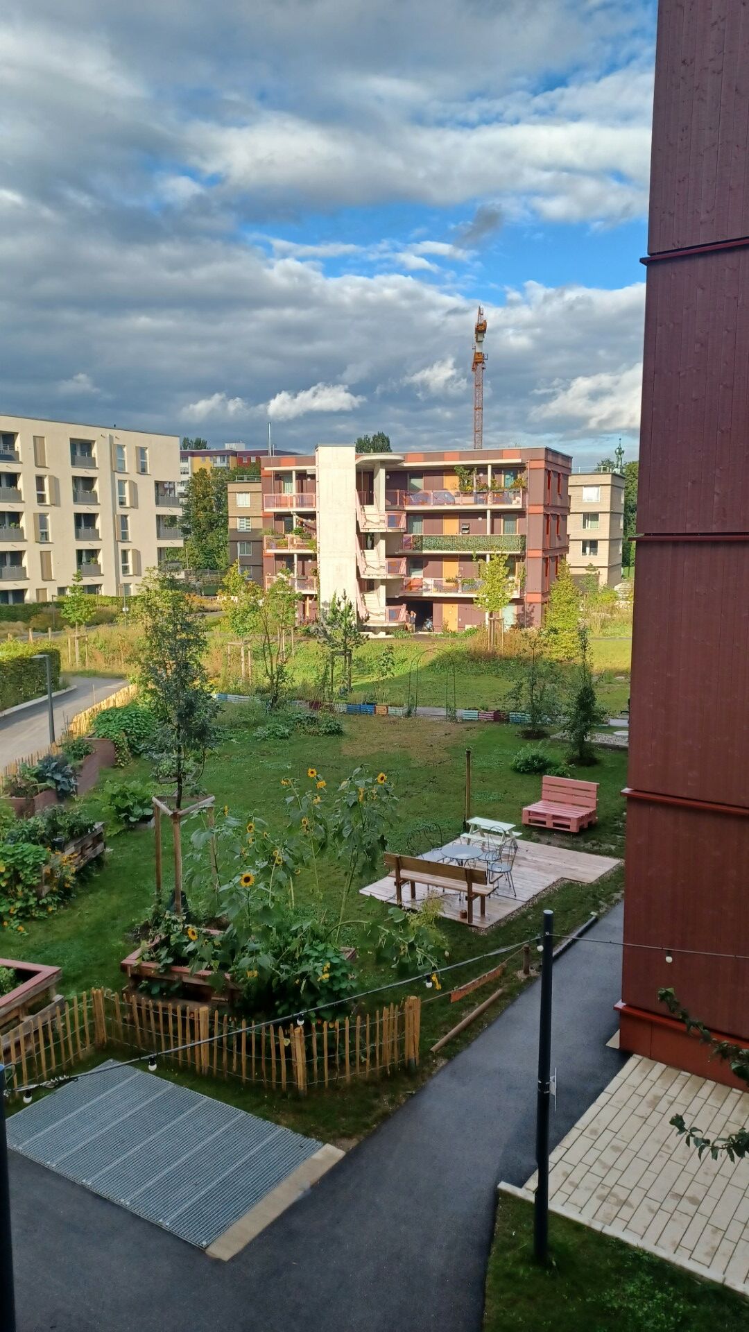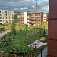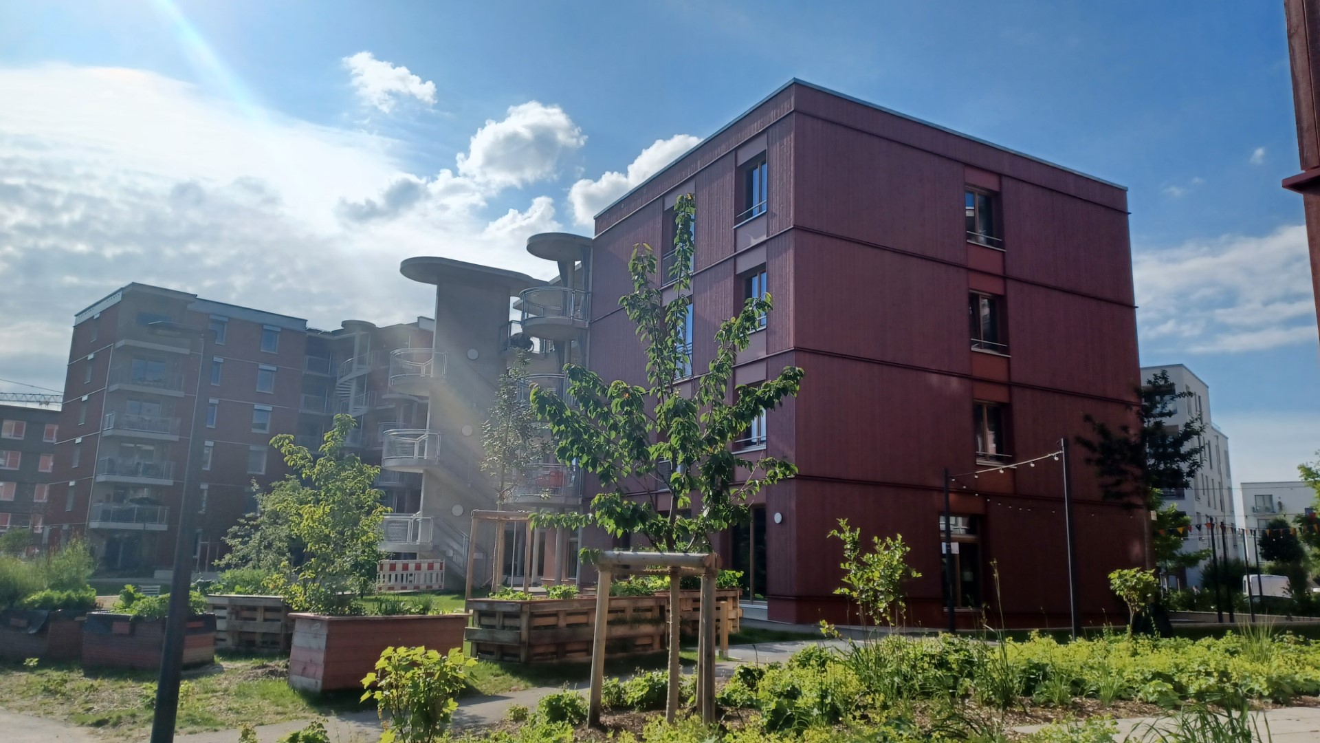 Den Häusern angegliedert ist ein kleiner, einladender Quartiersplatz zur Nutzung durch die Bewohnerschaft. Die Häuser verfügen zudem über große Gemeinschaftsflächen, die allen Bewohnern für unterschiedlichste Aktivitäten zur Verfügung stehen. Eine besondere Attraktion ist die privat betriebene Eisdiele, die sich im Erdgeschoss eines der Häuser befindet und nicht nur bei Kindern regen Zuspruch findet.
