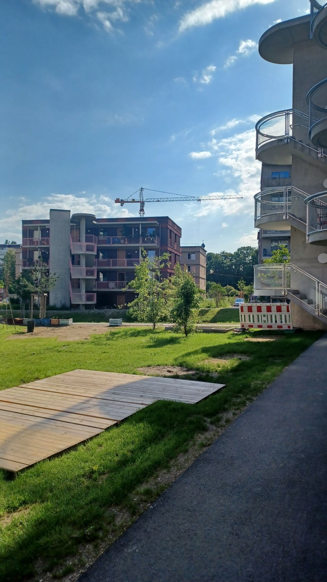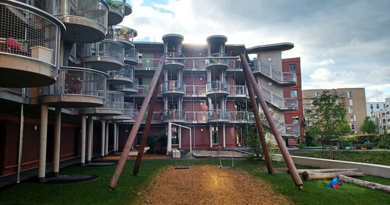 Kinder freuen sich auch über großzügig bemessene Spielflächen mit einem „Matschloch“ und einer ziemlich einmaligen Himmelsschaukel. Überhaupt ist Freiham ein Paradies für junge Familien. Diese finden hier unter anderem familienfreundlich geschnittene Wohnungen und ein vielseitiges Mobilitätsangebot mit E-Bikes und Lastenrädern für die tägliche, freie Benutzung.